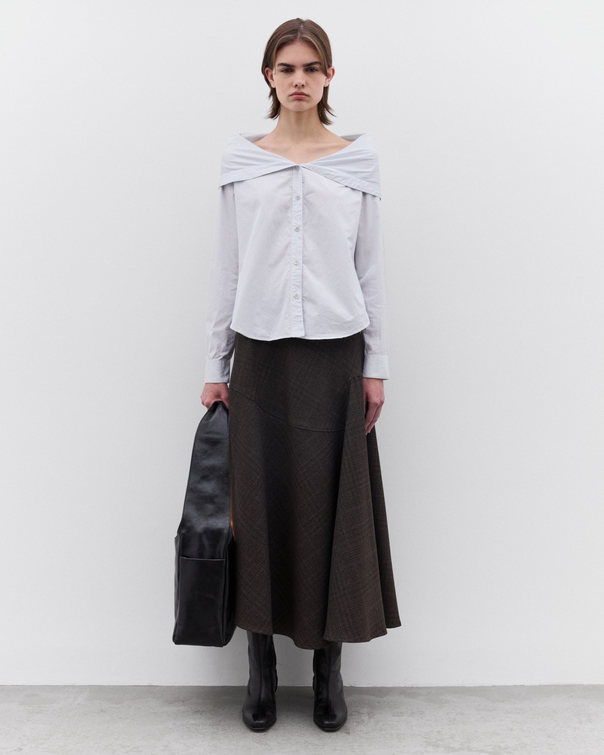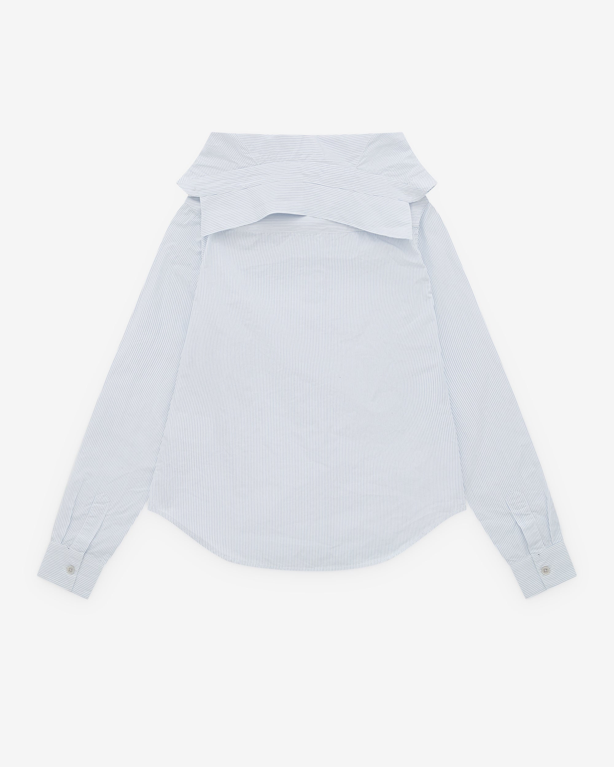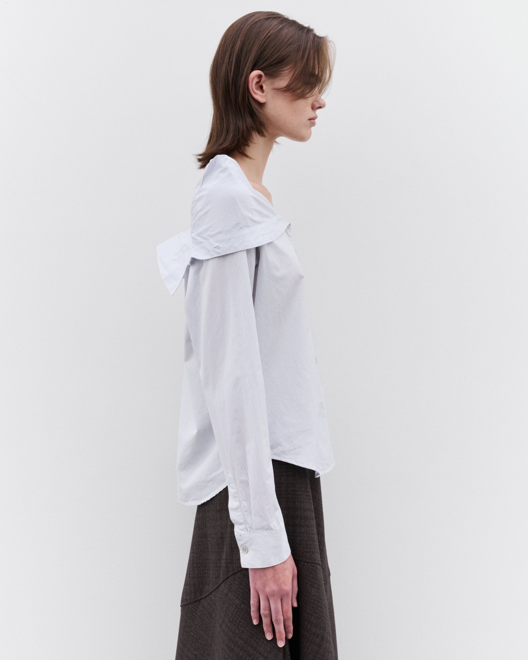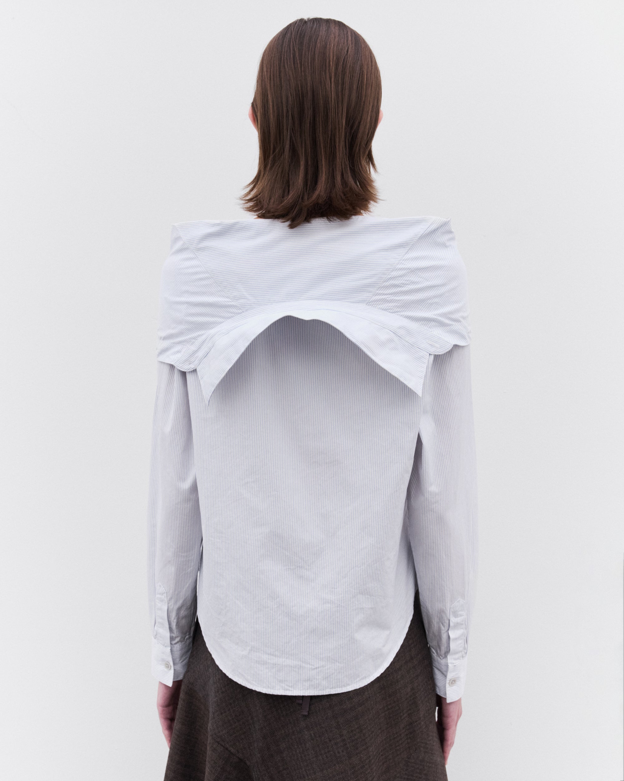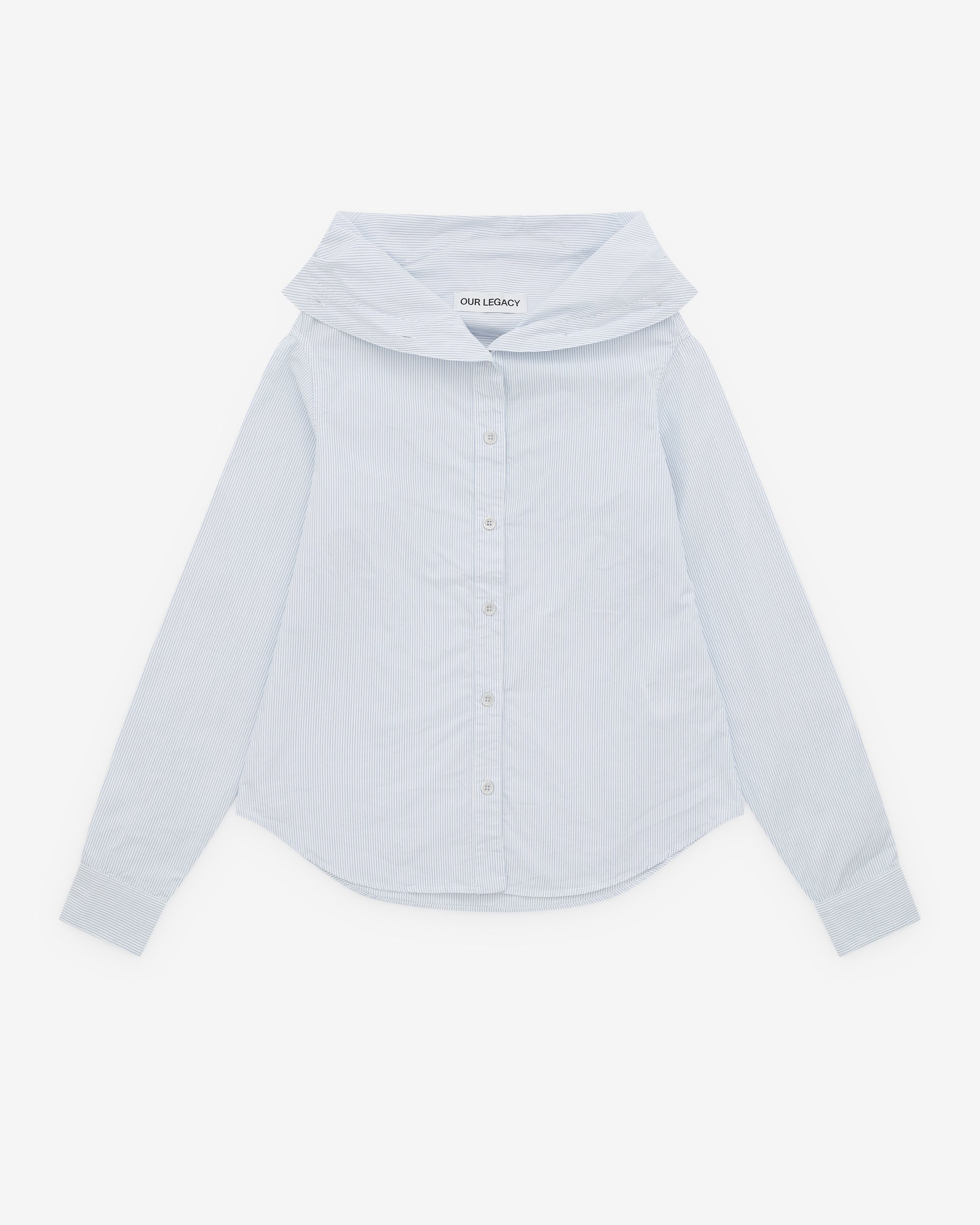 Pinstripe poplinCollapsed collarMother of pearl buttonsCurved hemRegular fit