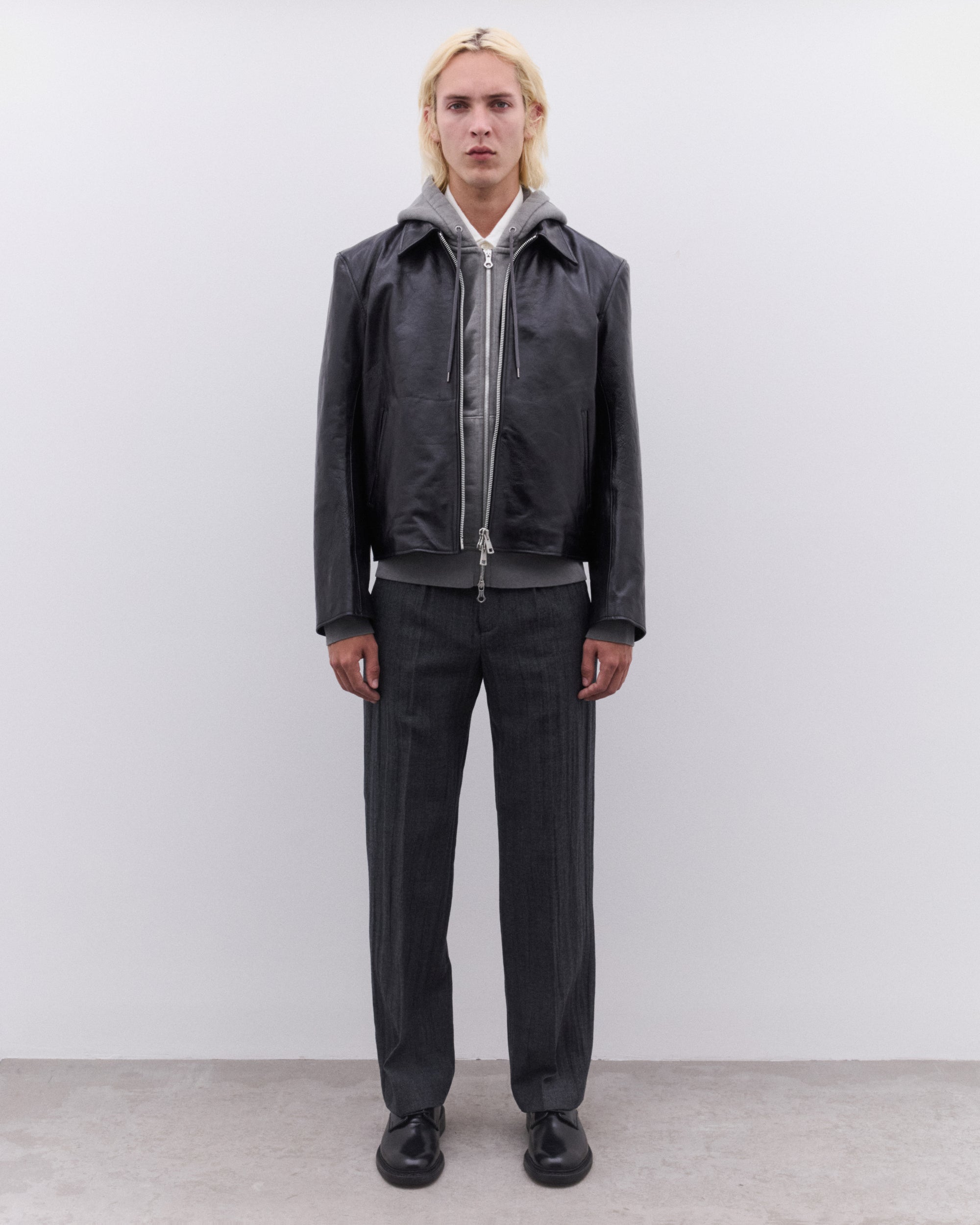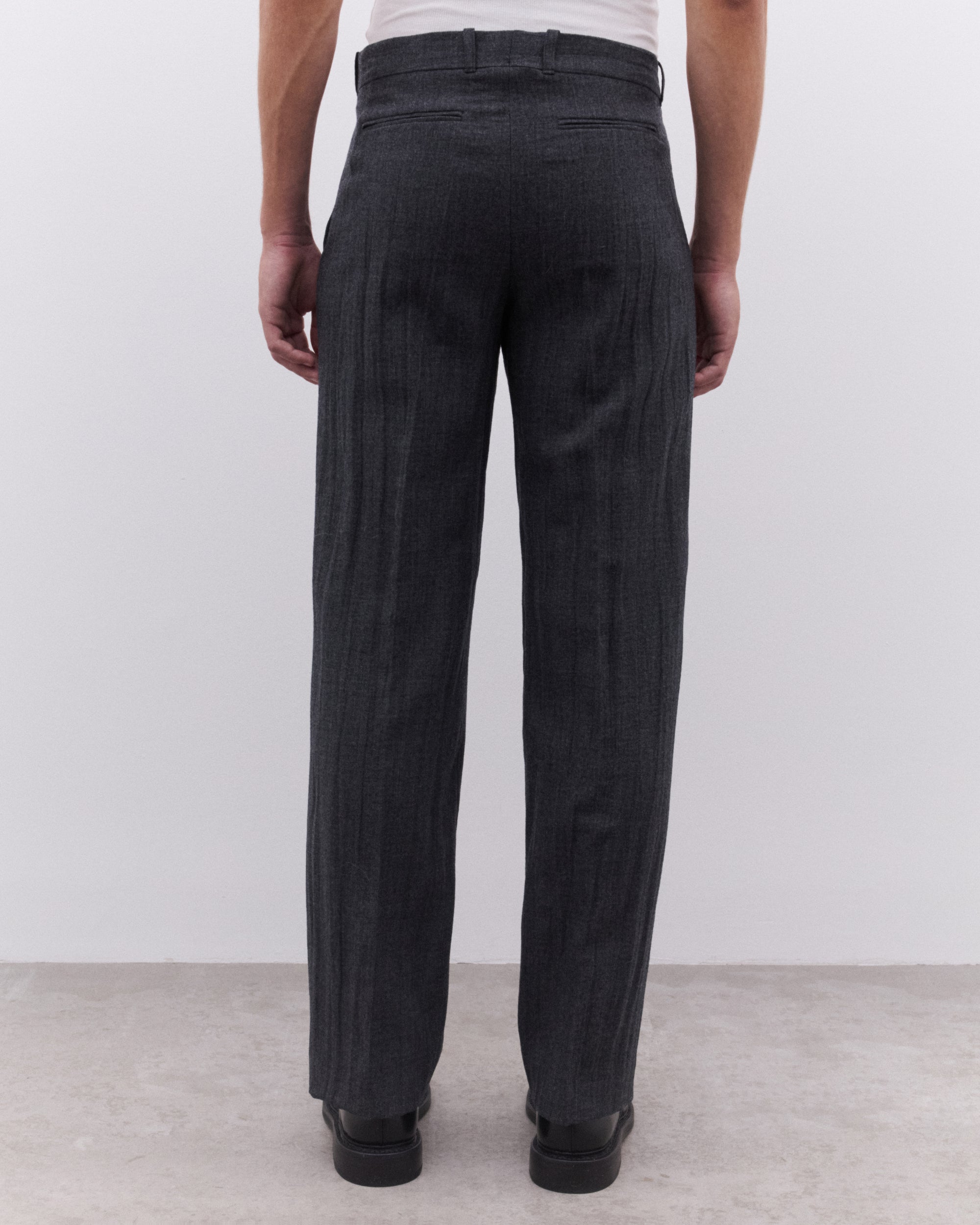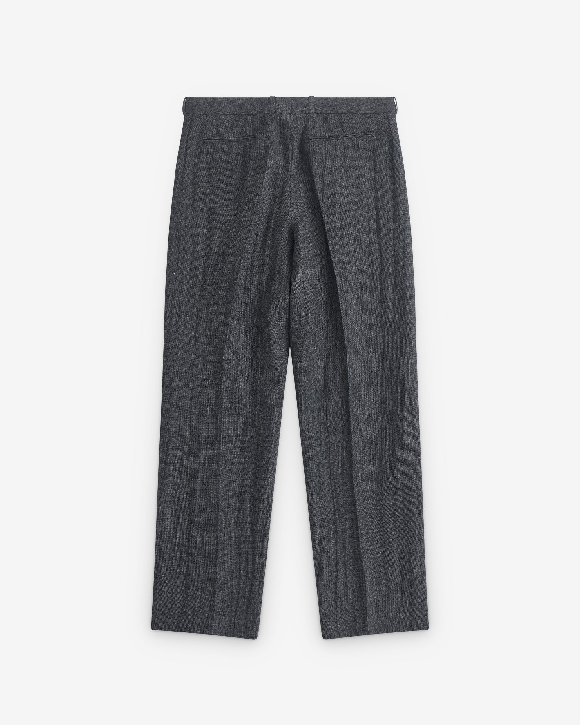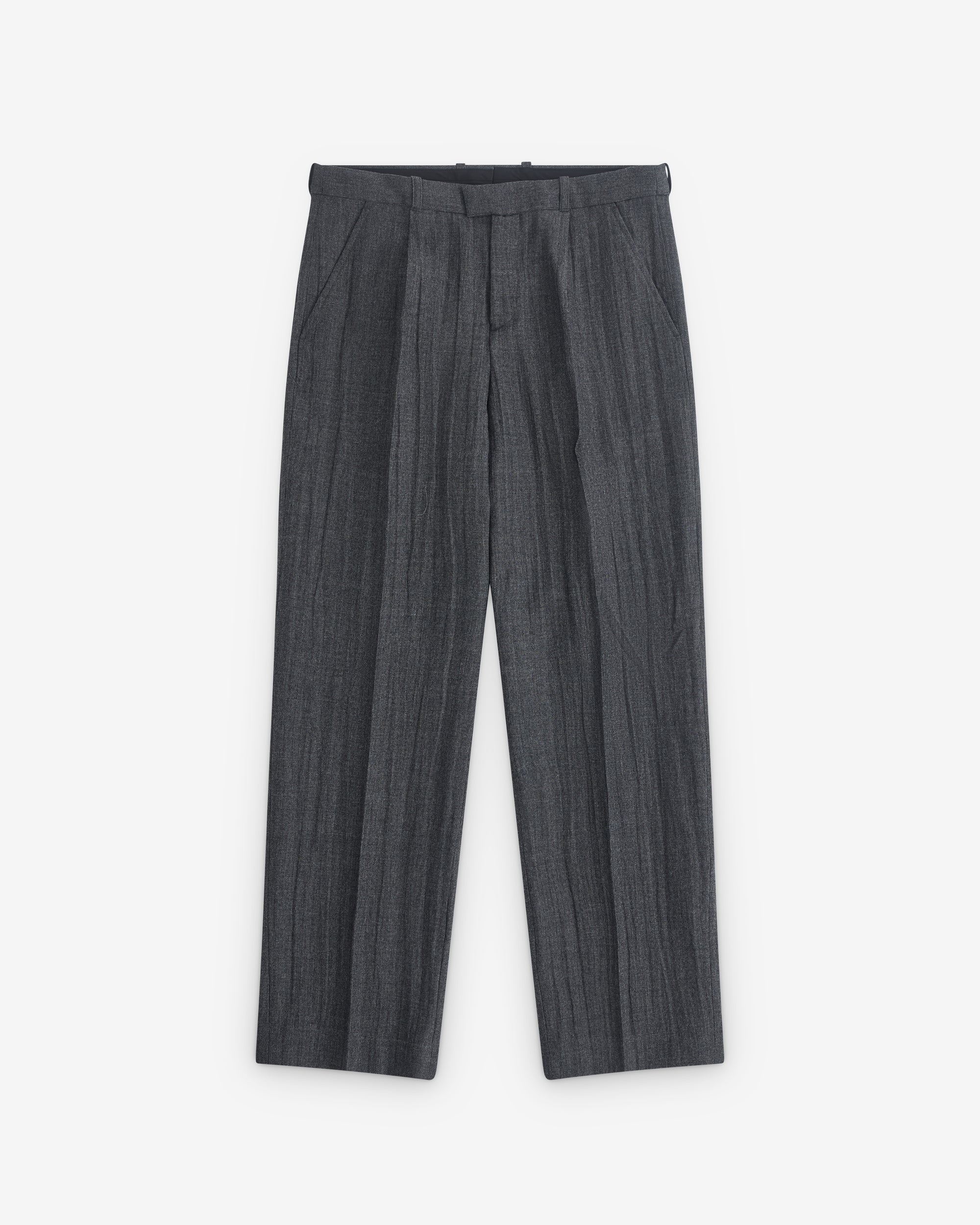 Hook and eye waist closureZip flyFront full length pleats Front pocketsBelt loopsTwo rear pocketsPre creased fabricStraight leg