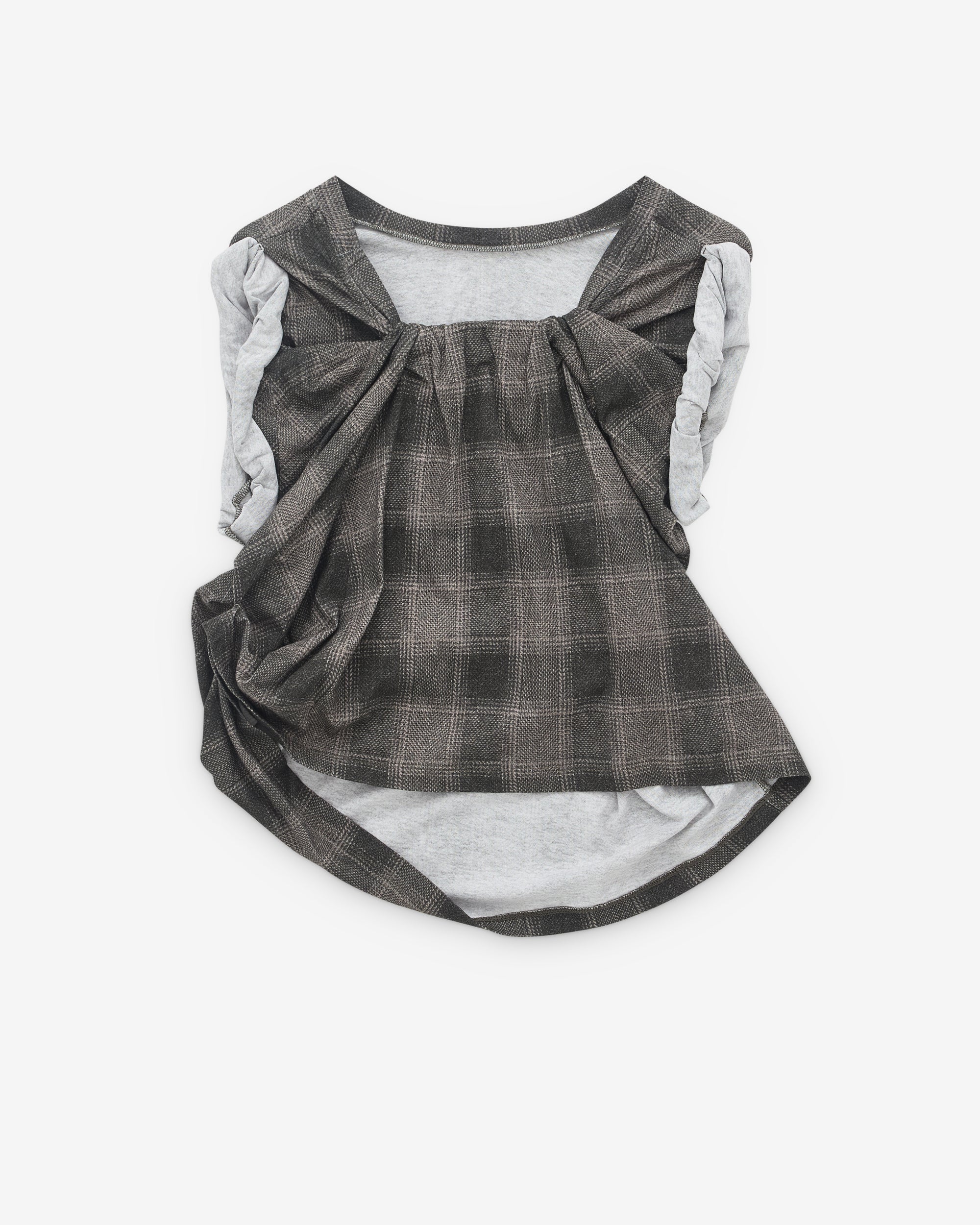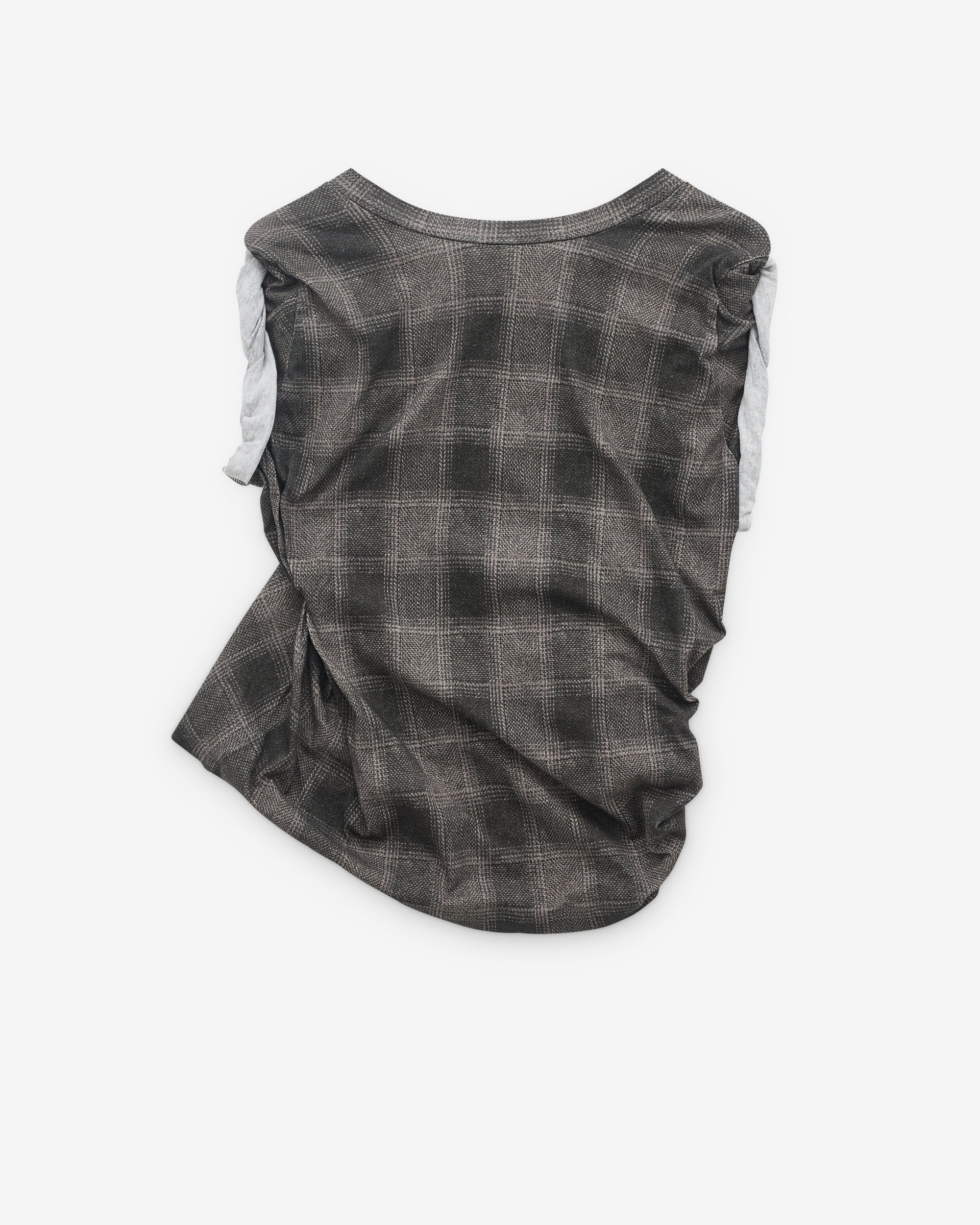 Printed check patternUnconventional twisted constructionGathered detail at back necklineCan be worn alone or as layering pieceRelaxed fit