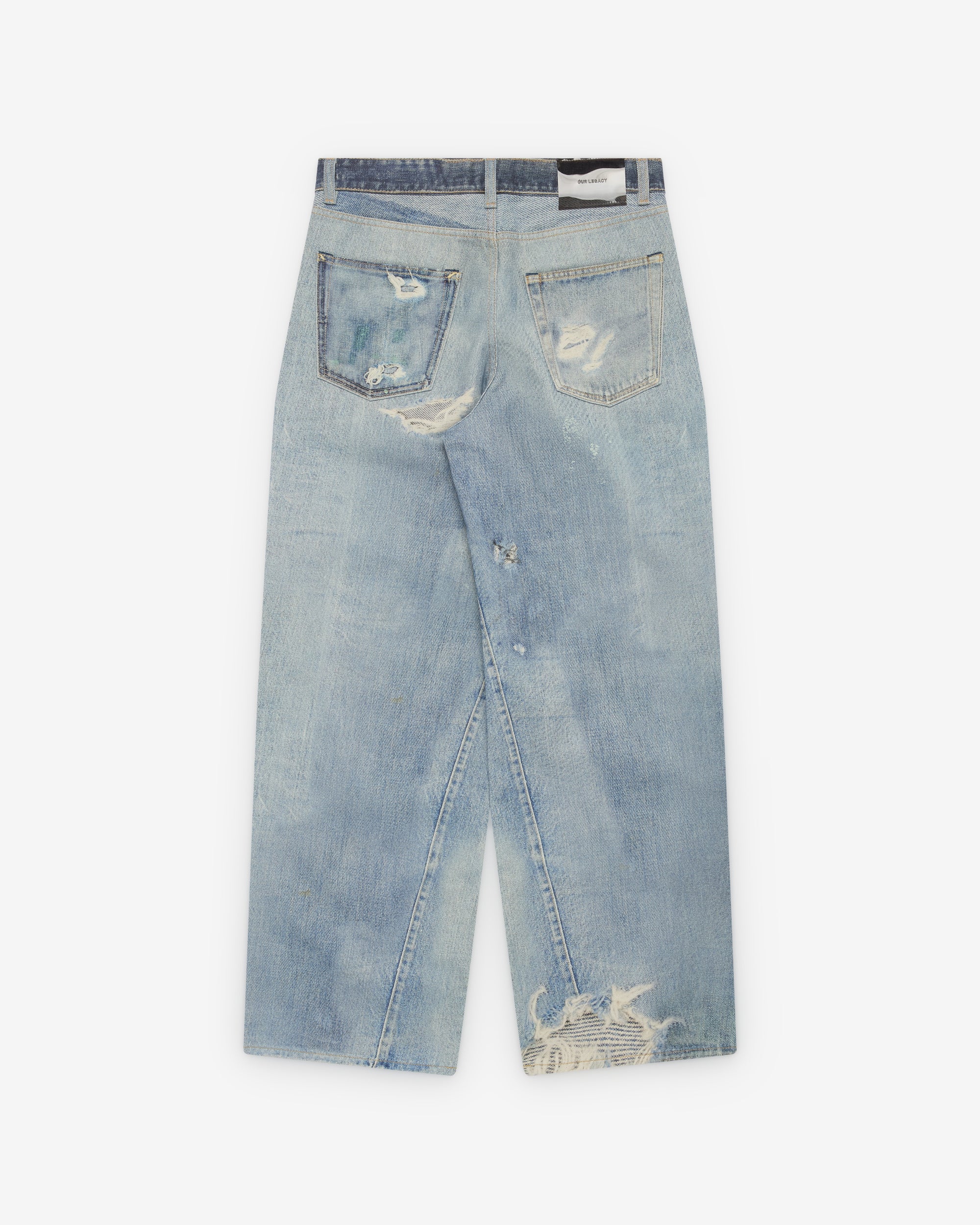 Trompe l'oeil vintage denim printHigh waistFive pocketsYKK zip flyOUR LEGACY embossed patchStraight, relaxed fit