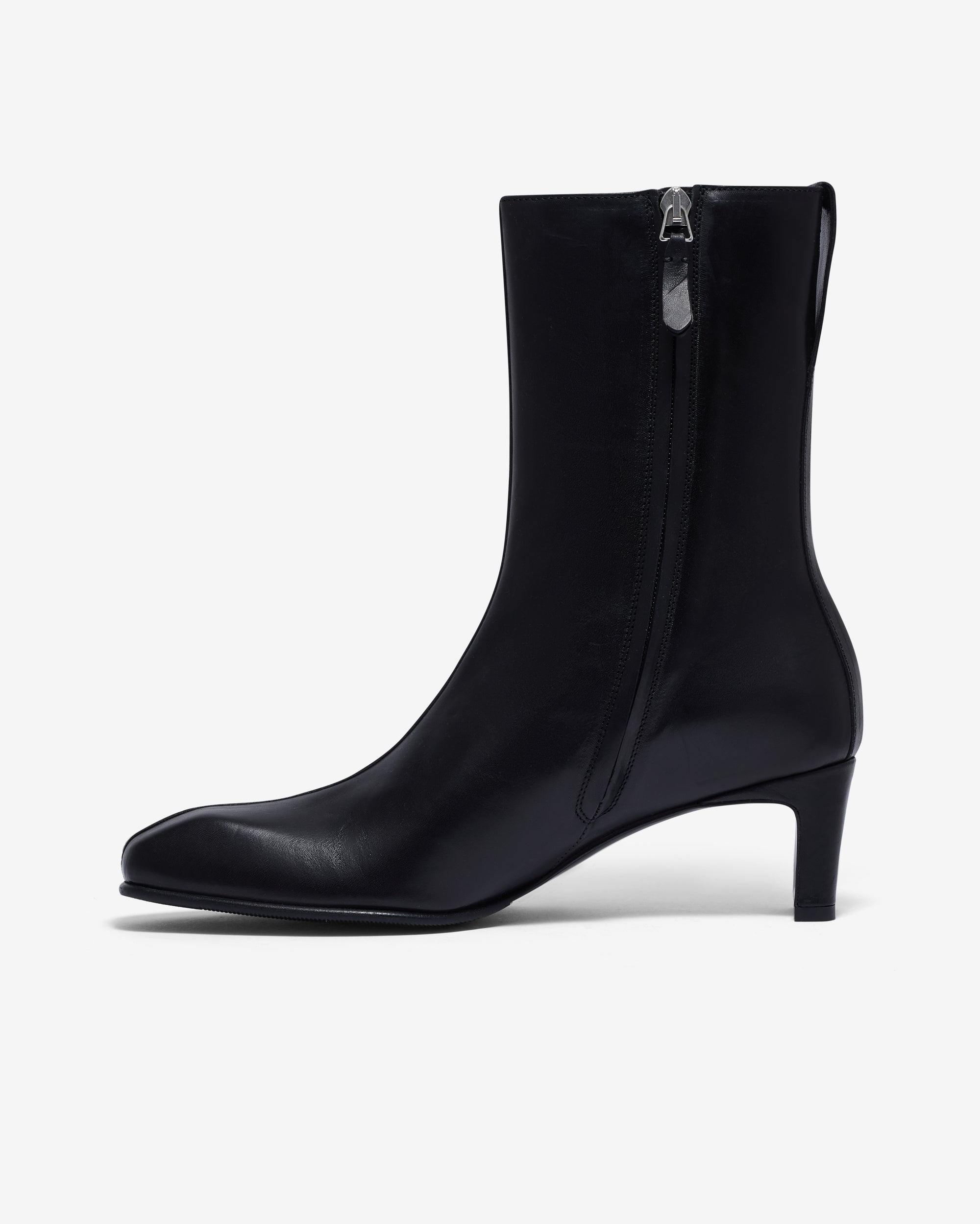 Italian leatherVegetable tannedSide zip closure5cm block heelOur Legacy metal rivetLeather heel tabLeather soleFitted last with pointed toeSemi-high shaft