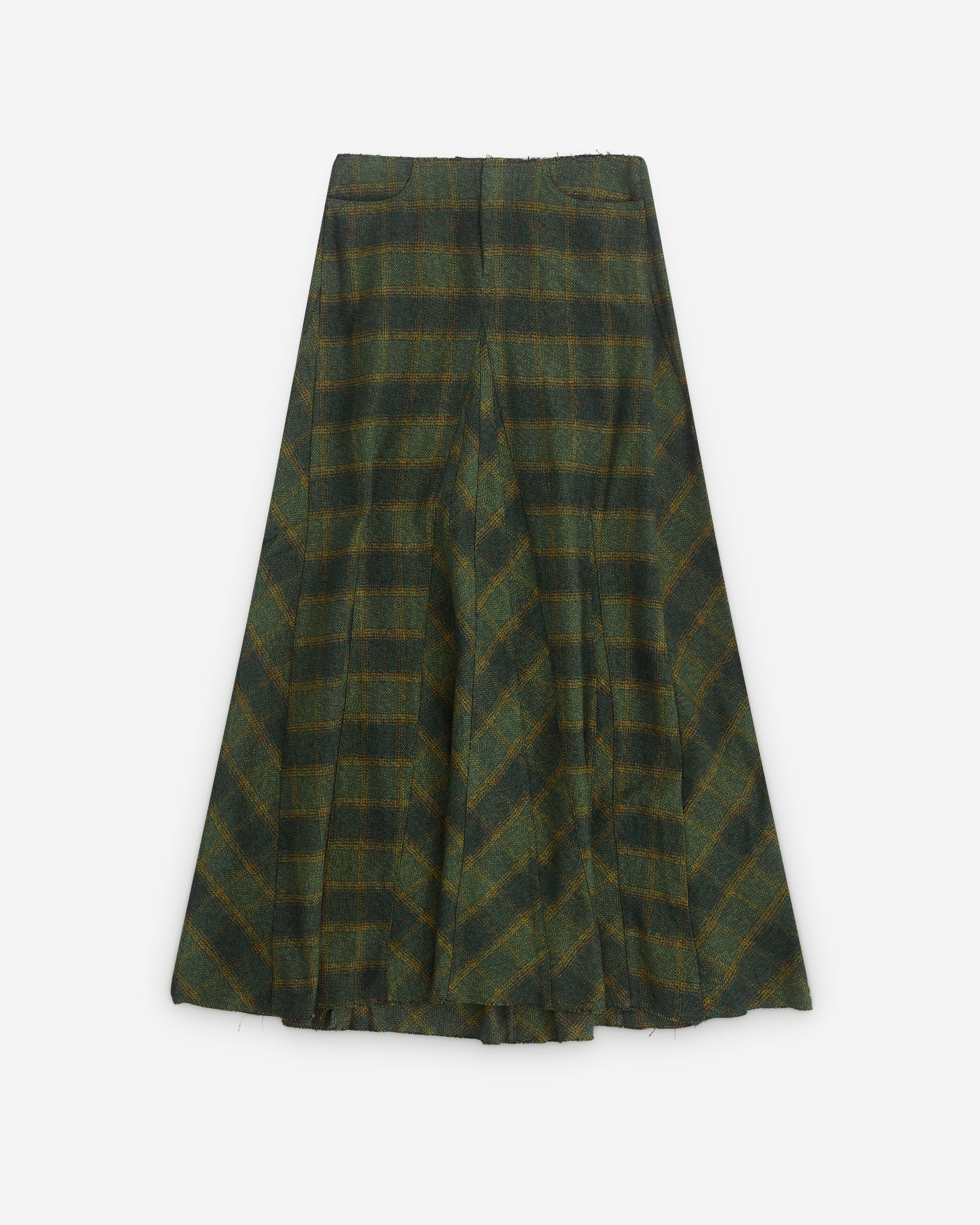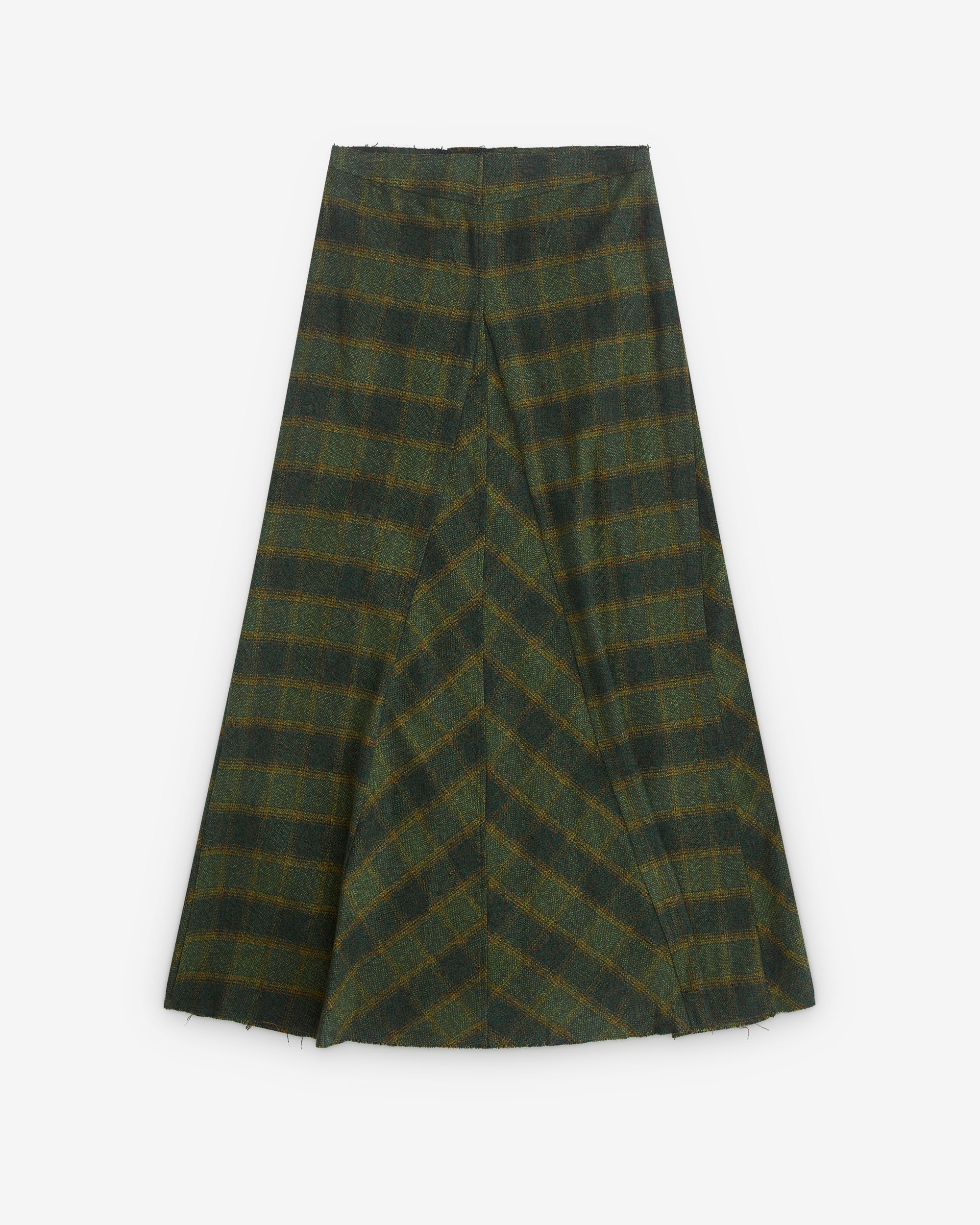 Checked patternPanelled constructionTwo front pocketsRaw edged waistbandHook and eye closureZip flyRaw edged hemRelaxed a-line silhouette