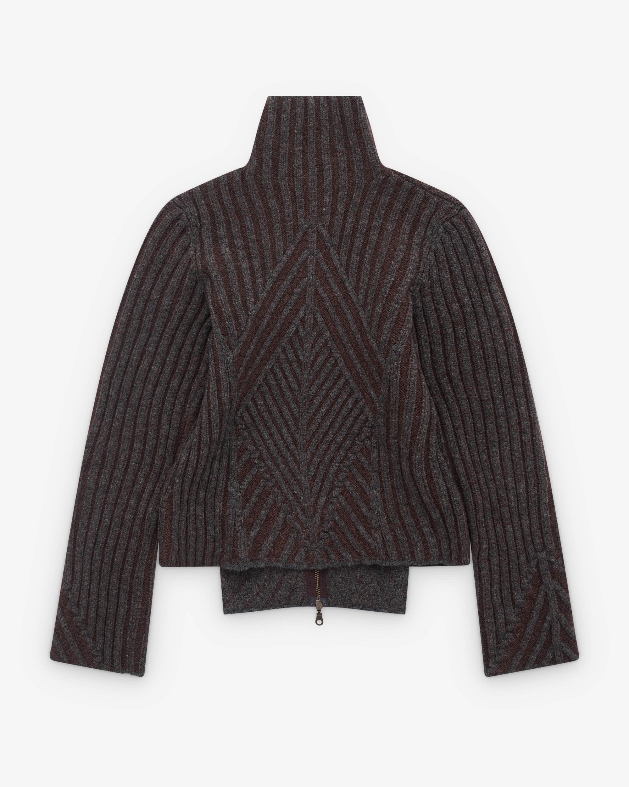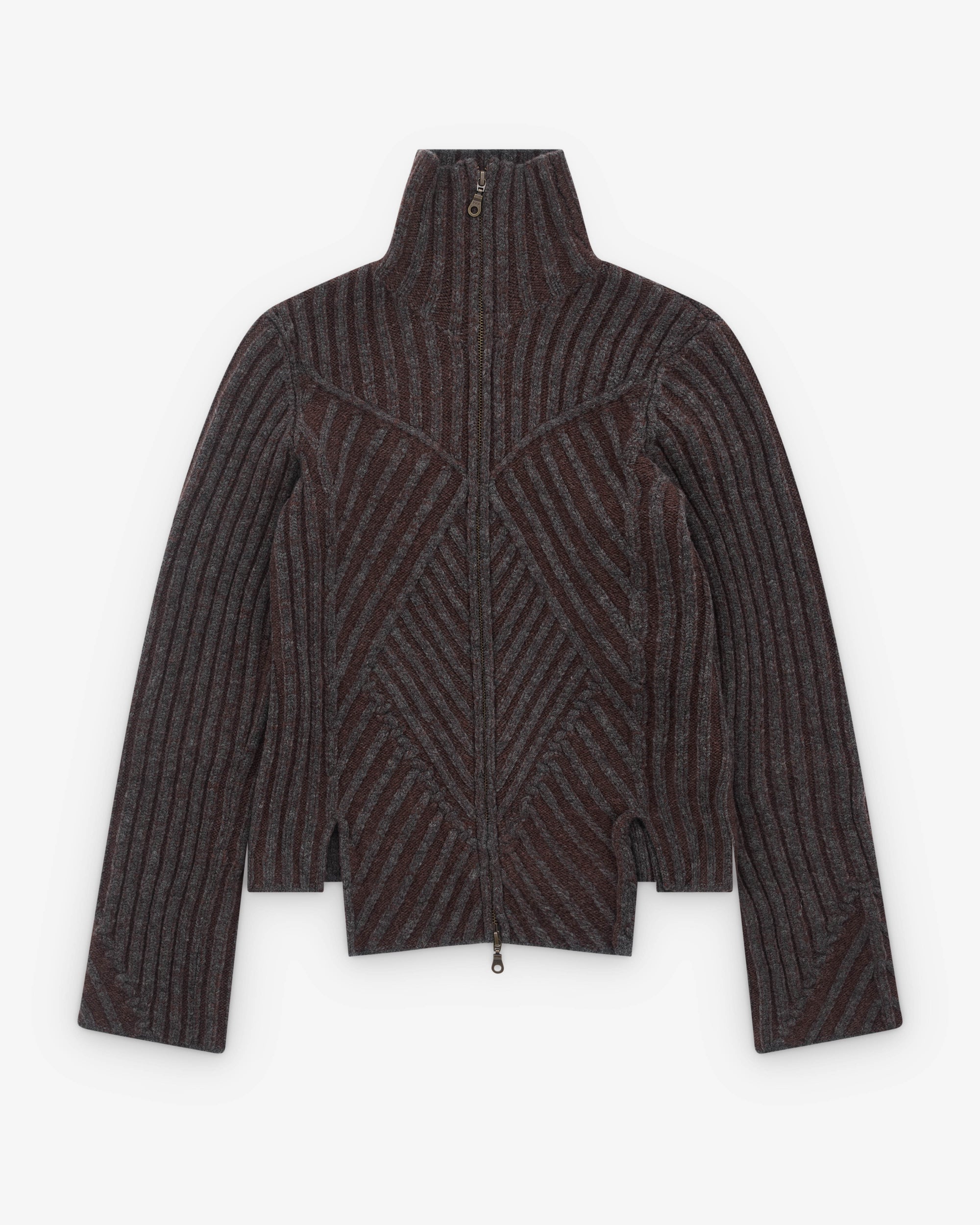 High neckTwo-way zip fasteningHeavy rib knitPanelled constructionSlim fit