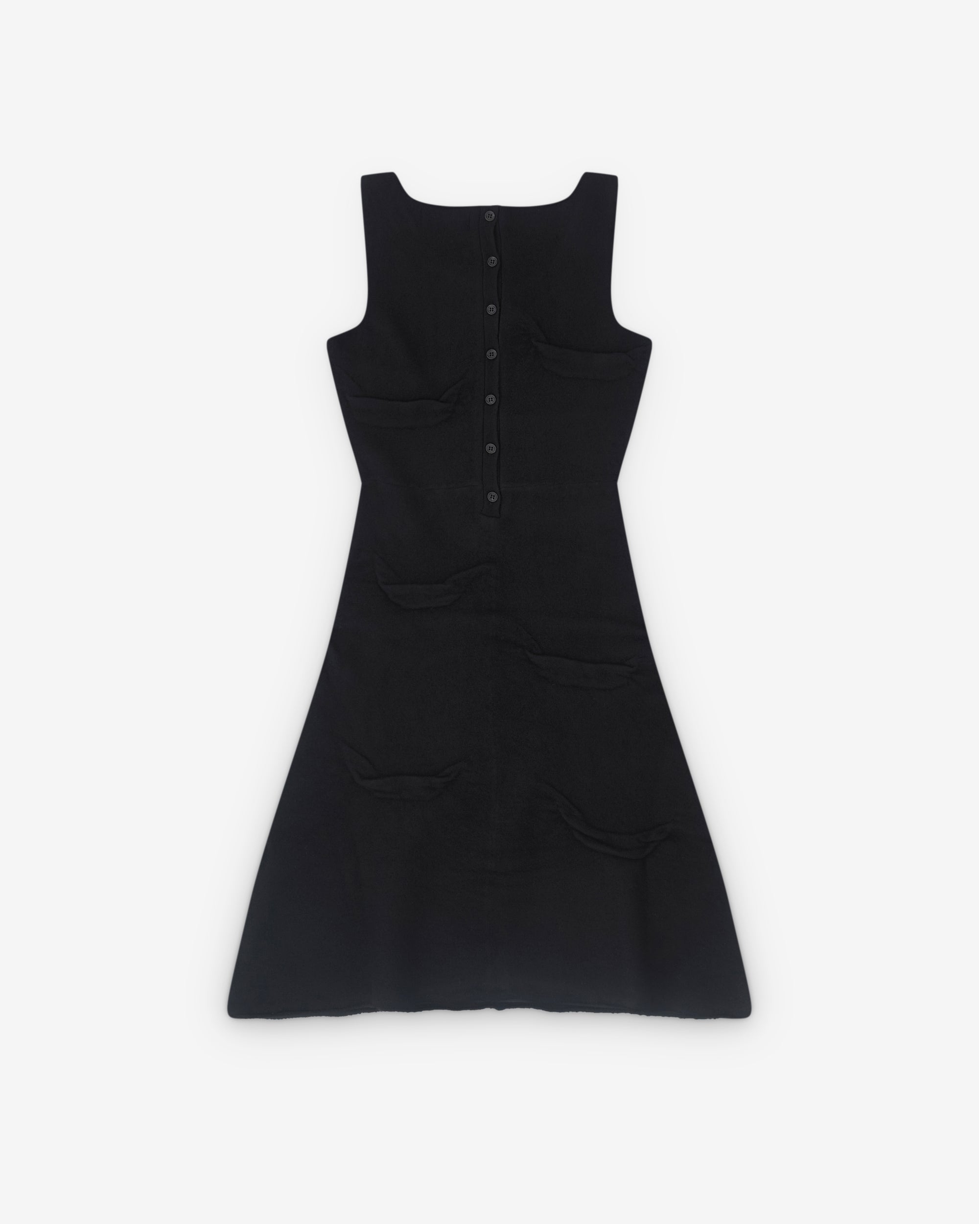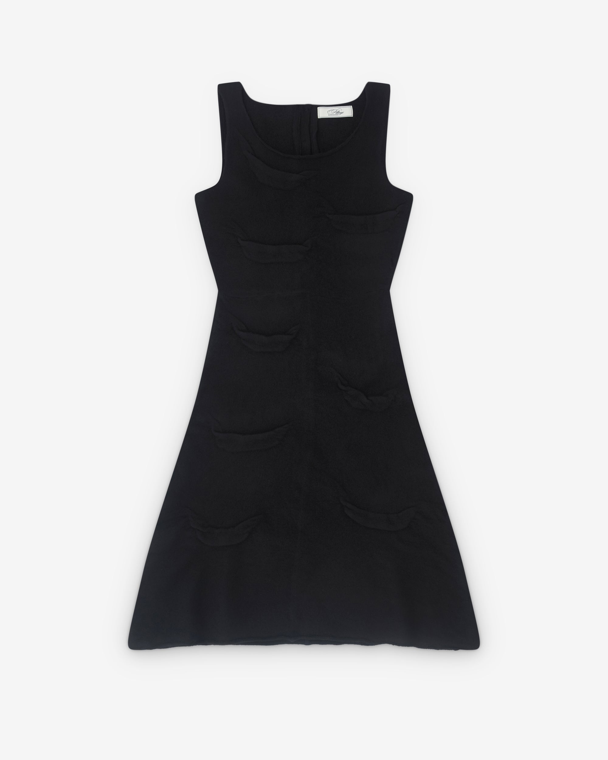 Round neckSleevelessGathered waist A-line silhouetteGathered detail throughout