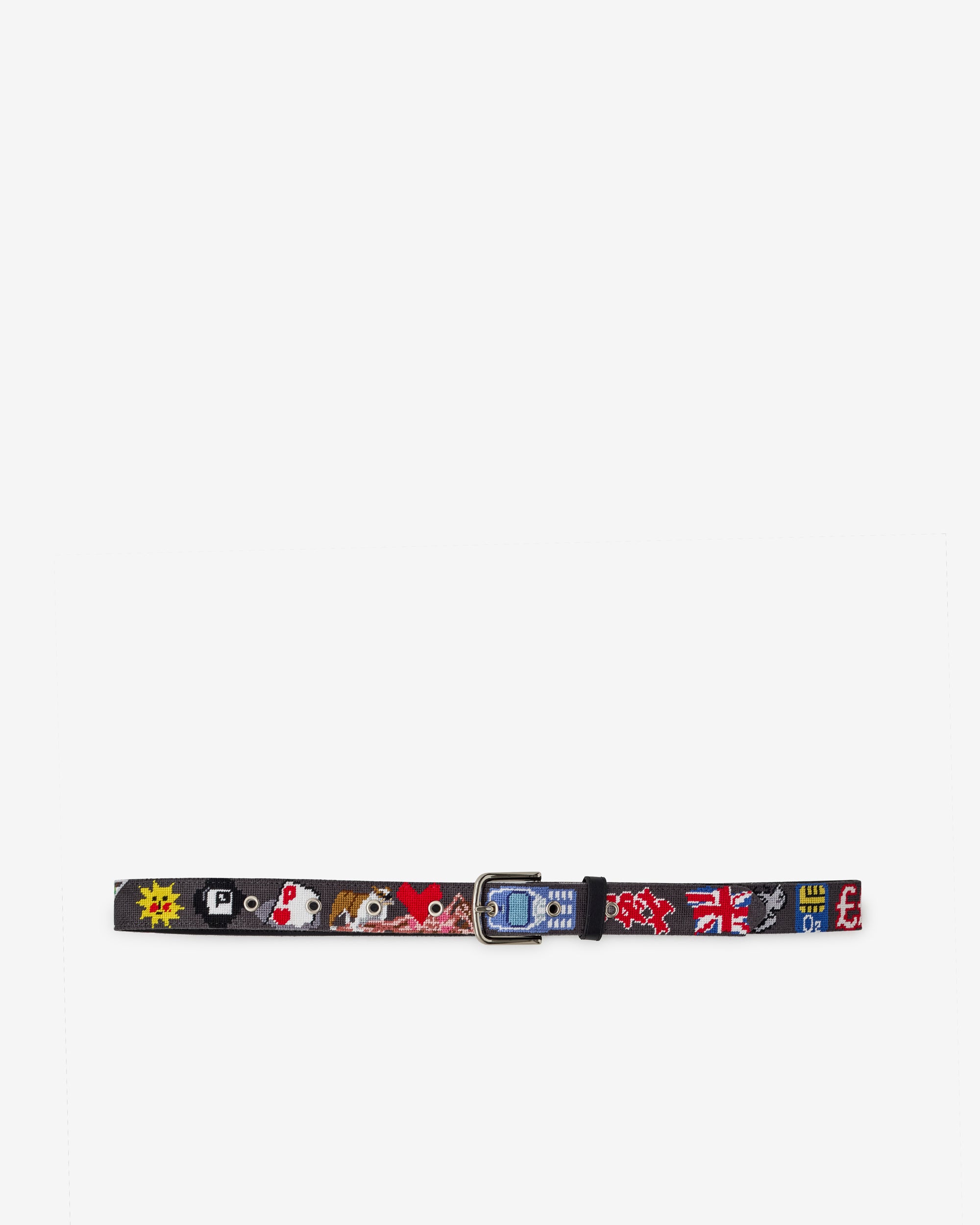 Stitched motifs throughoutSilvertone hardwarePin buckle fastening