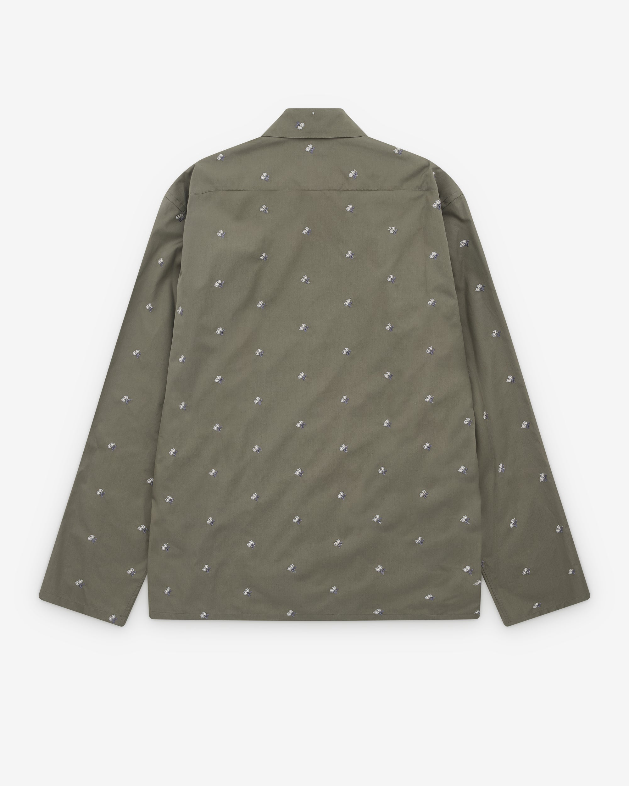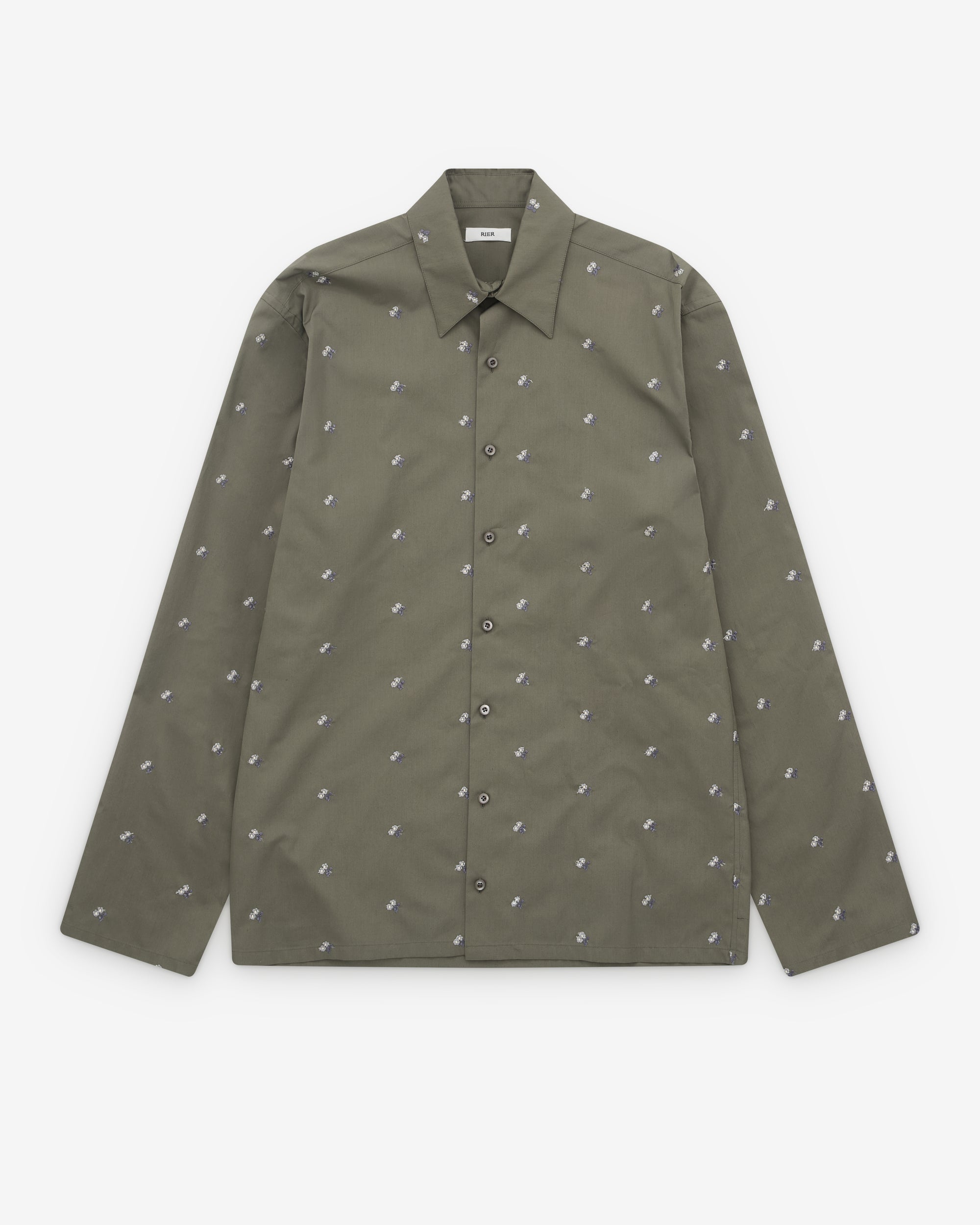 Point shirt collarFront button closureEmbroidered floral patternStraight hem