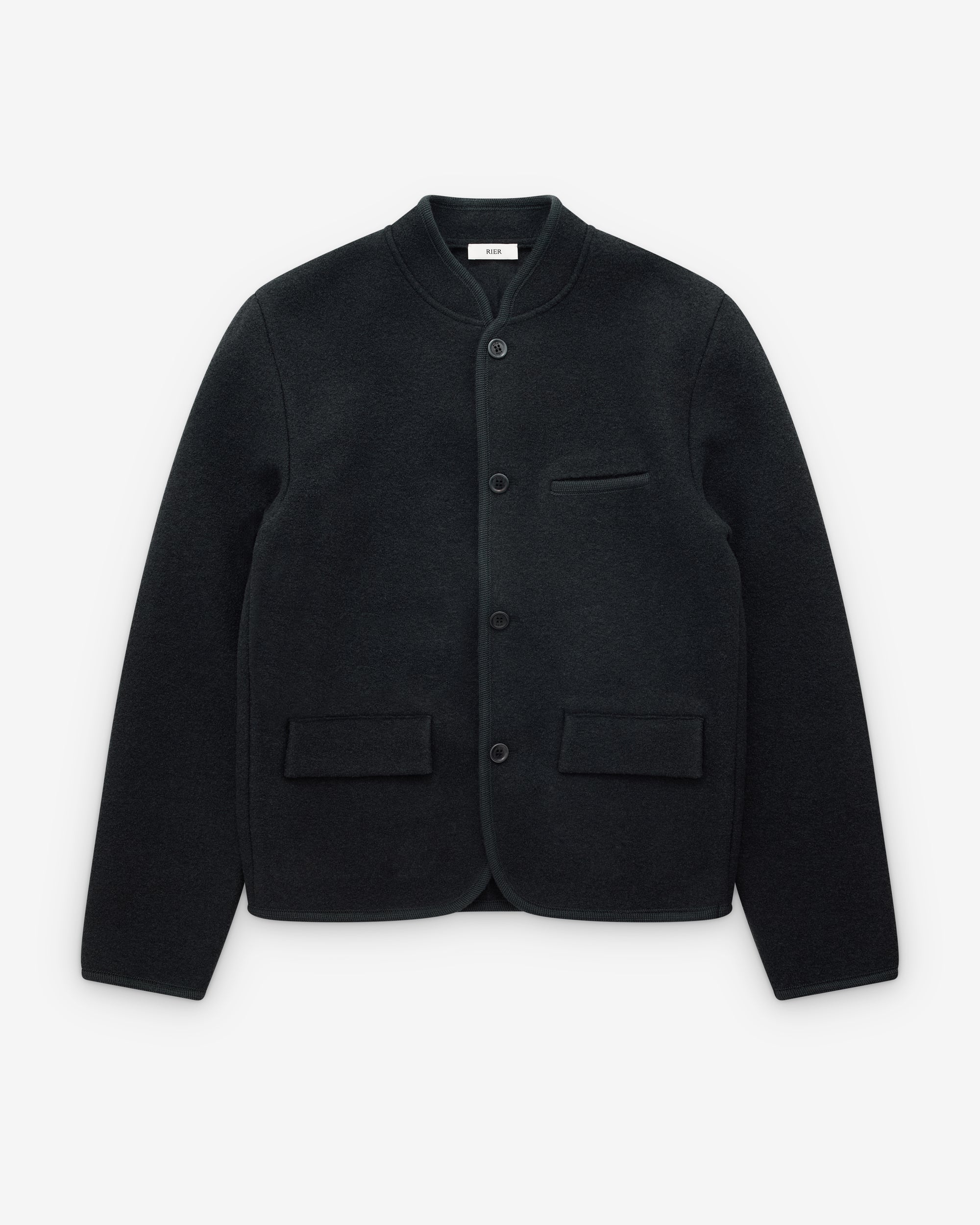 CollarlessTipped edgesPatch pockets throughoutUnlined