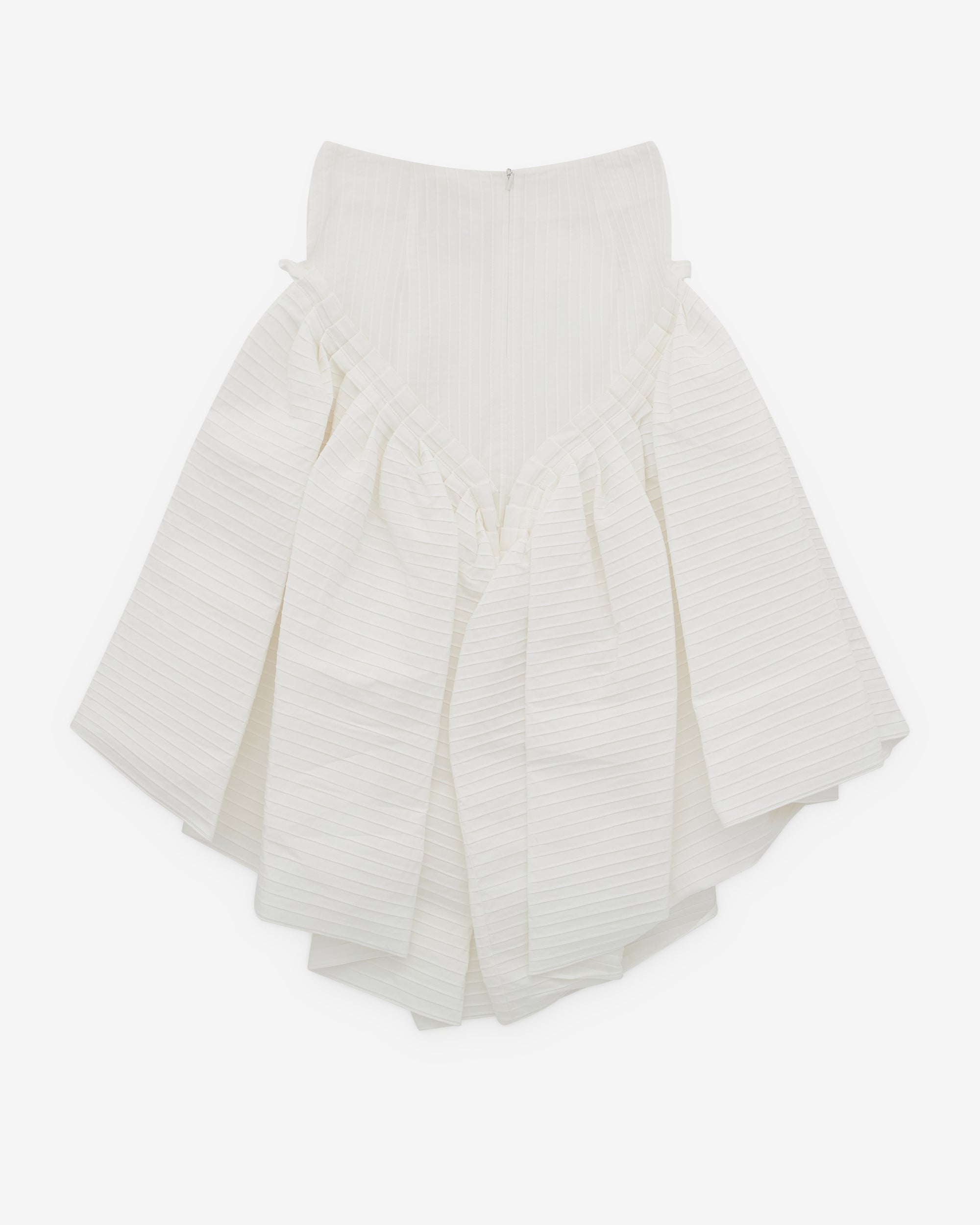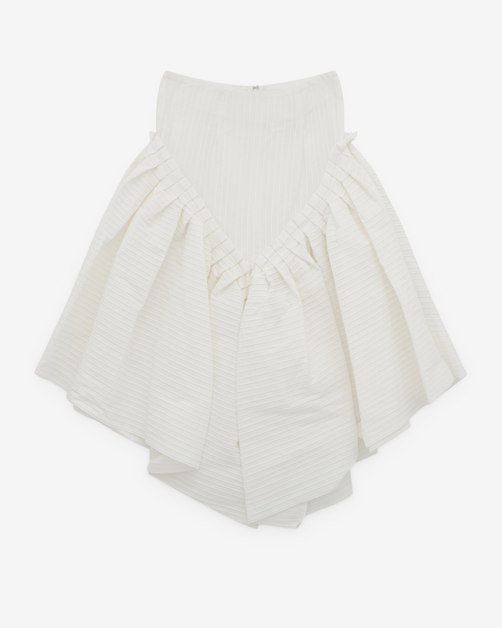 Dropped waistRuffle skirtRear zip fasteningMid-lengthPintuck finish throughout