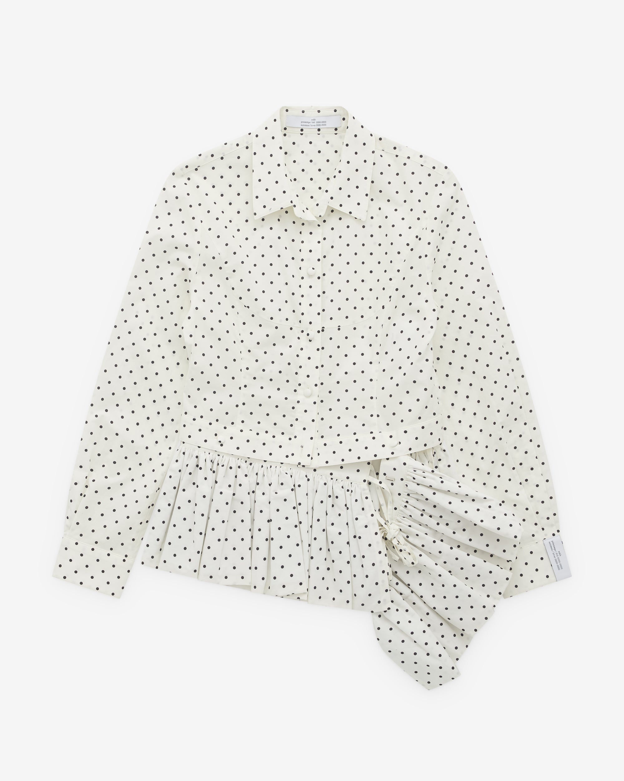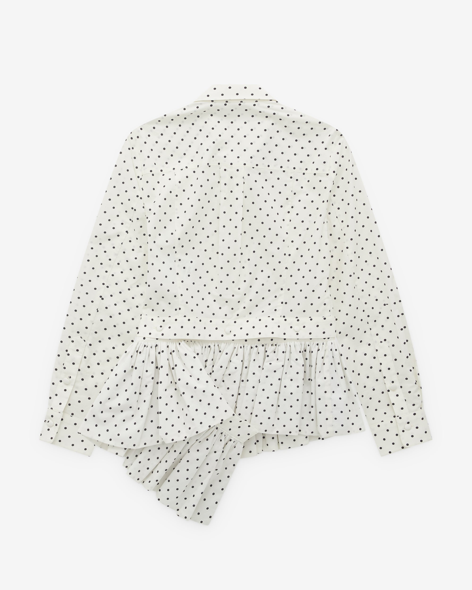 Point collarConcealed button fasteningButton off peplum detailButton cuffsRear central box pleat