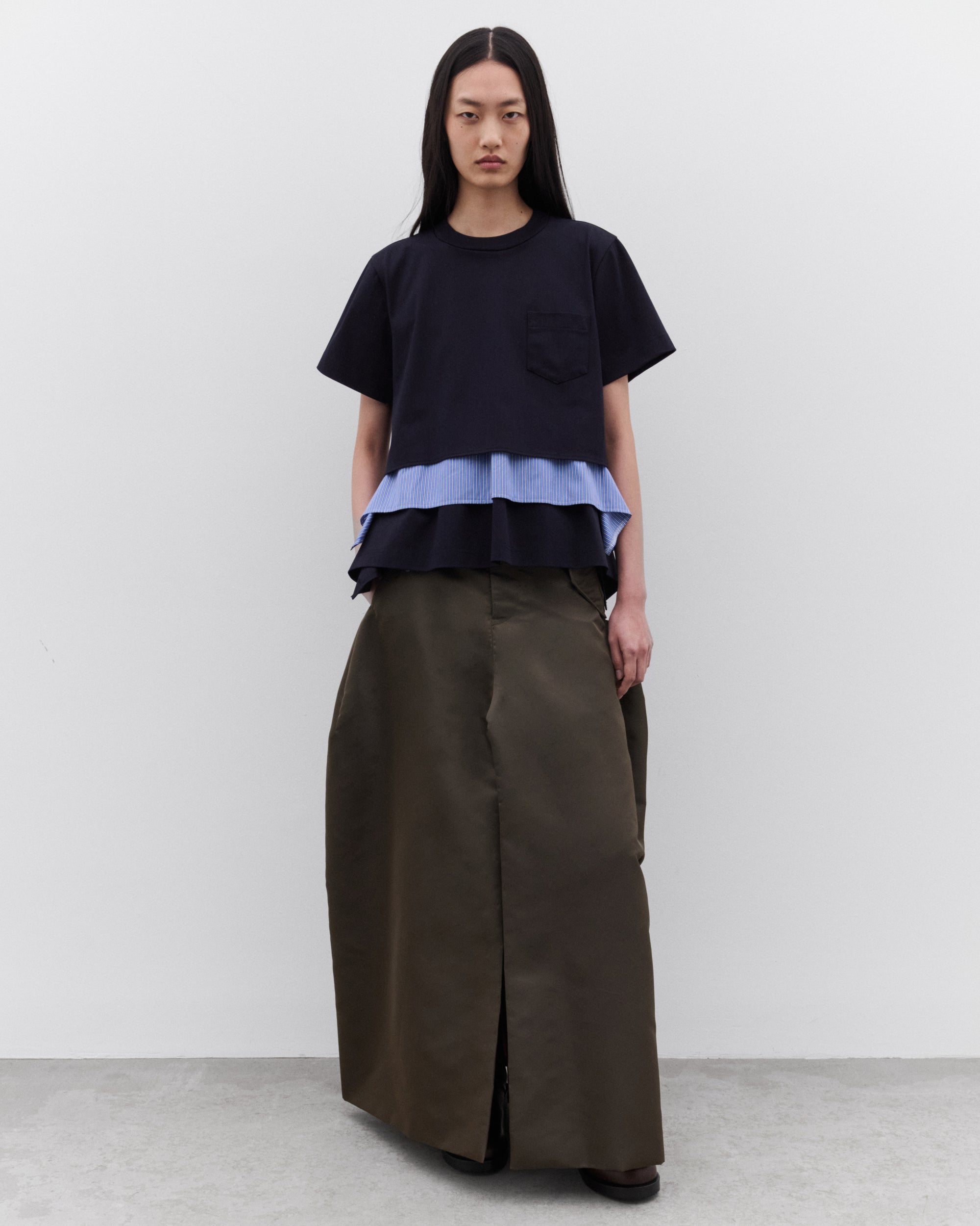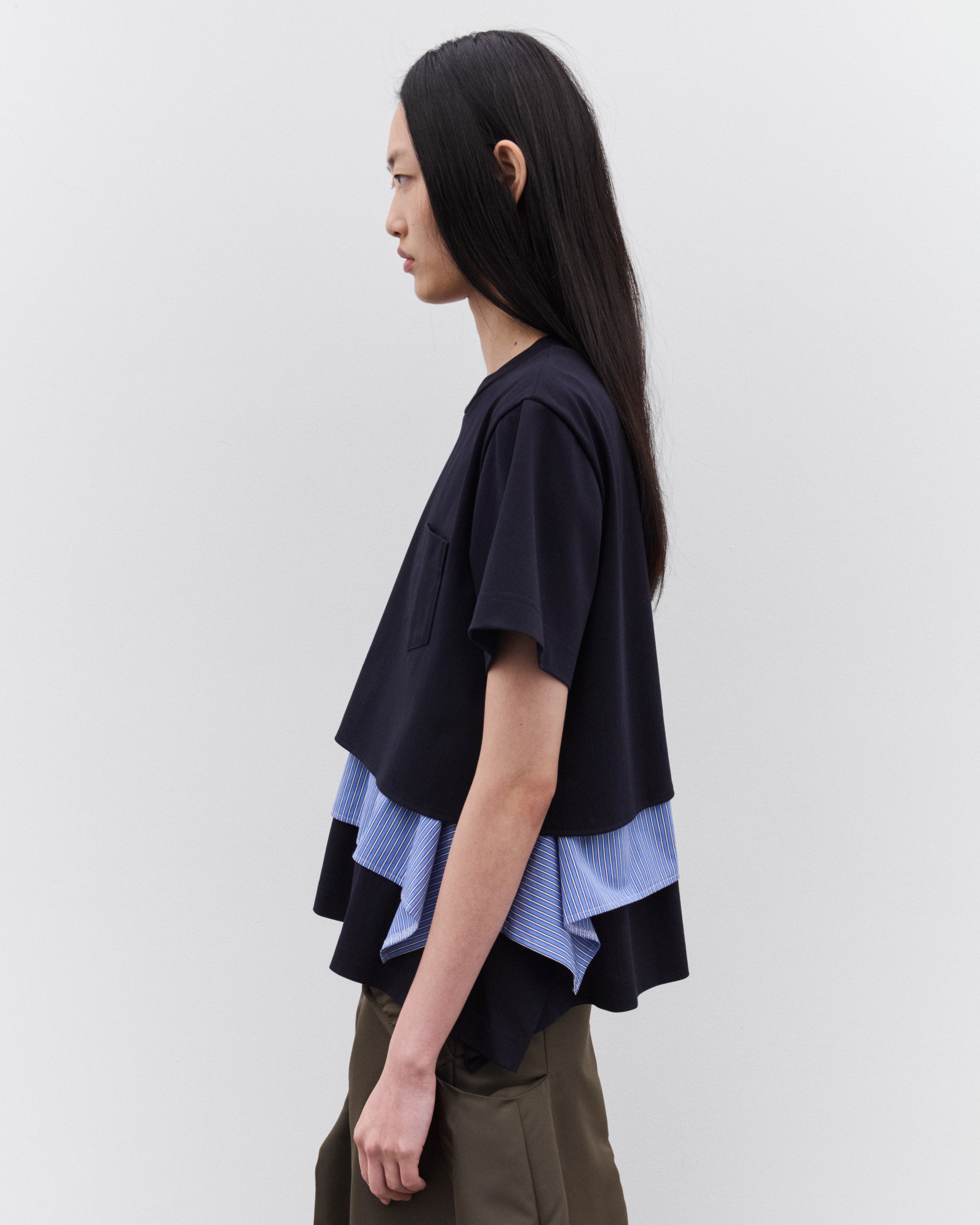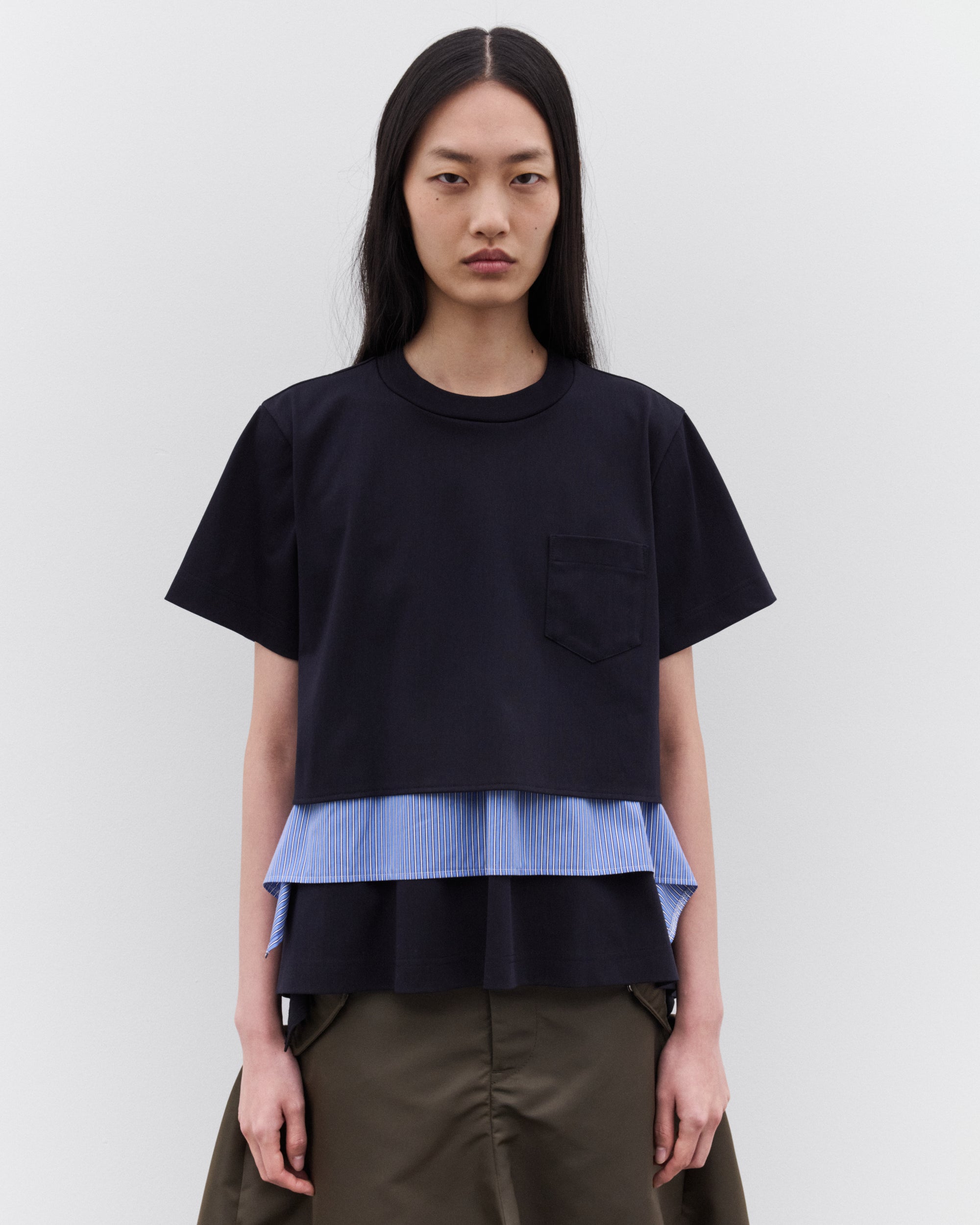Round neckShort sleevesPinstripe, poplin underlay