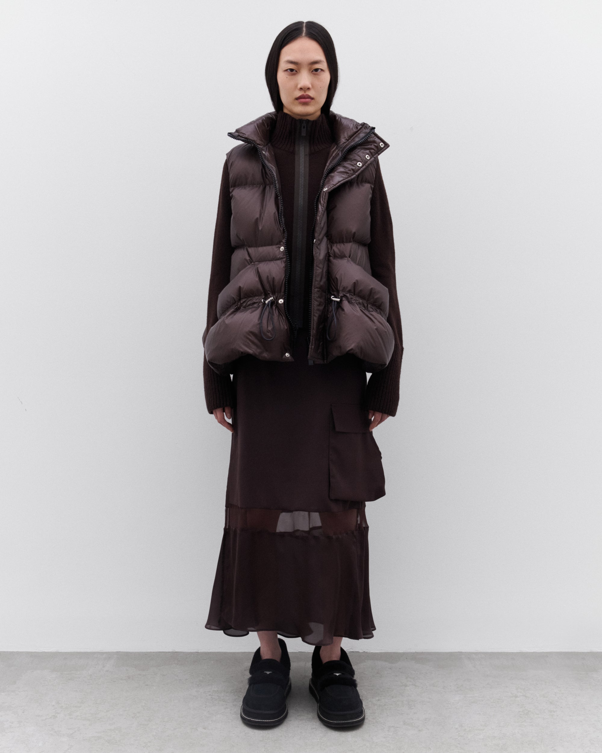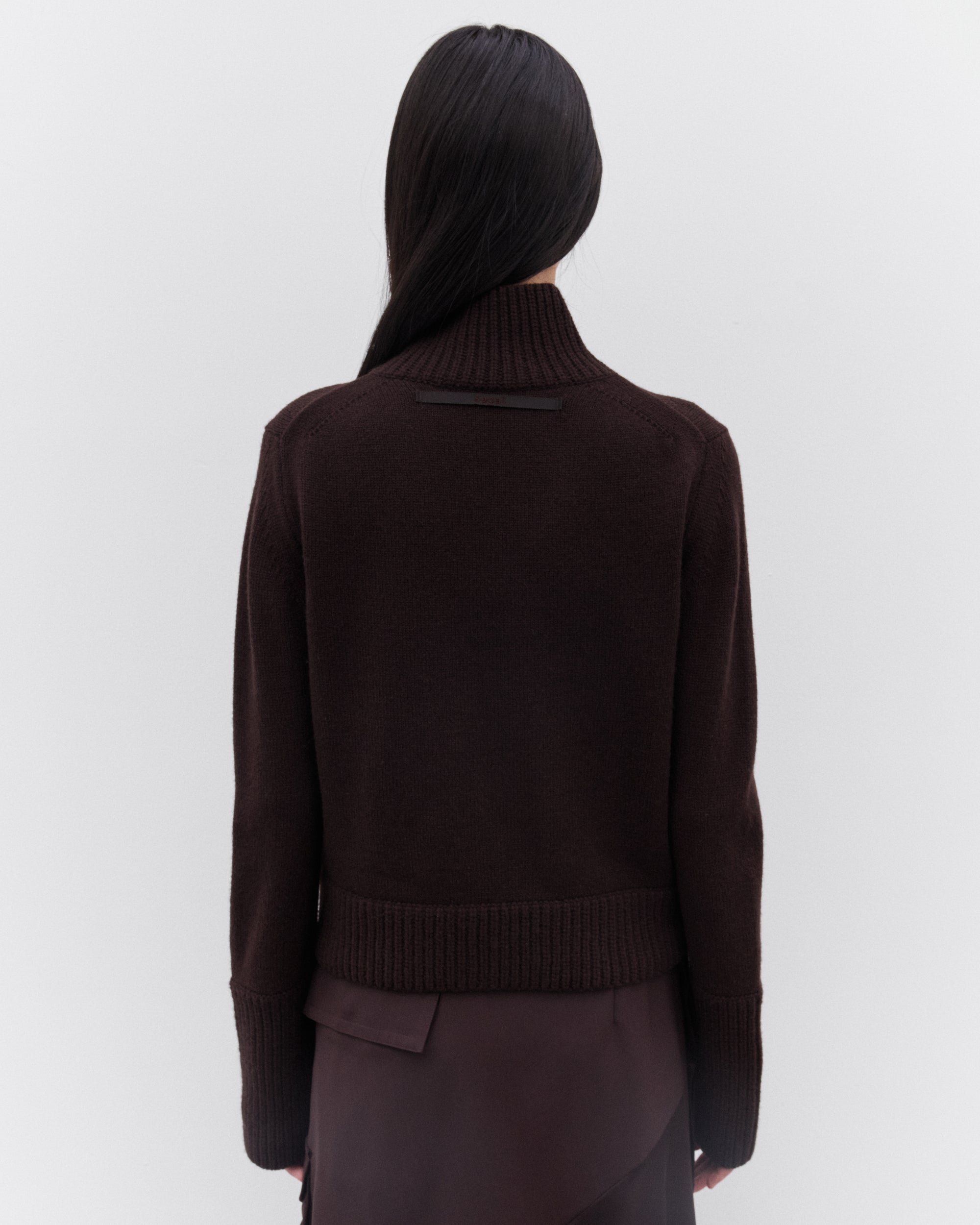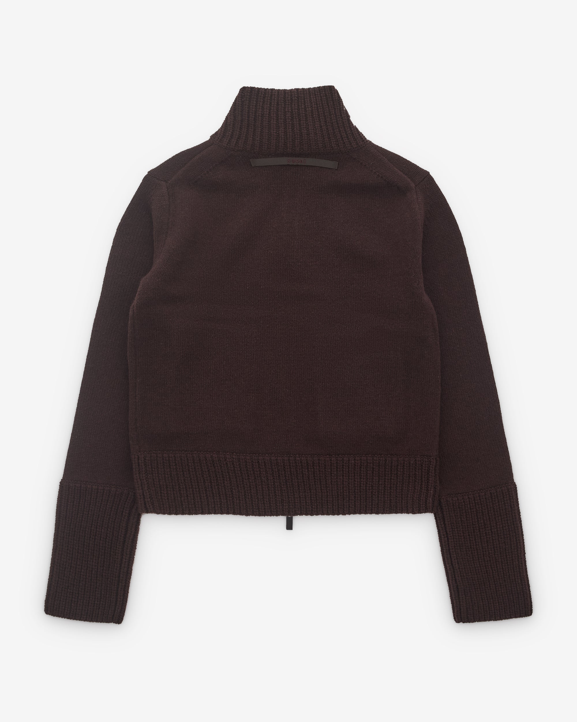 Funnel neckTwo-way zip fasteningSide welt pocketsCropped fitHeavy gauge knitExtended cuffsRib knit trims