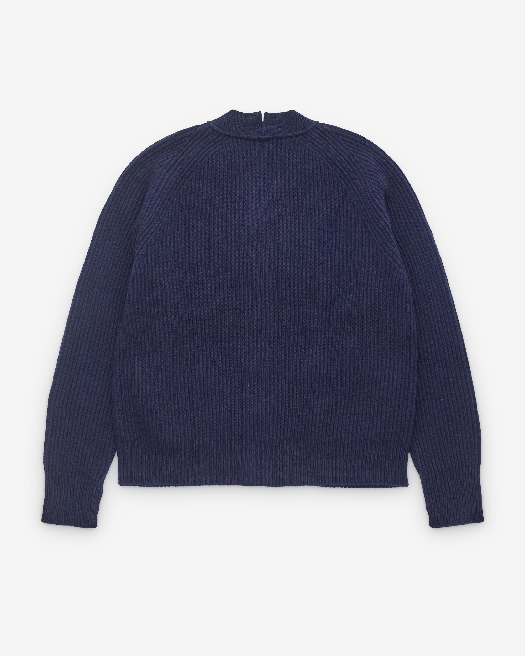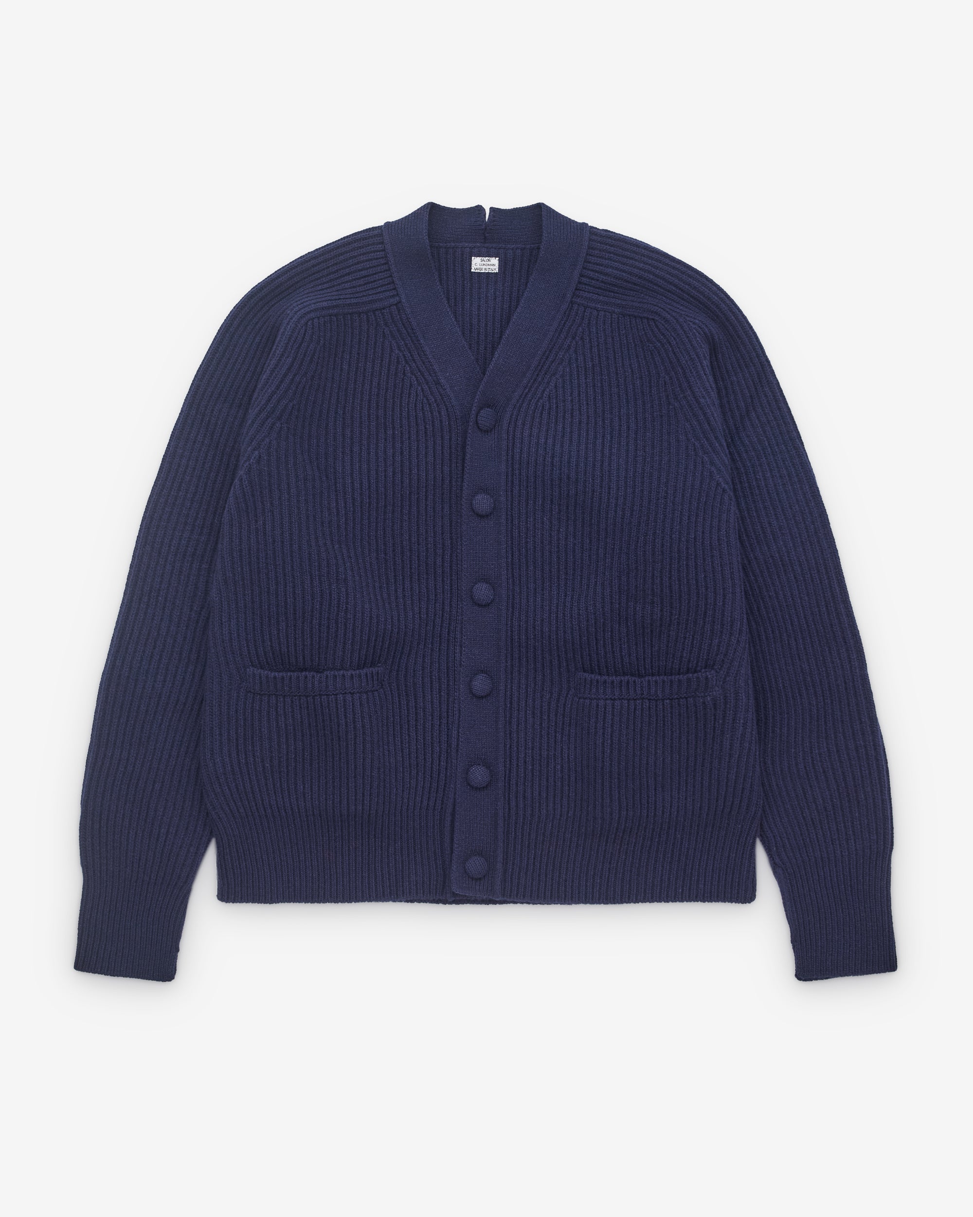 Ribbed knit constructionCardigan button closureV-necklineDrop shouldersRibbed cuffs and hemTwo front patch pockets