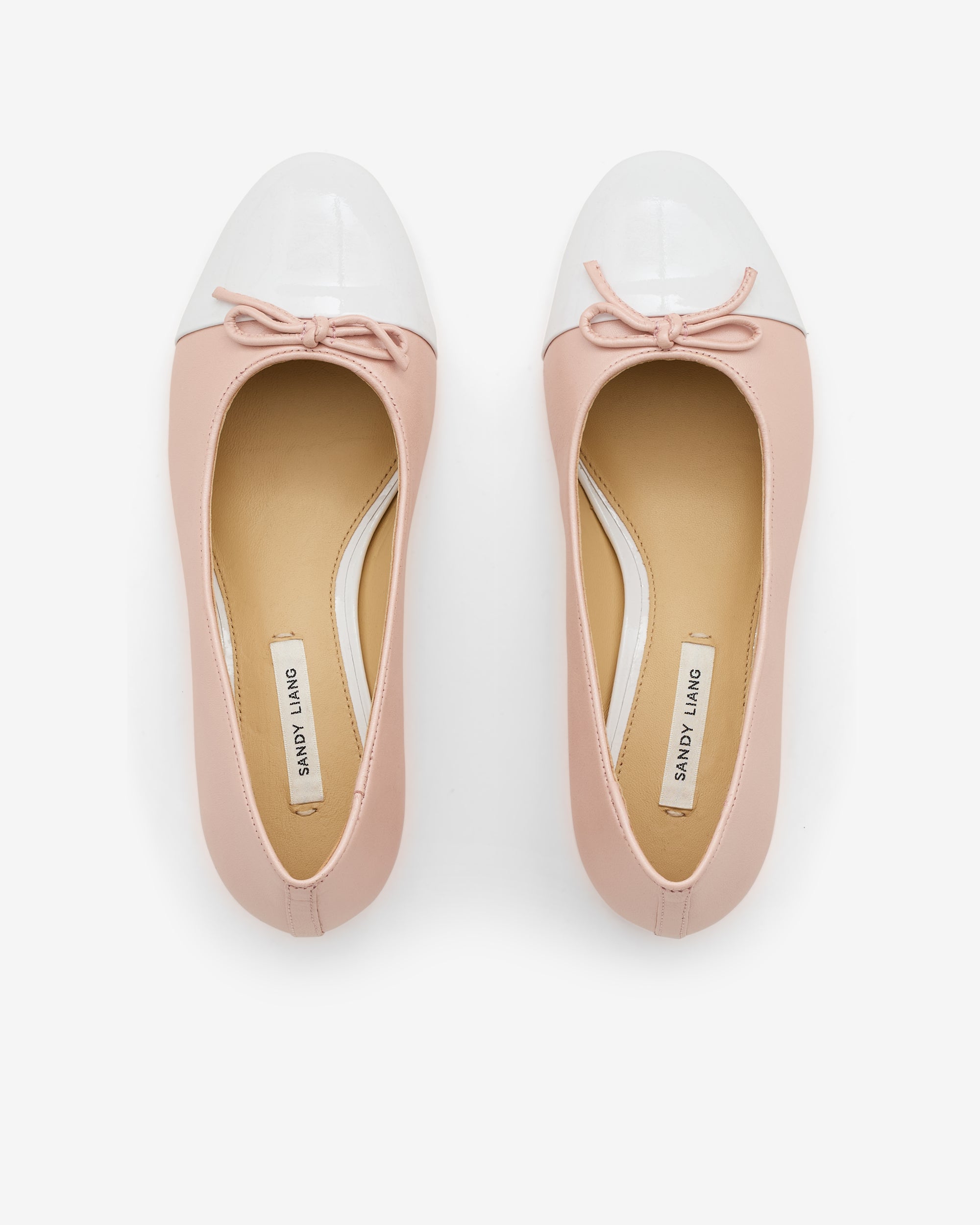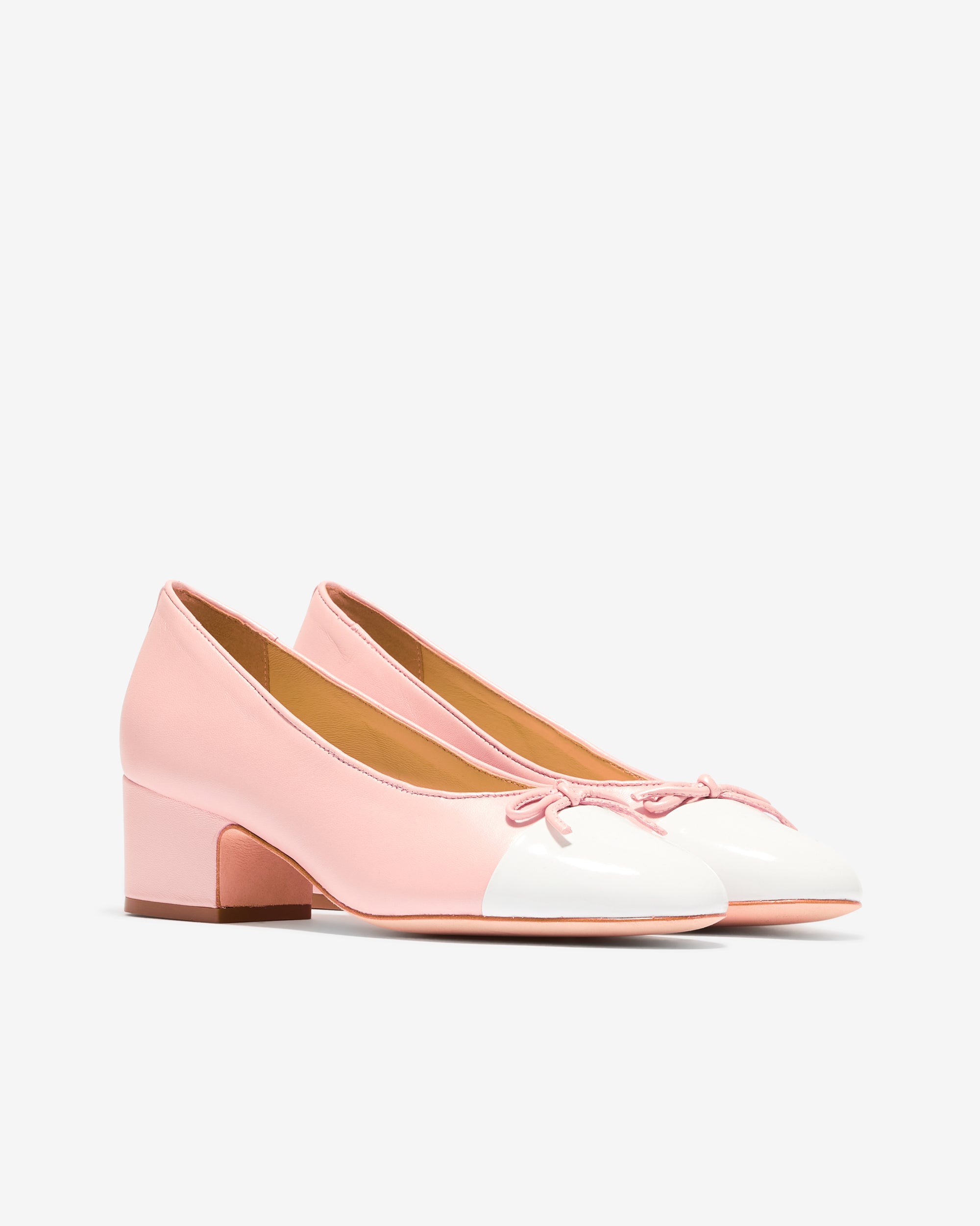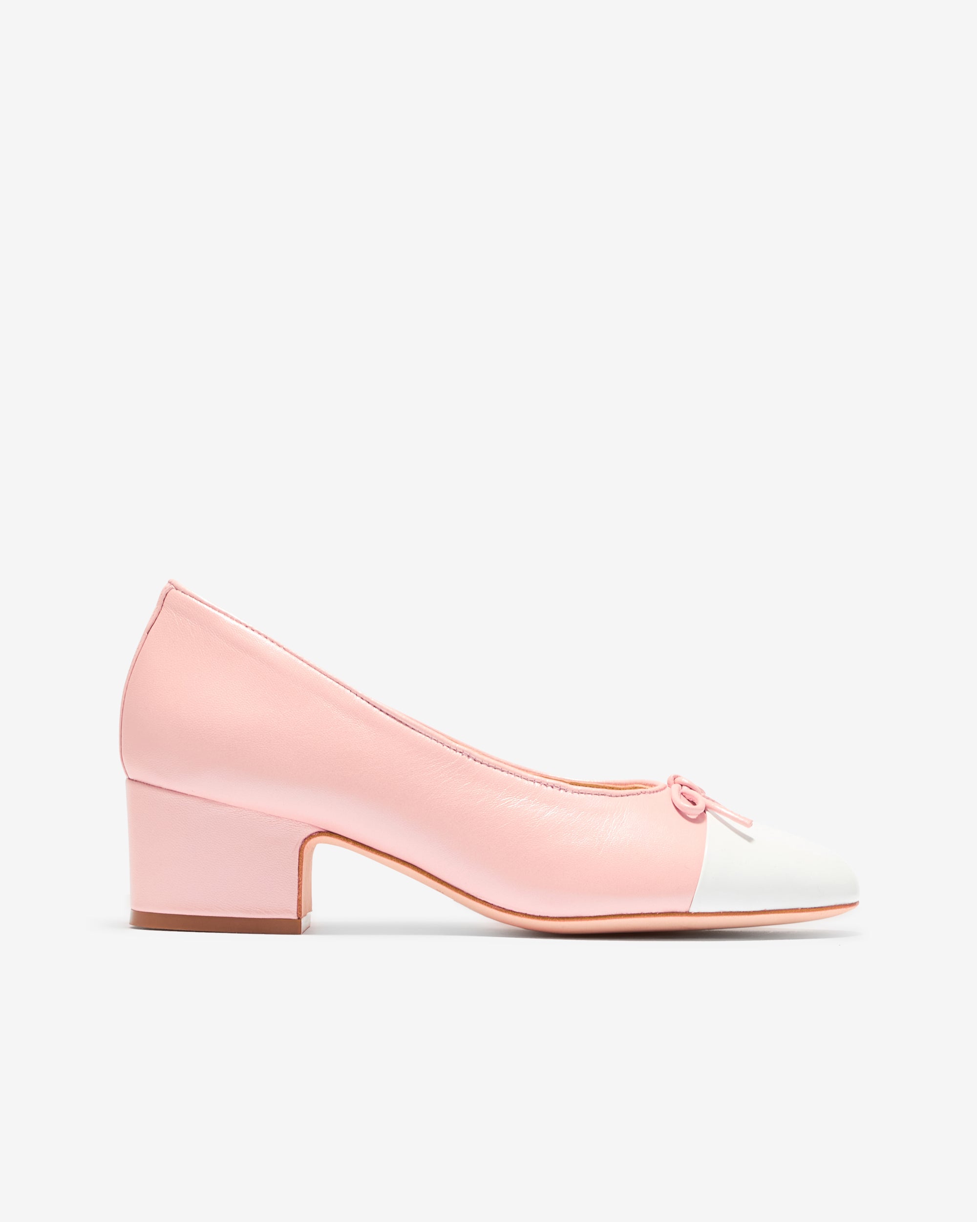 Cap toe pump in Nappa LeatherPearl Pink with White Patent toe cap45mm stacked leather heel
