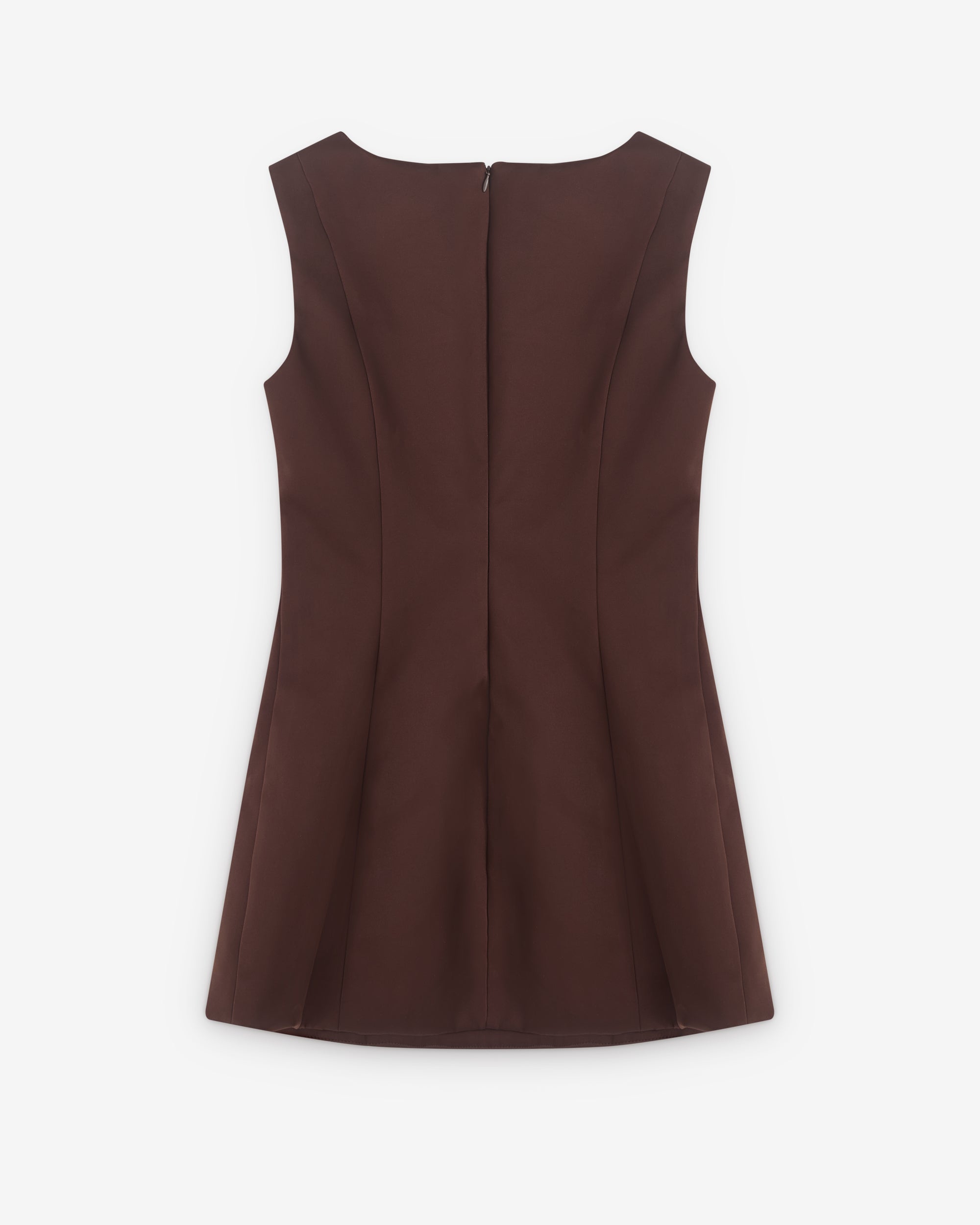 Mini dress in Brown heavy satinFeatures miniature handmade dress in frontConcealed zipper at backFully lined