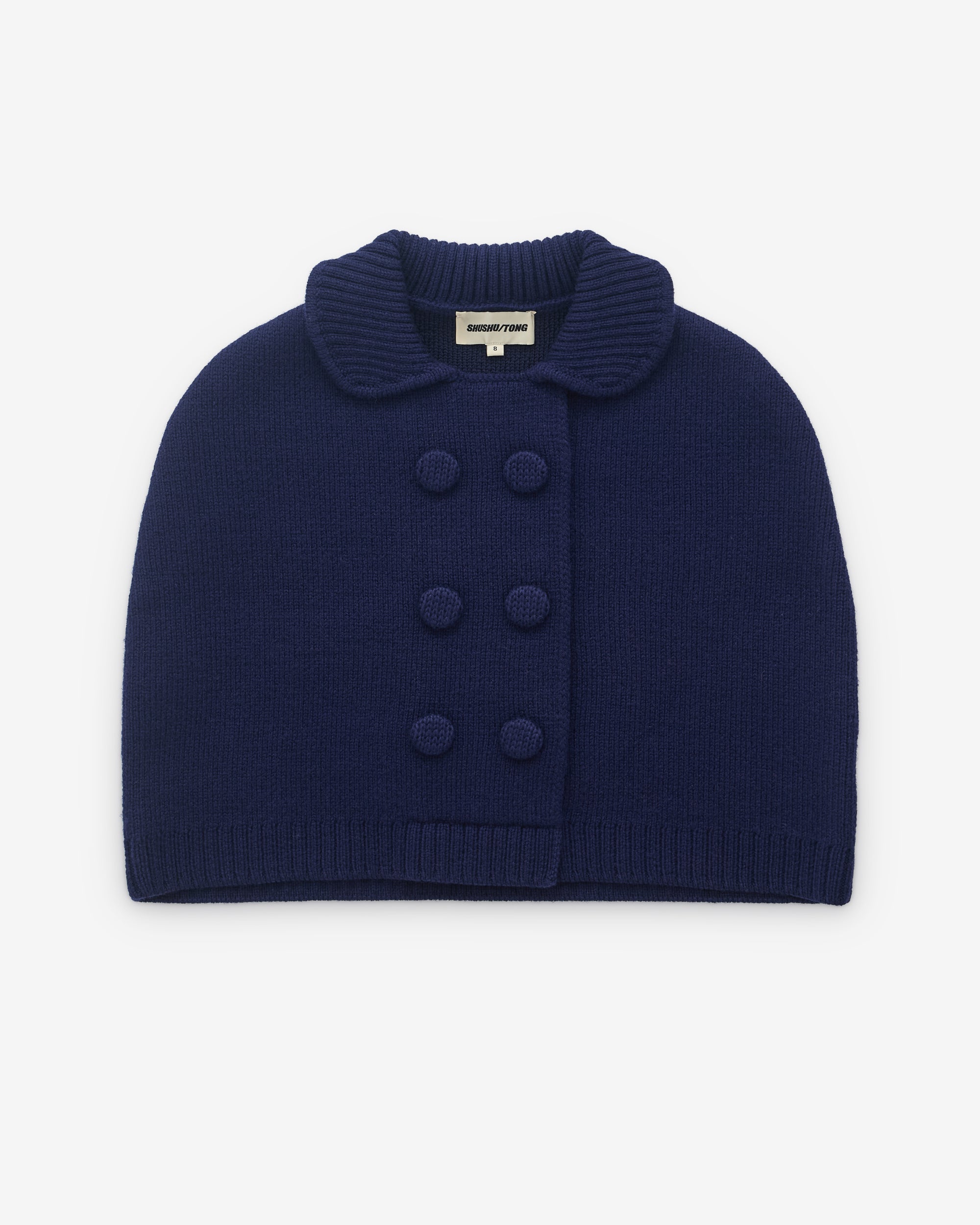 SHUSHU/TONG Women’s Double-Breasted Knit Overblouse Navy