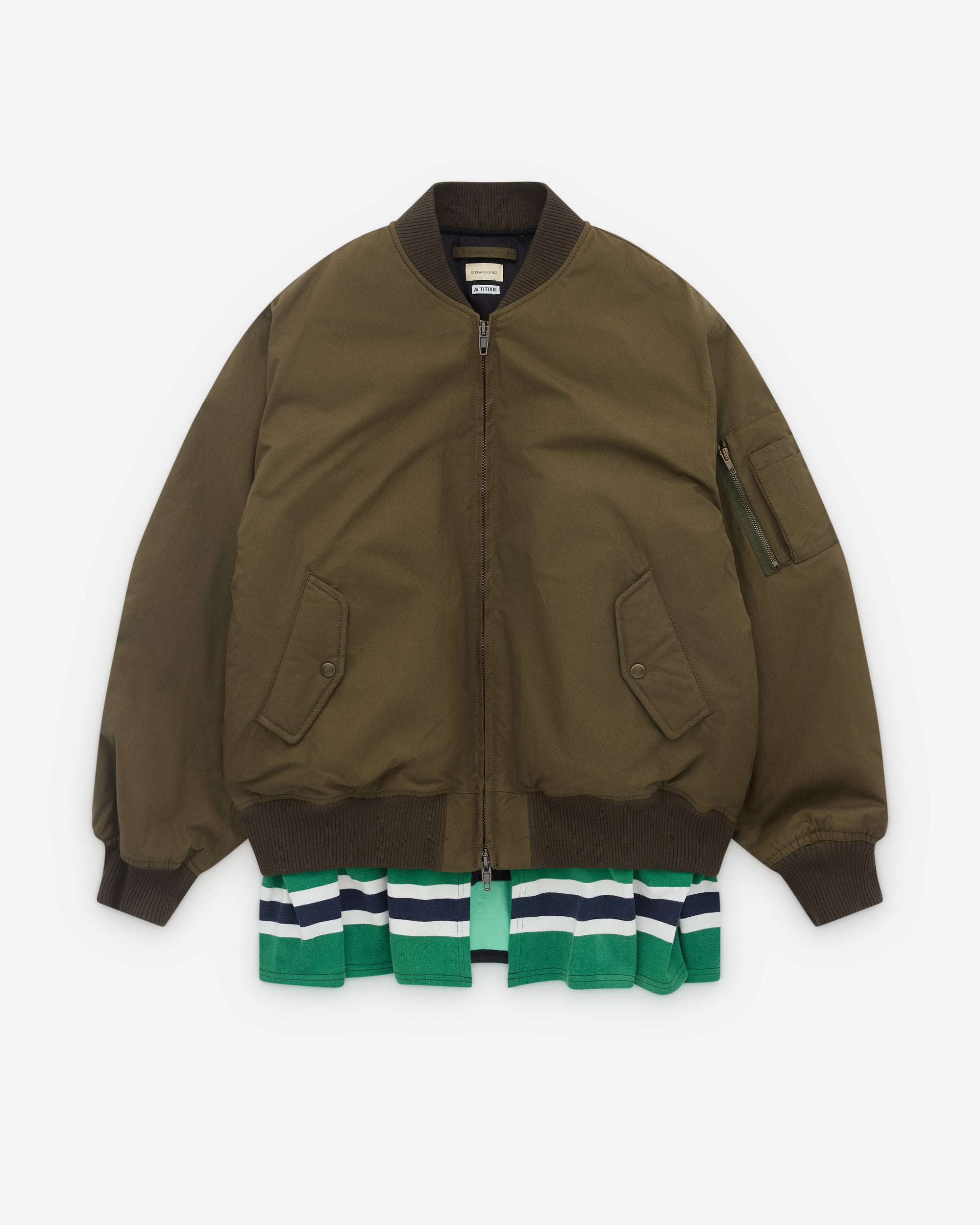 Vintage multi colour rugby jersey across hemTwo way zip fasteningTwo flat front pockets with press stud closureOne sleeve pocket with four bullet holdersWadding in body and pocket flapsFull internal viscose lining