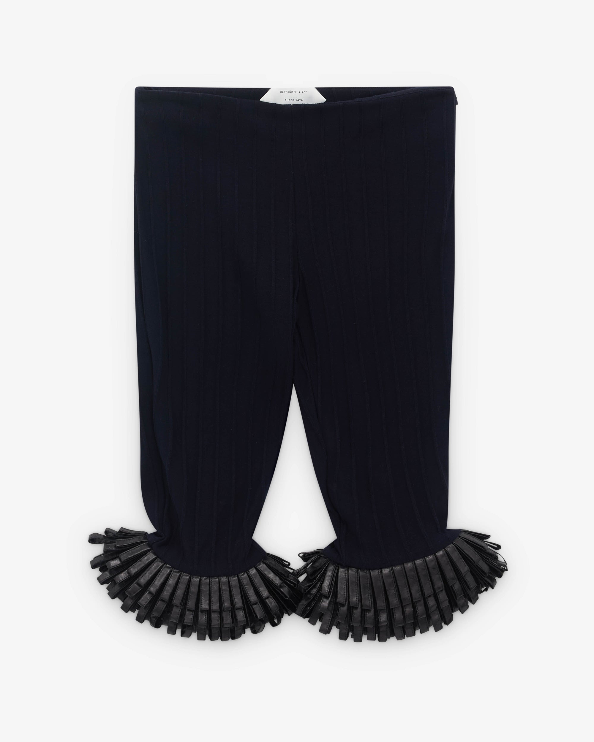 Capri lengthStretch waist bandLeather frayed details Side zip closure