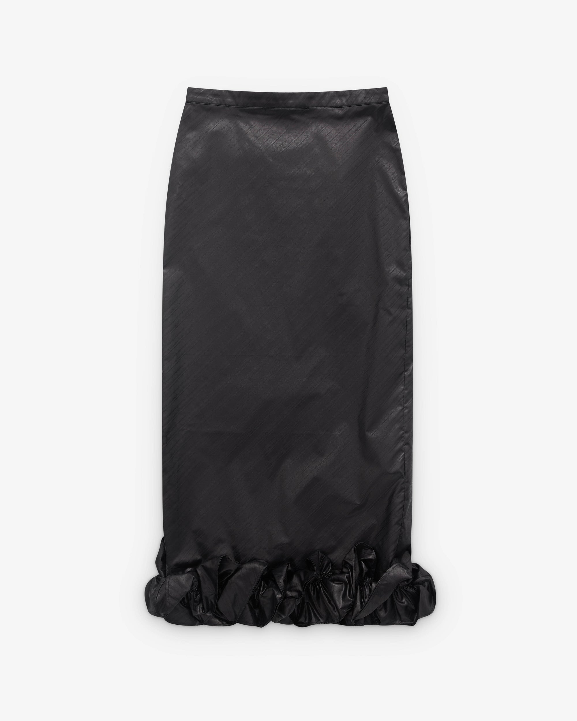 Textured cotton fabricMaxi skirt lengthRuffle details at hemSplit rear hemBack zip closure