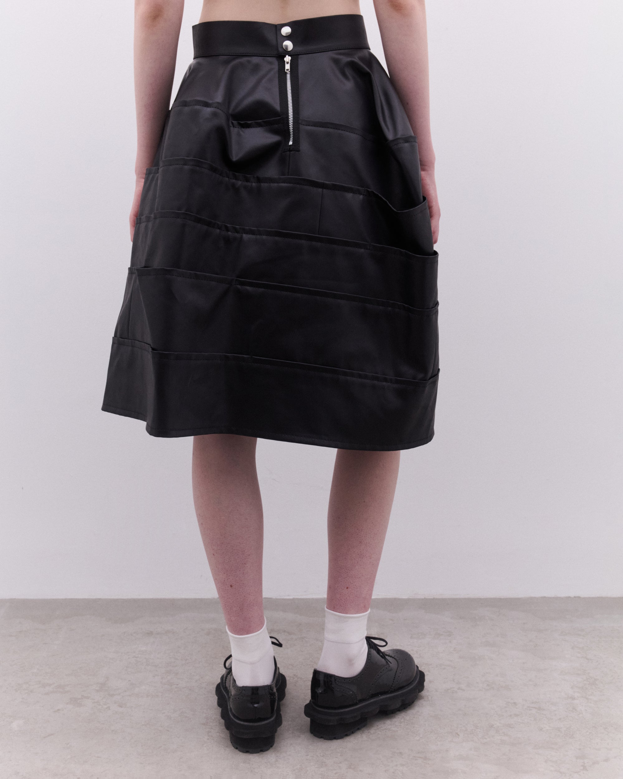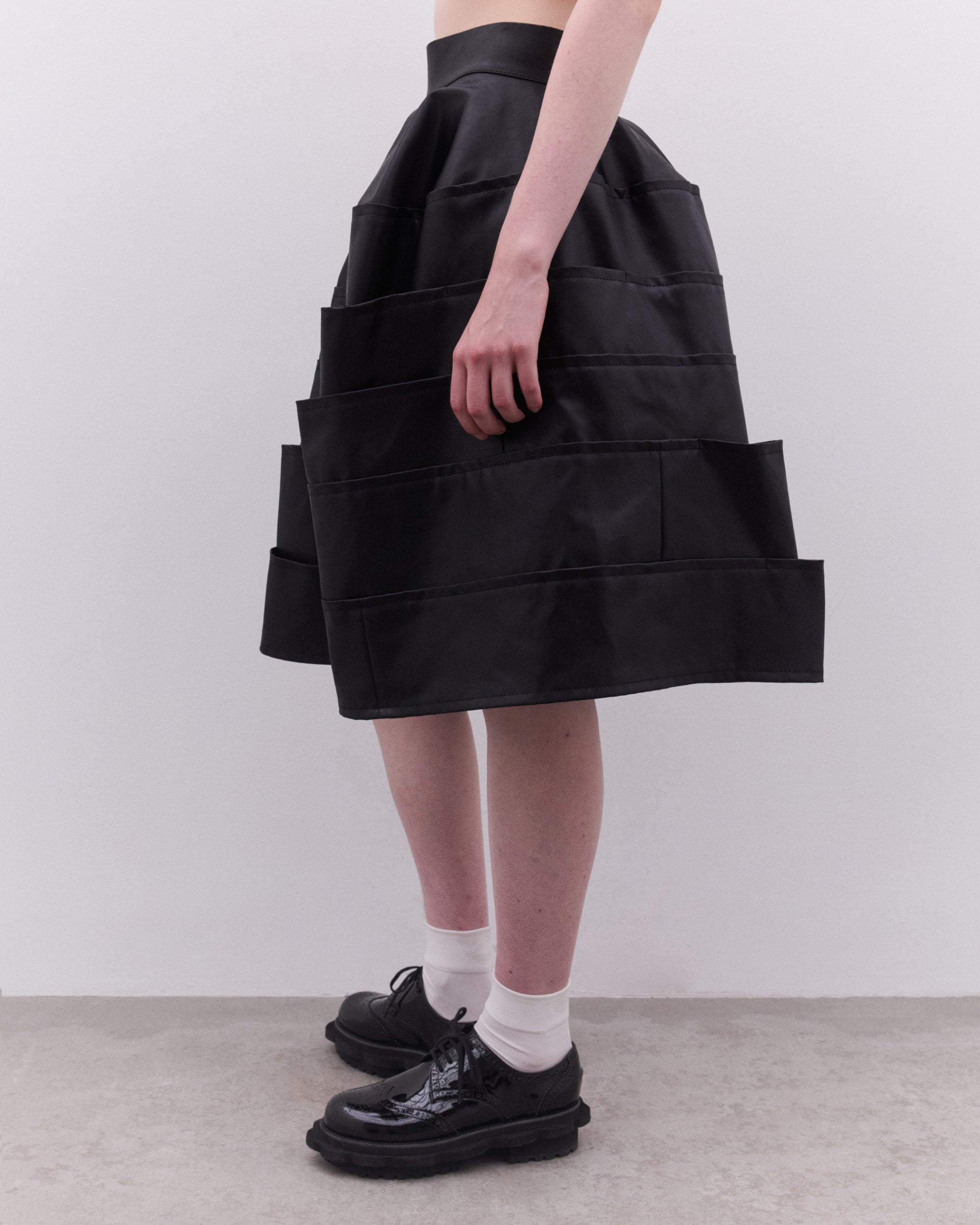 High waistedTiered constructionCut out detaling throughoutUnlinedZip and press stud fastening