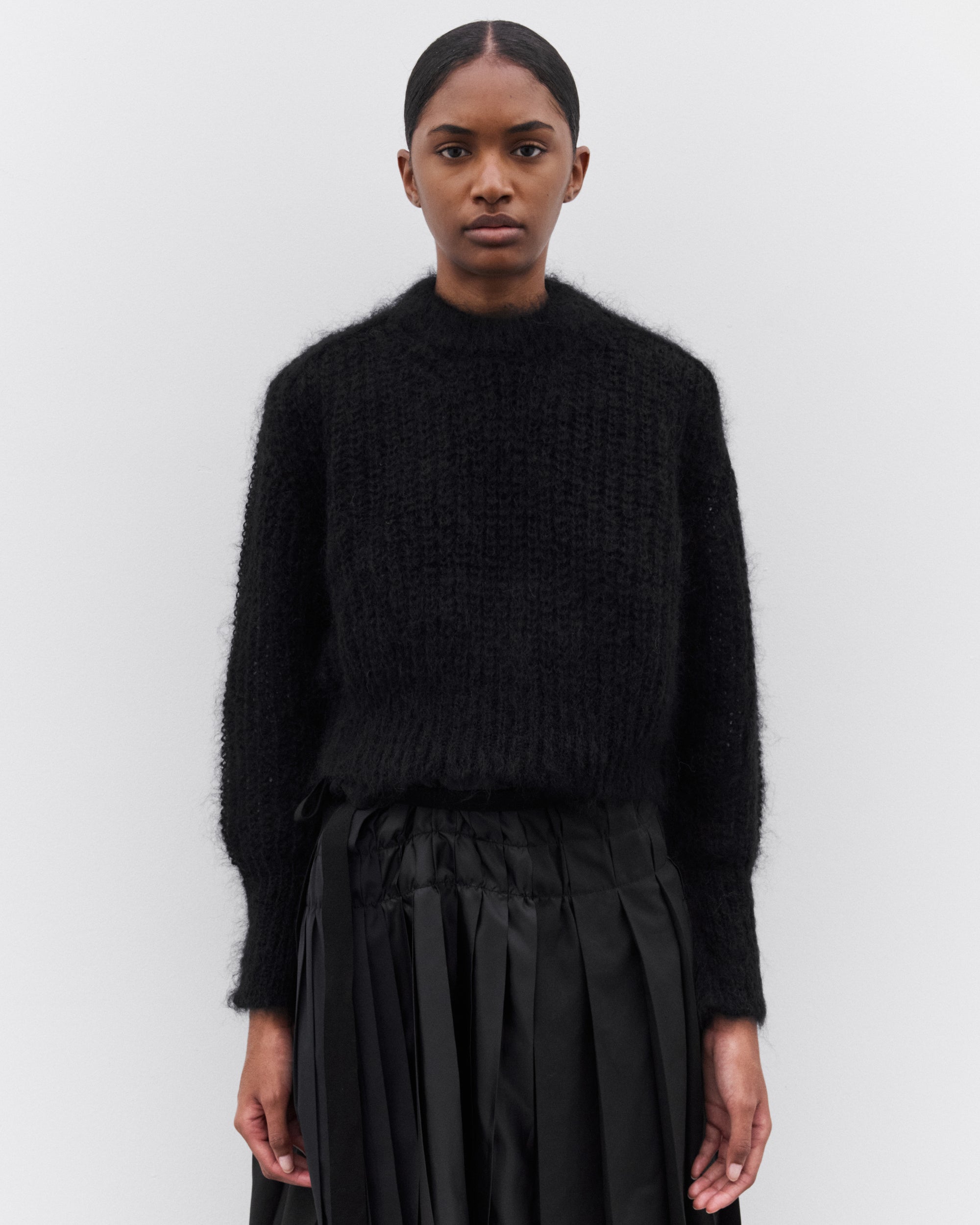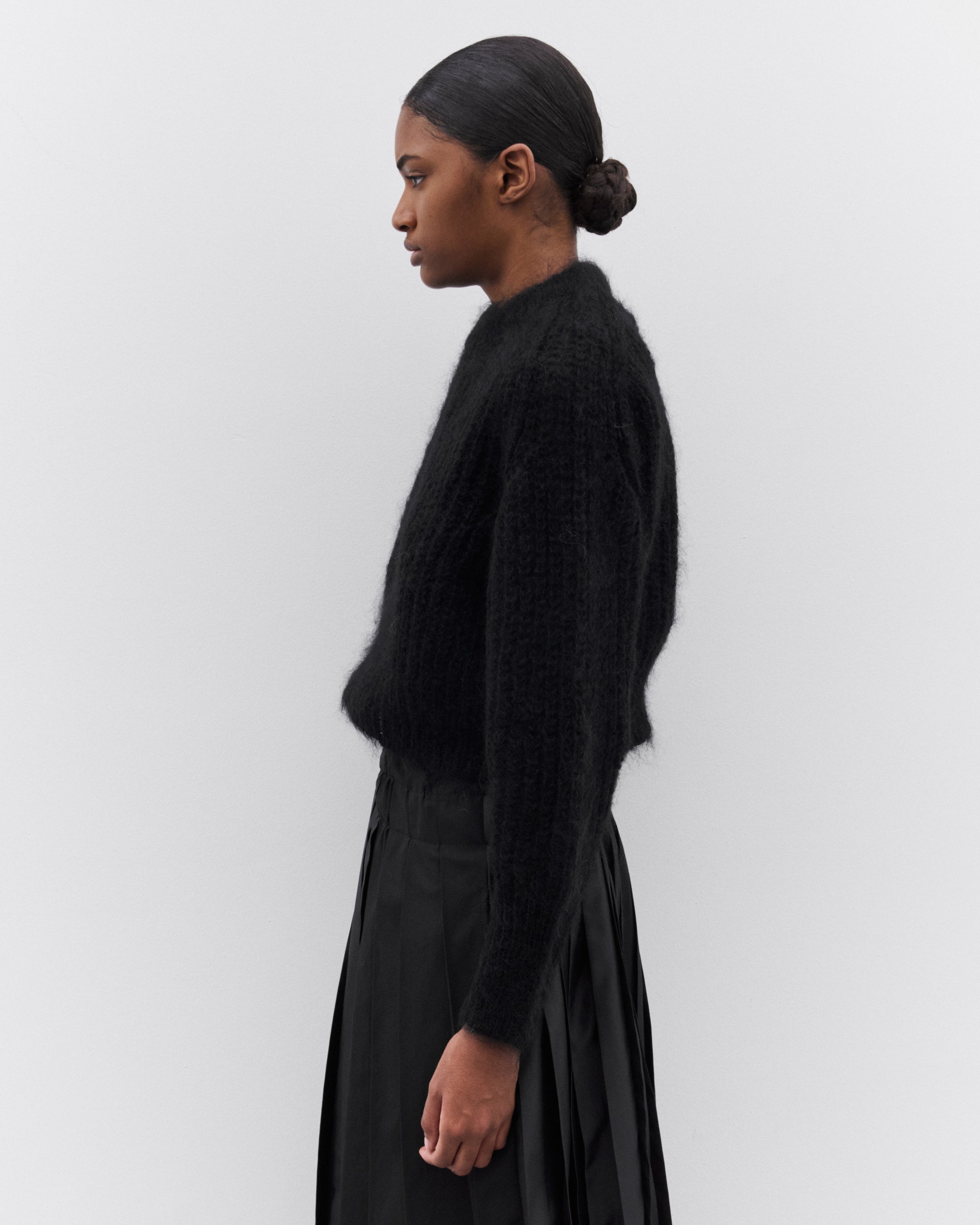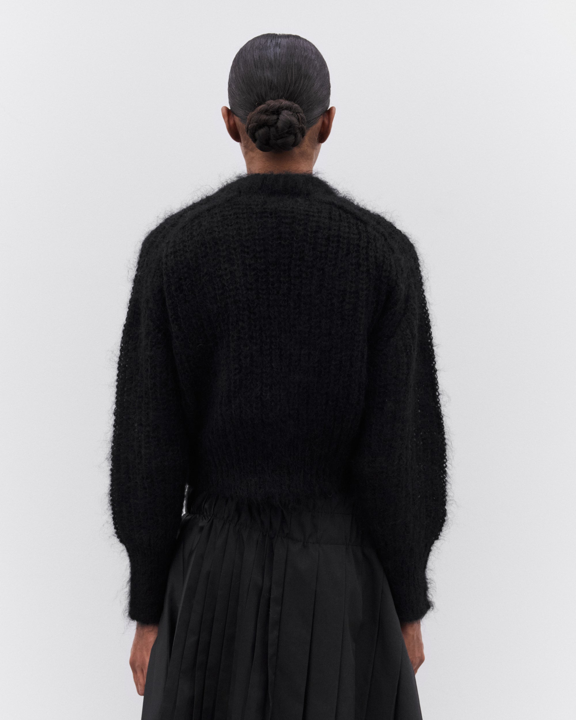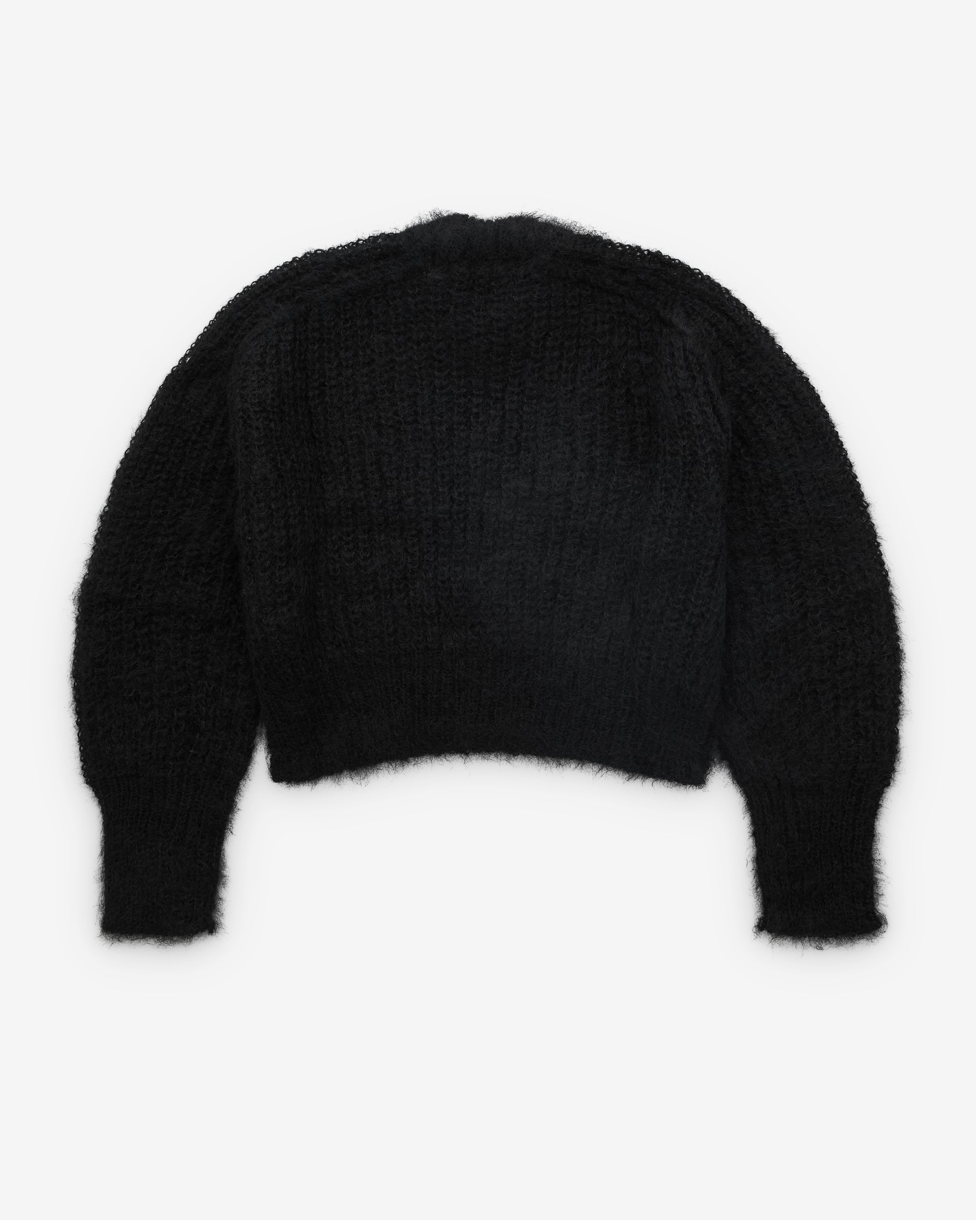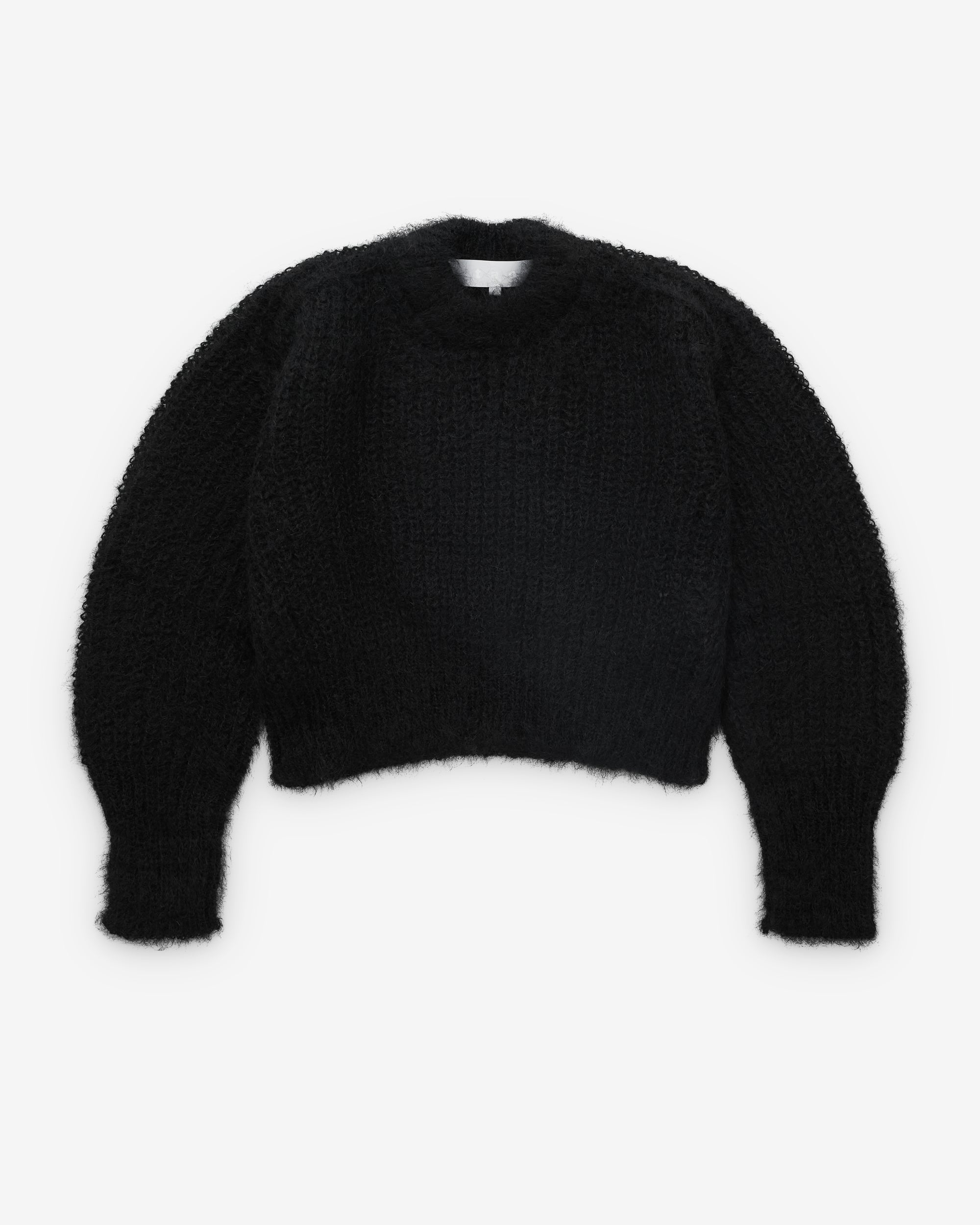 Cropped, boxy fitRound neckRaglan sleevesFuzzy knit trims
