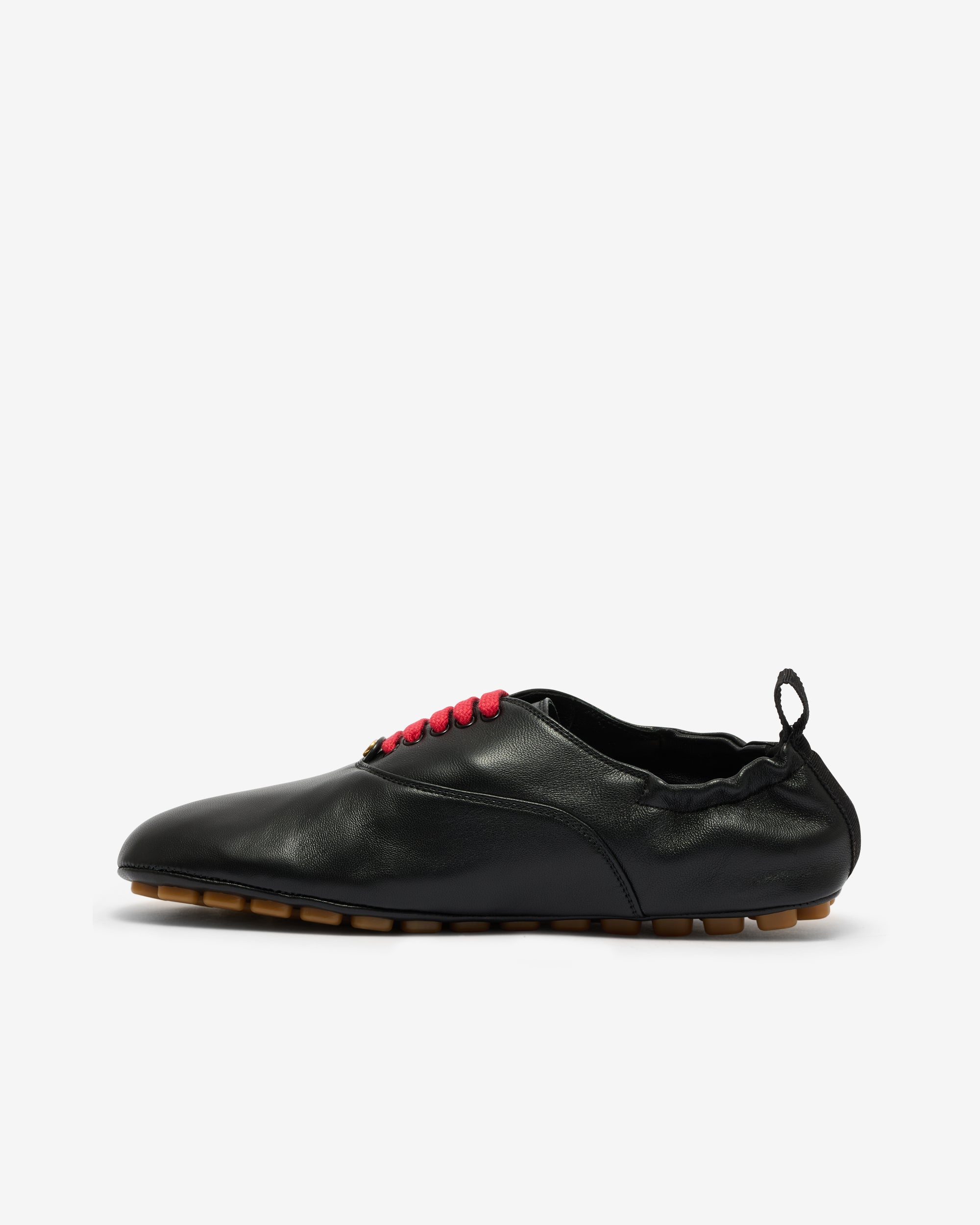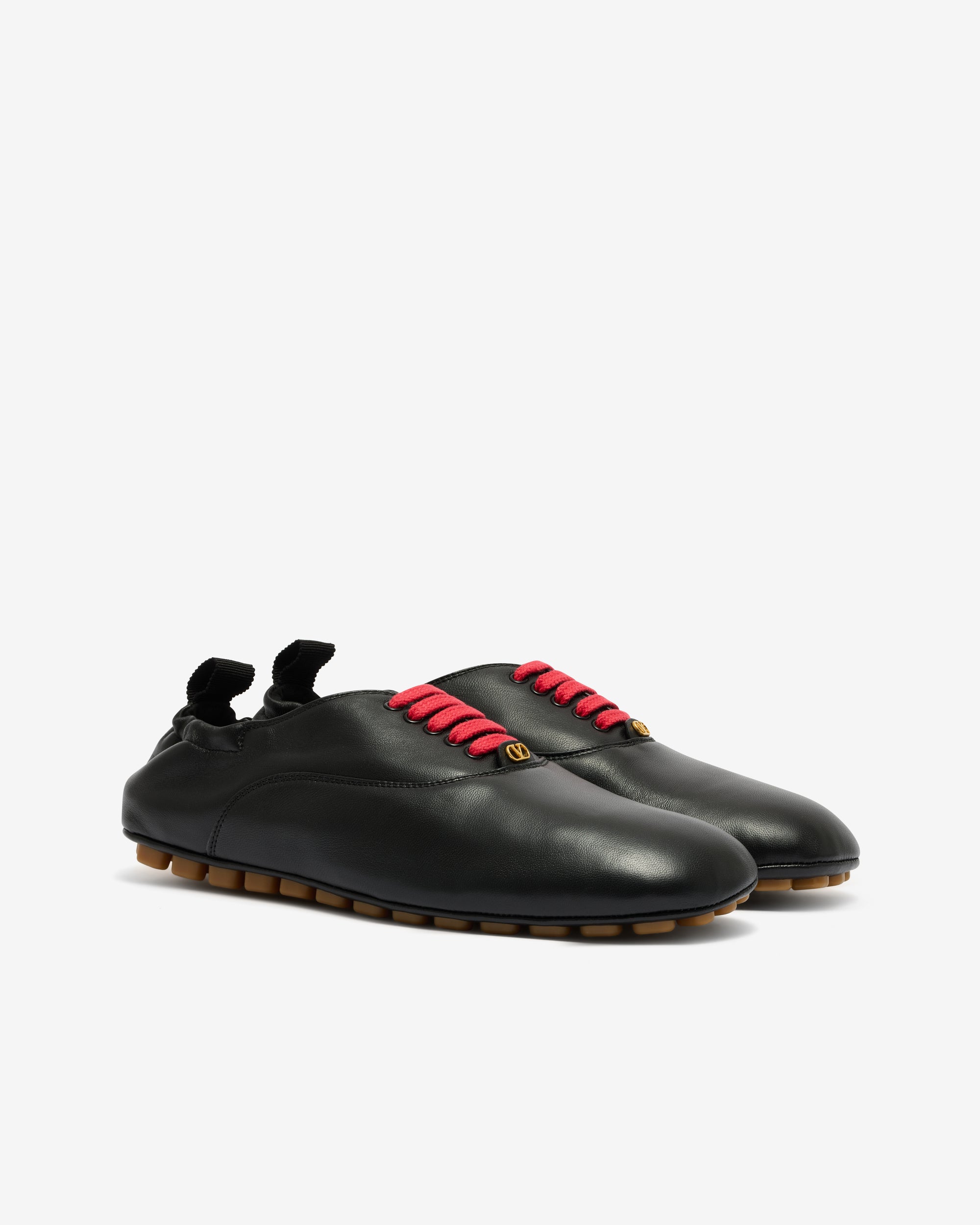 Leather upperLace up closureRounded toe boxPull tab at heelV-Logo at front