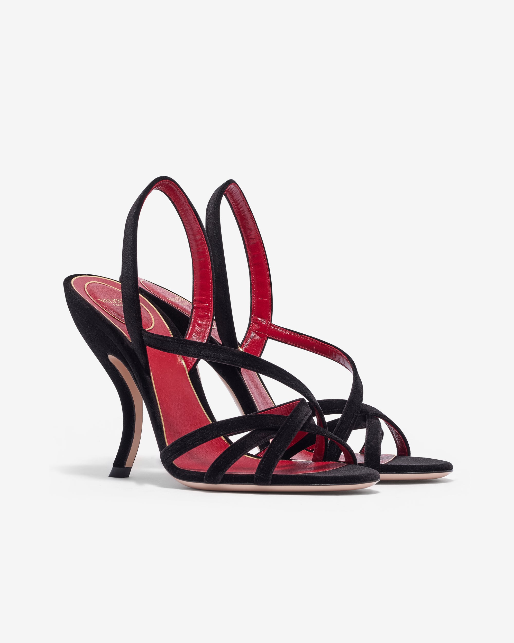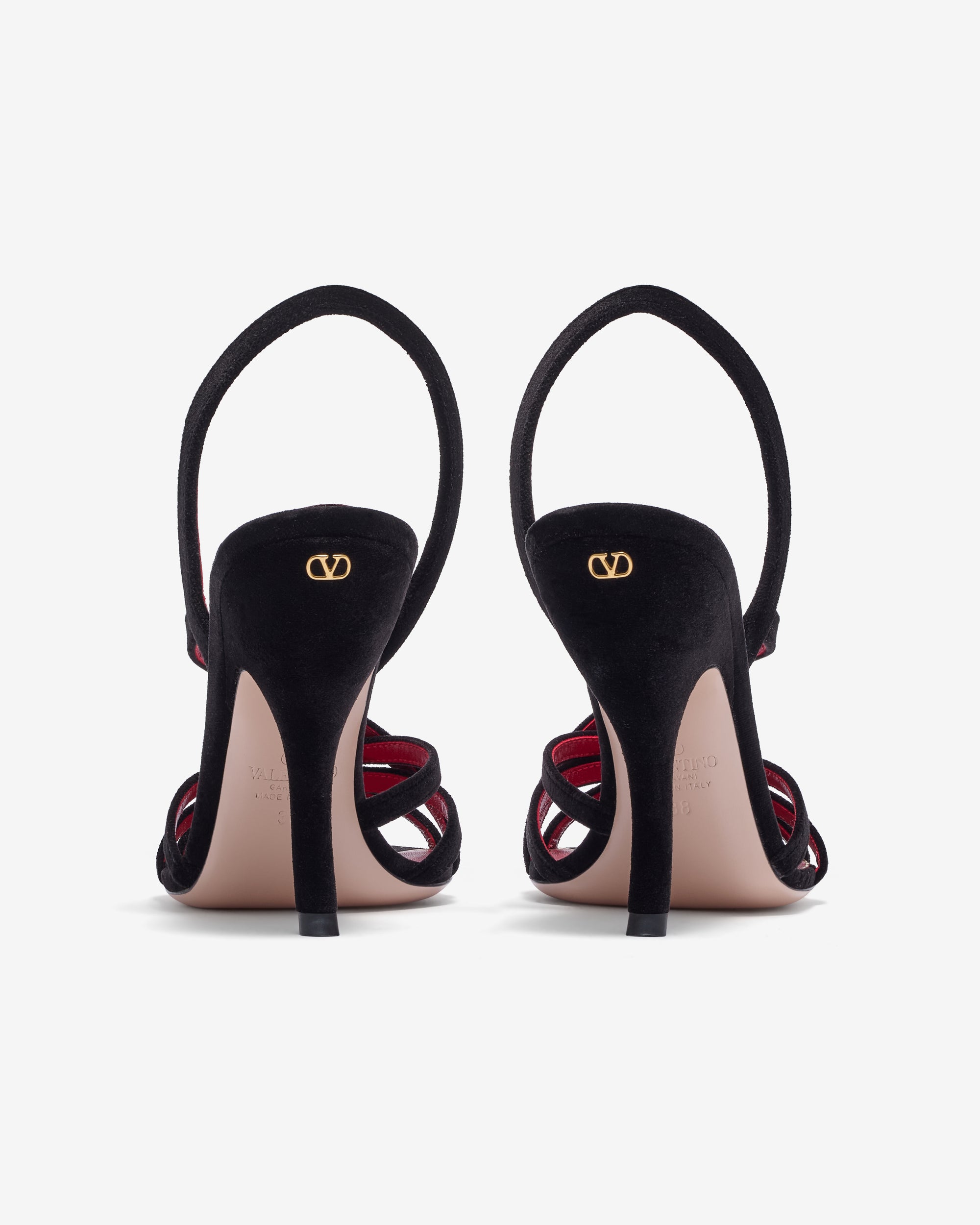 Valentino Garavani Fetishique velvet sandalVLogo Signature detail in antique-effect brass finishStrap with elastic insertComma heelHeel height: 105 mm / 4.1 in.
