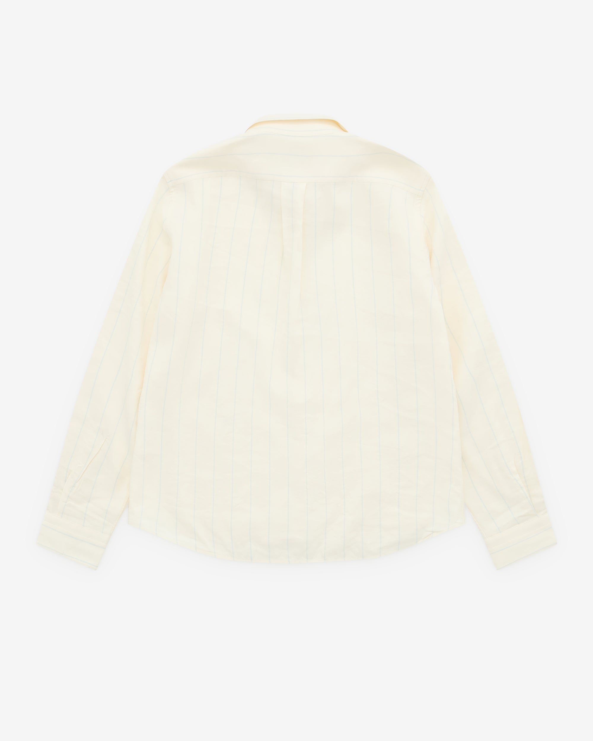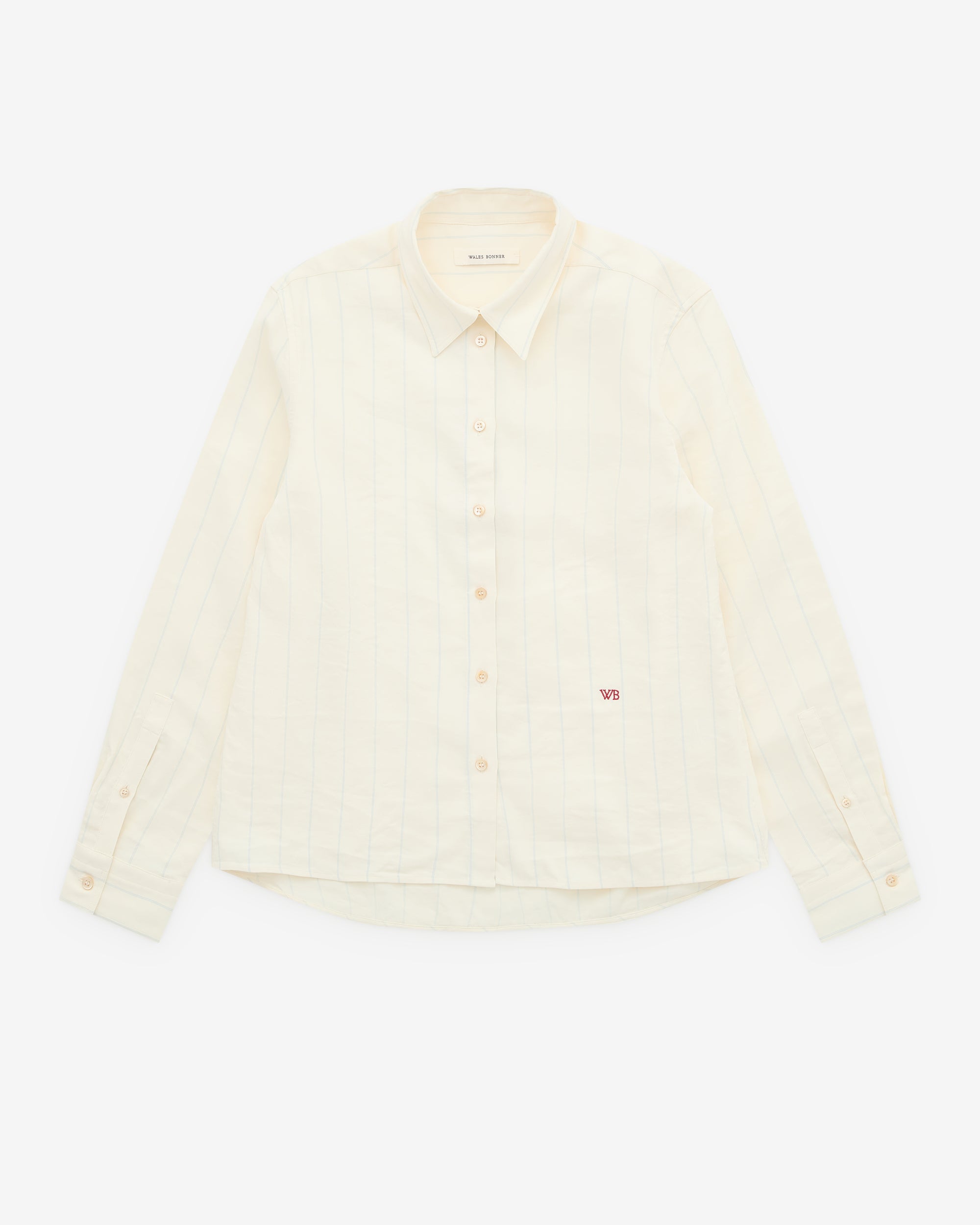 Point shirt collarLong sleevesEmbroidered WB at frontStriped fabricFront button closure