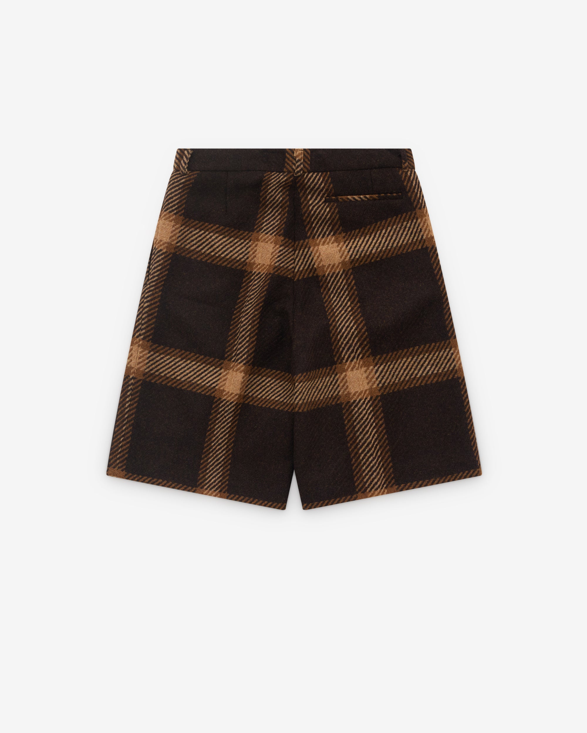 Front pleatOversized check printKnee lengthHook and eye waist closure