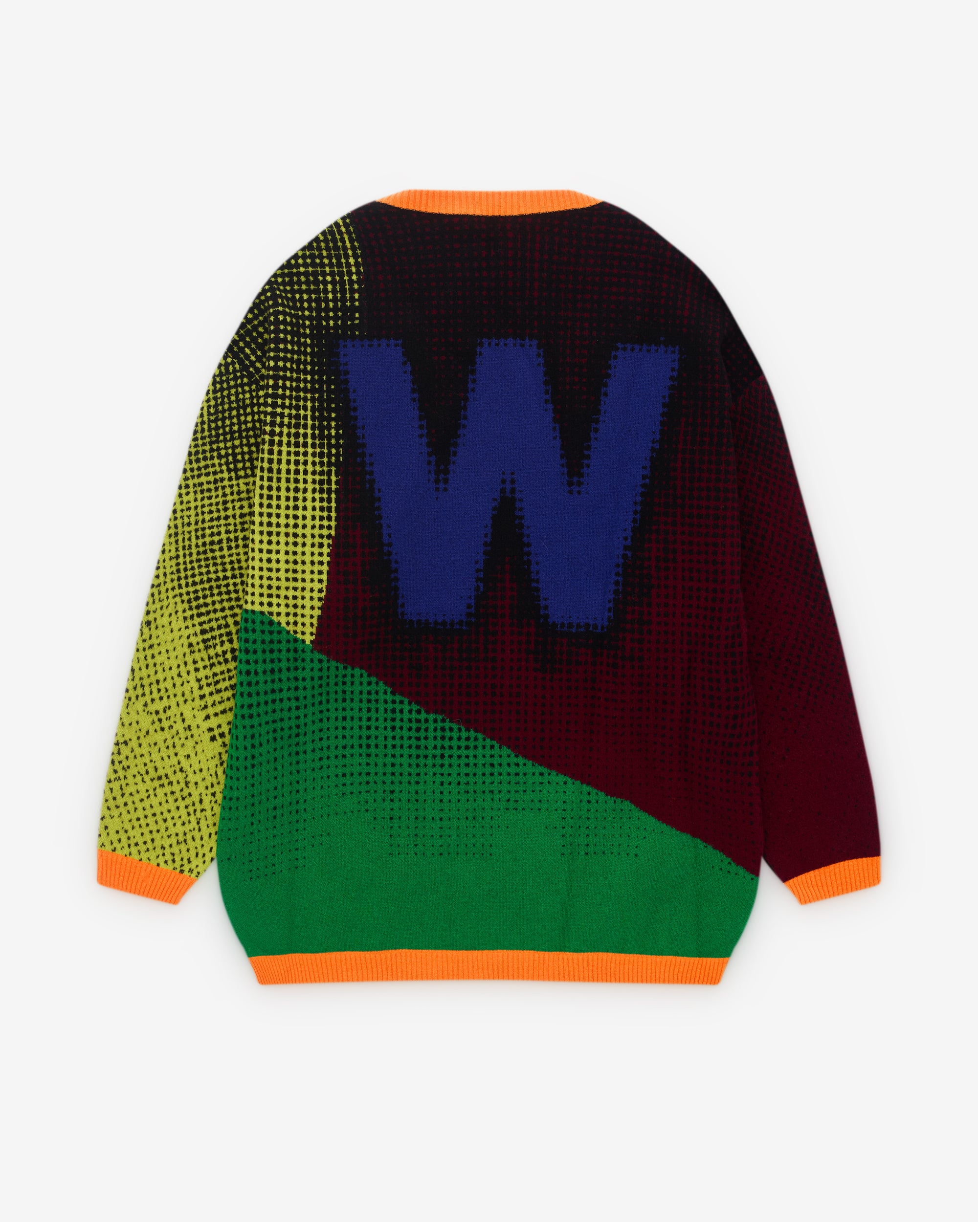 Ribbed crew necklineGraphic knit fabricLong sleevesContrast neck, cuffs and hem