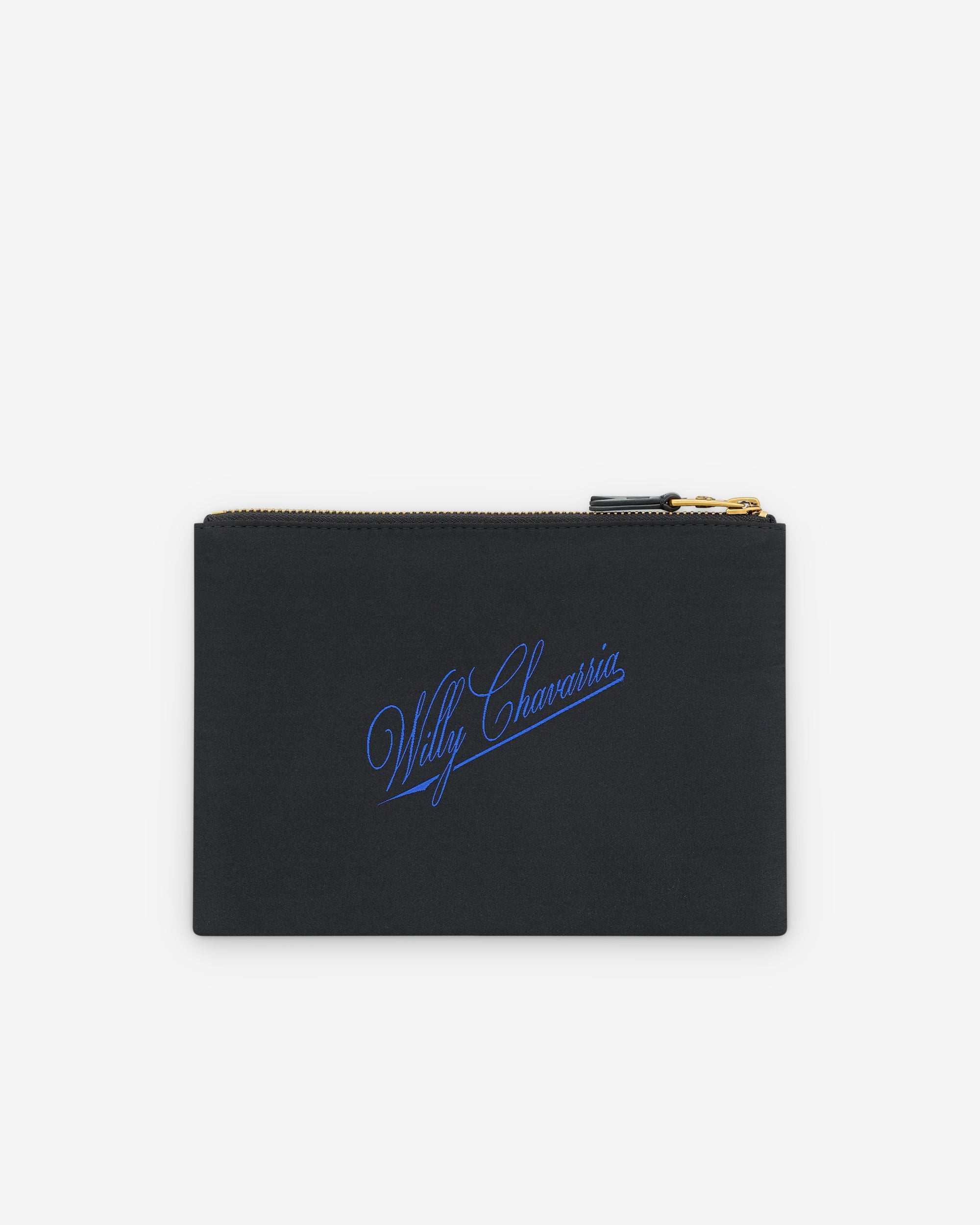 Signature “Tailoring” woven label graphicThread-embroidered Casa de Chavarria motif, “La Casa de Chavarria,” and addressCalf leather zipper pullUnlined, no pockets9”x6”