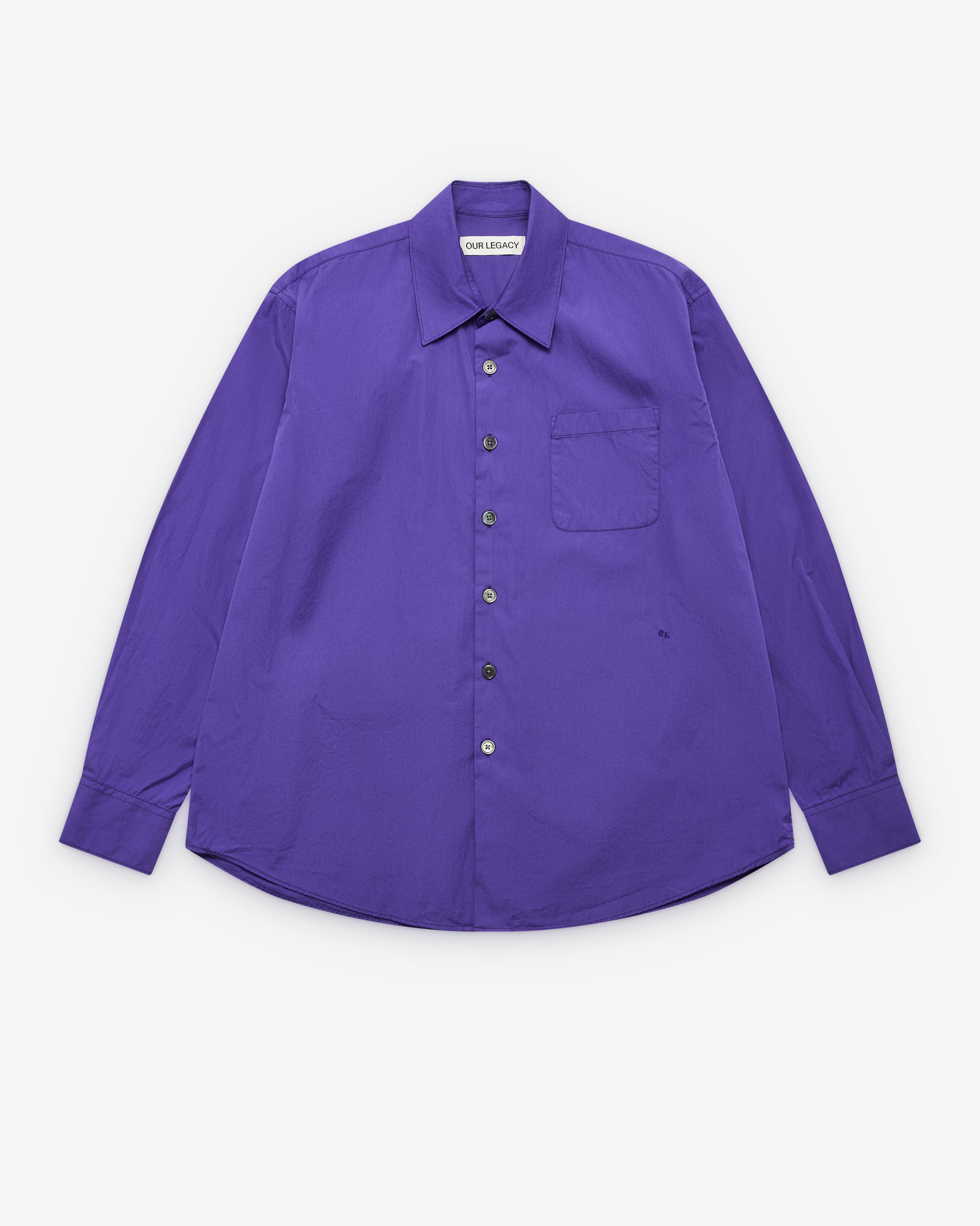 Cotton poplin fabricPoint collarFront button closureEmbroidered OL logoCurved hemButton close cuffsRear box pleat