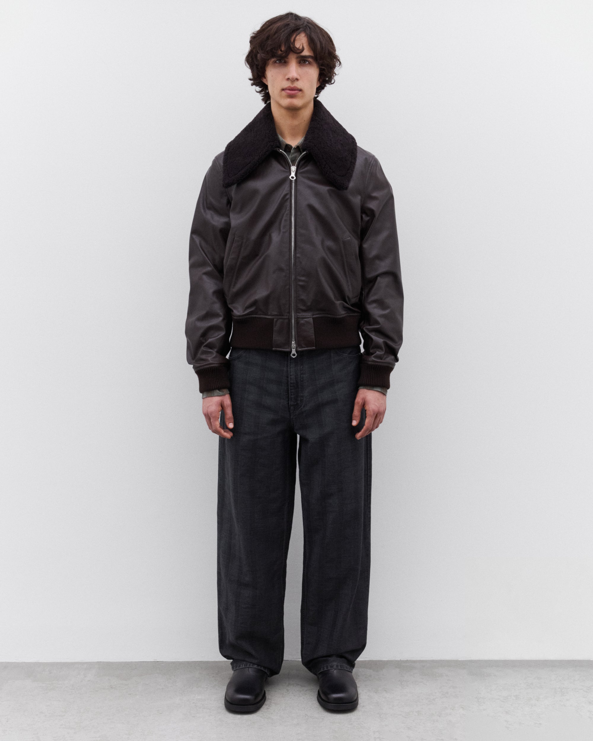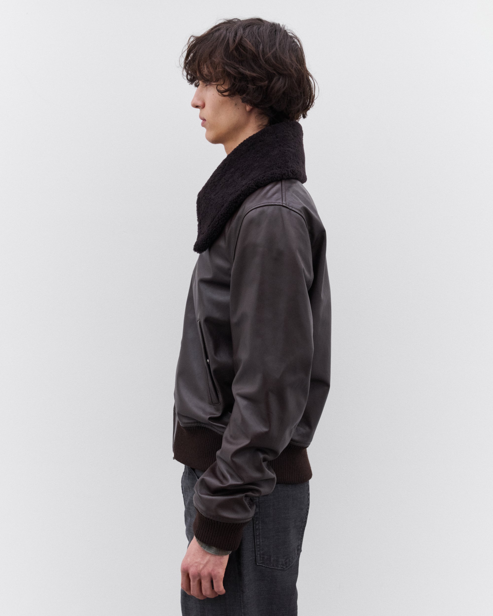 Detachable shearling collarLampo two-way zipWelt pocketsRibbed cuffs and hemInside welt pocketMetal OUR LEGACY bean rivetSleek, shaped fit