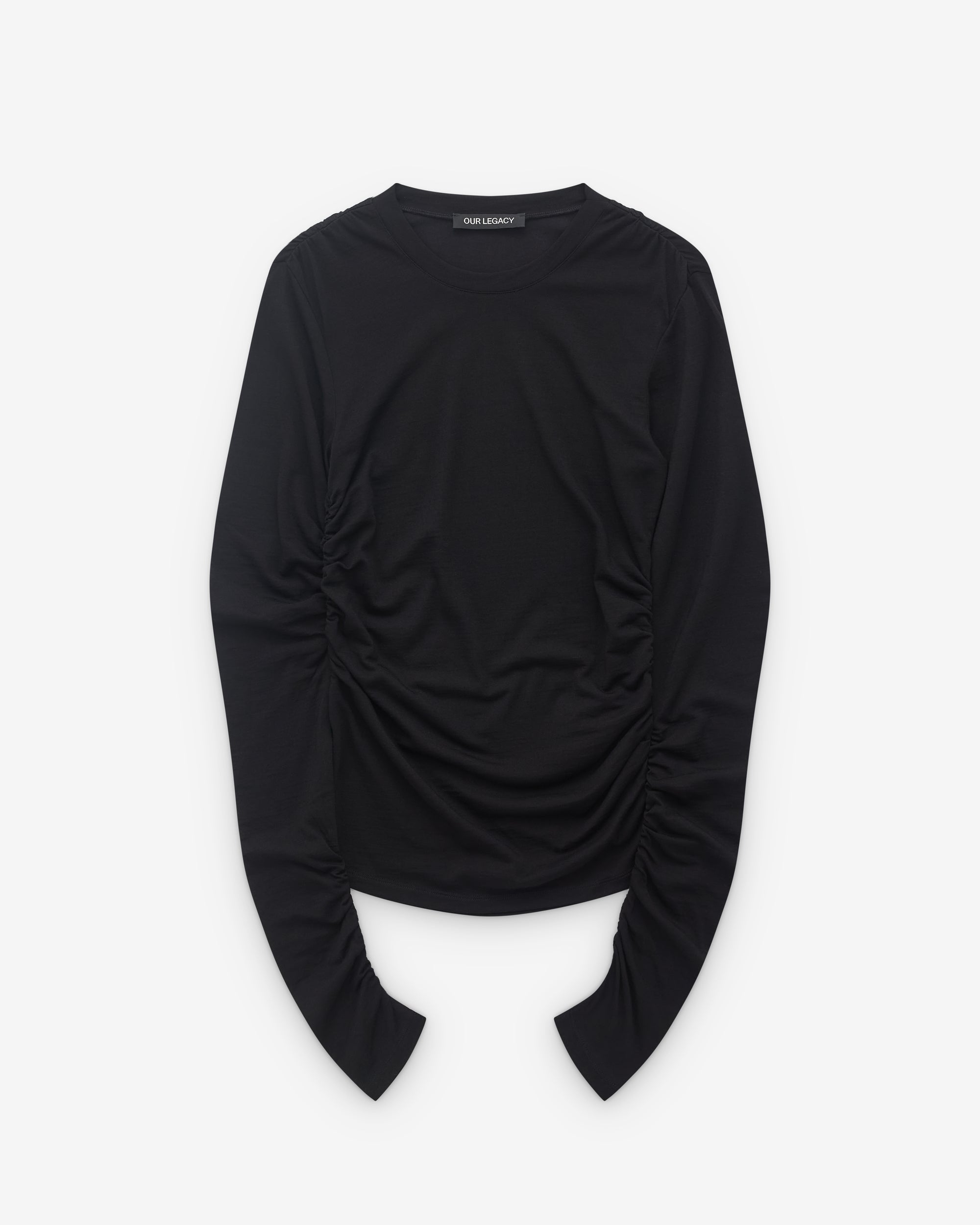 Lightweight fine jerseyRuched seam detailsFolded hemsElongated sleevesOverlocked seamsSlim, gathered fit