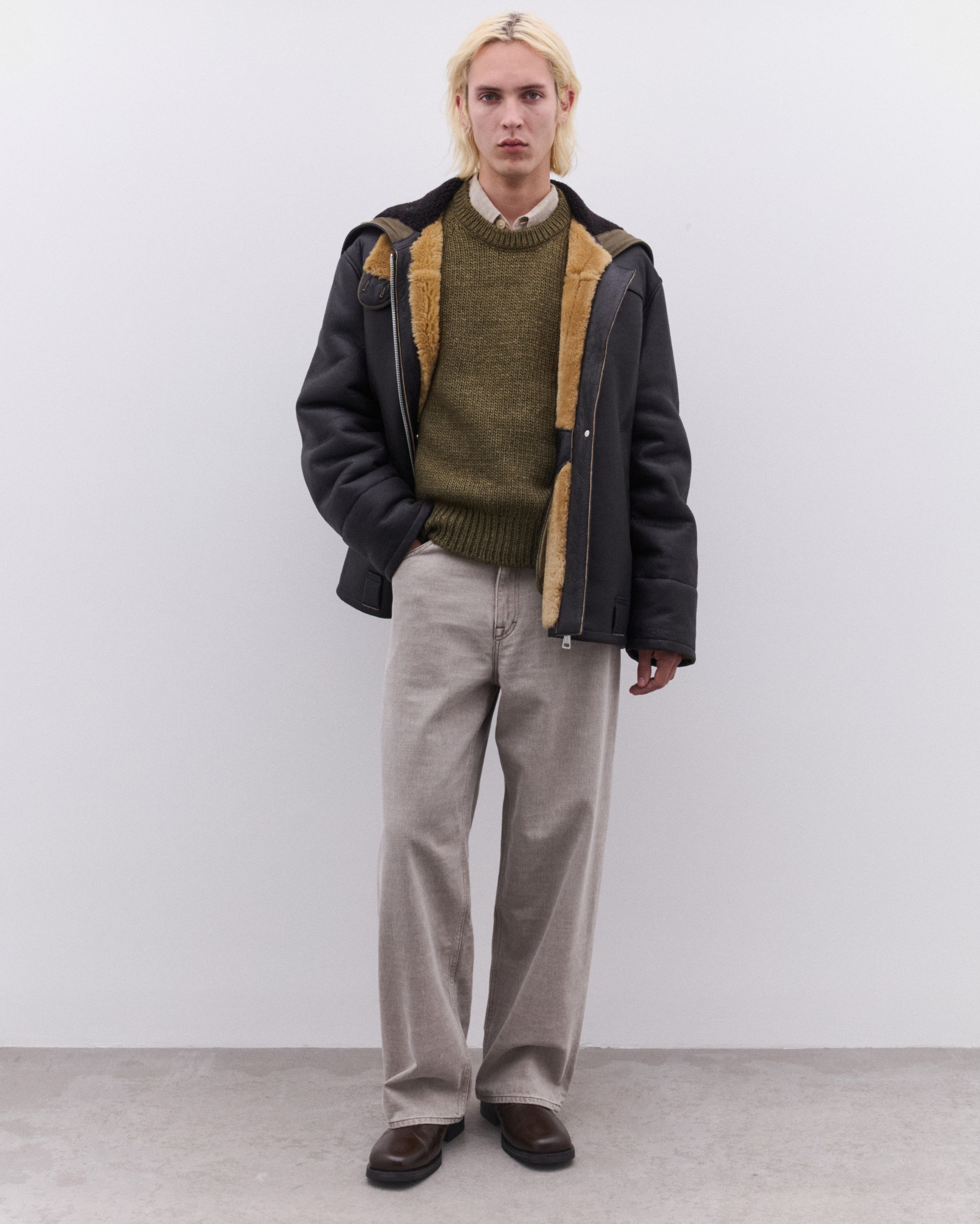 Pigment dyedWashed finishWide loose cutHigh waistFive pocketsSteel rivetsEmbossed Our Legacy rubber patch YKK zip fly