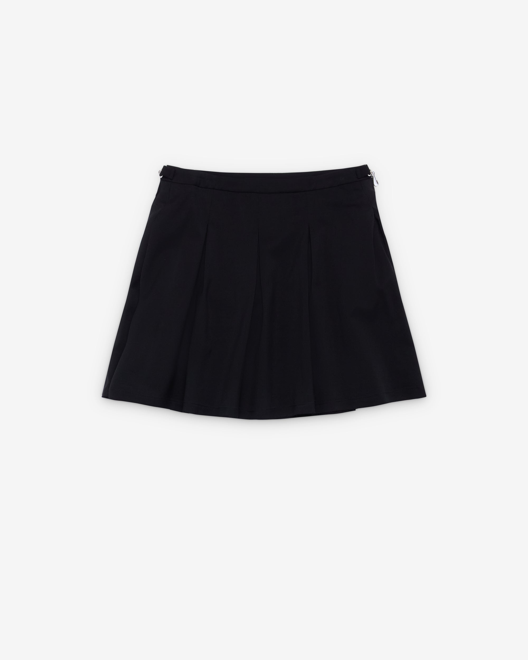 Pleated constructionRaw edge hemHook and eye waist closureLampo zip closure on both sidesZips can be opened to change the silhouette