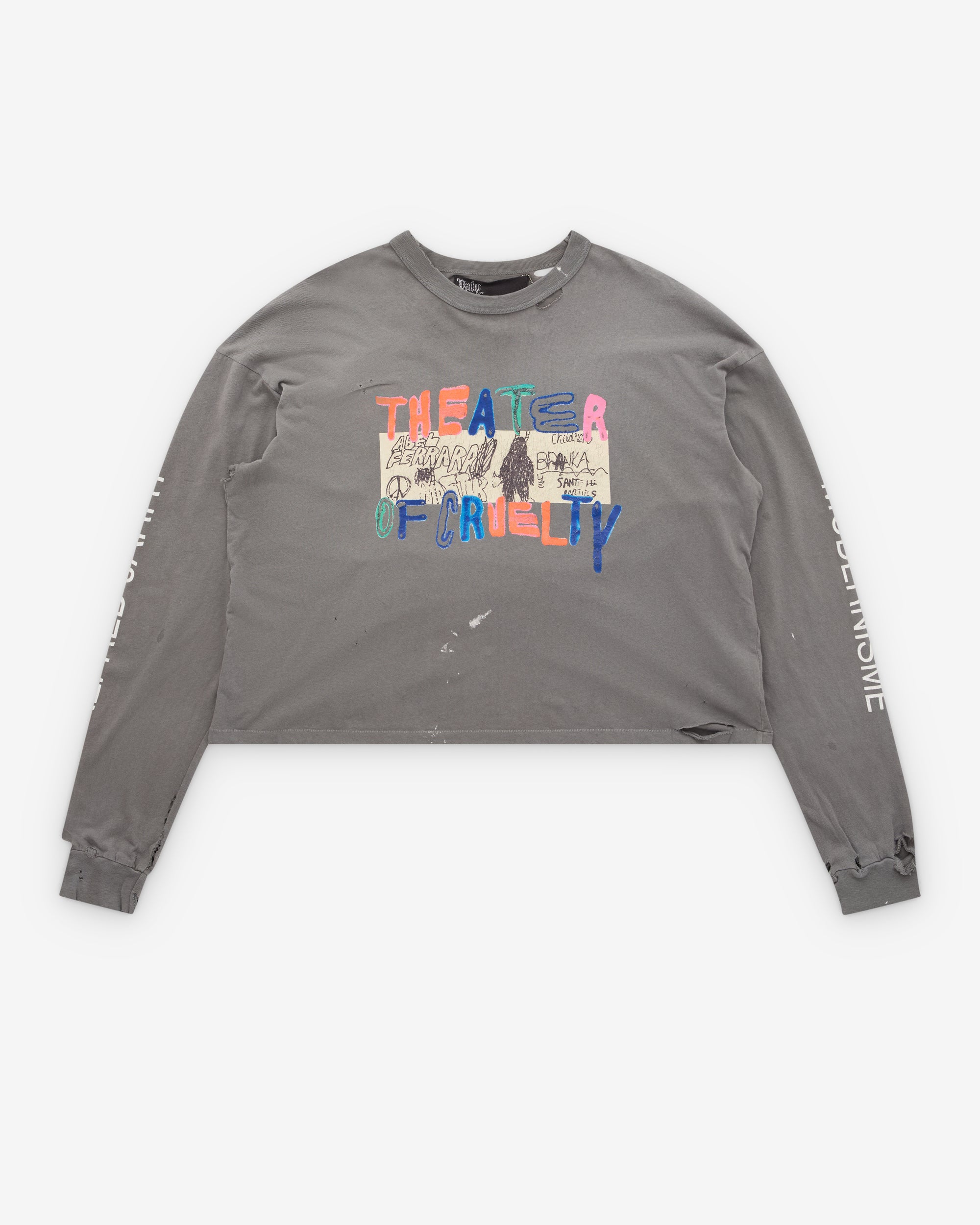 Round neckLong sleevesBoxy, relaxed fitPrinted graphicsDistressing throughout