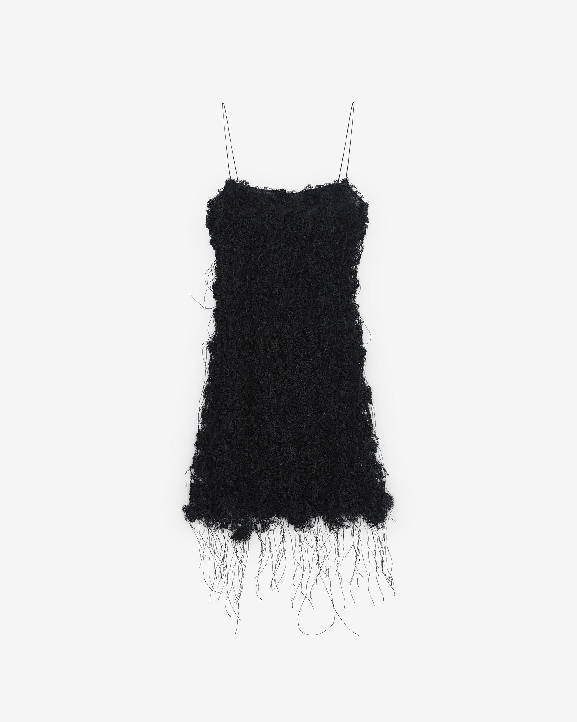 Fine strapsTextured fabricationMini lengthScoop backSlim fit