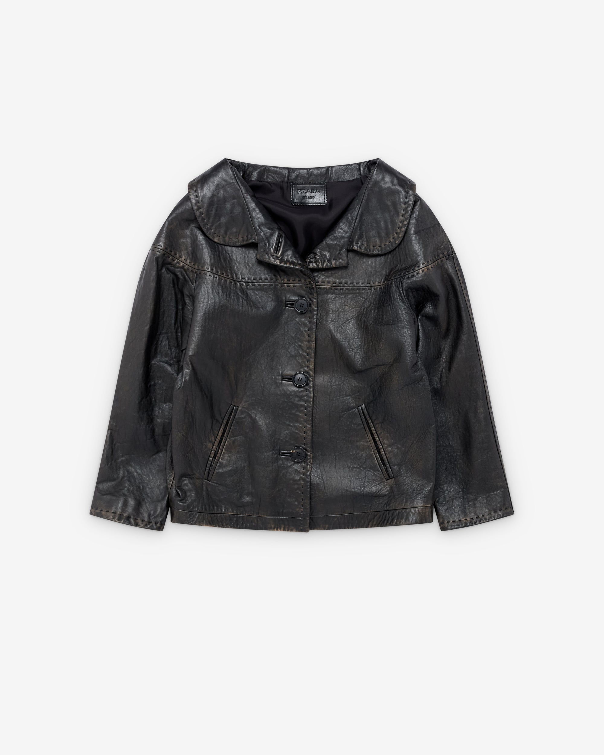 Fully linedRegular fitFront button closureWelt pockets at frontVintage treatmentTriangle logo at back