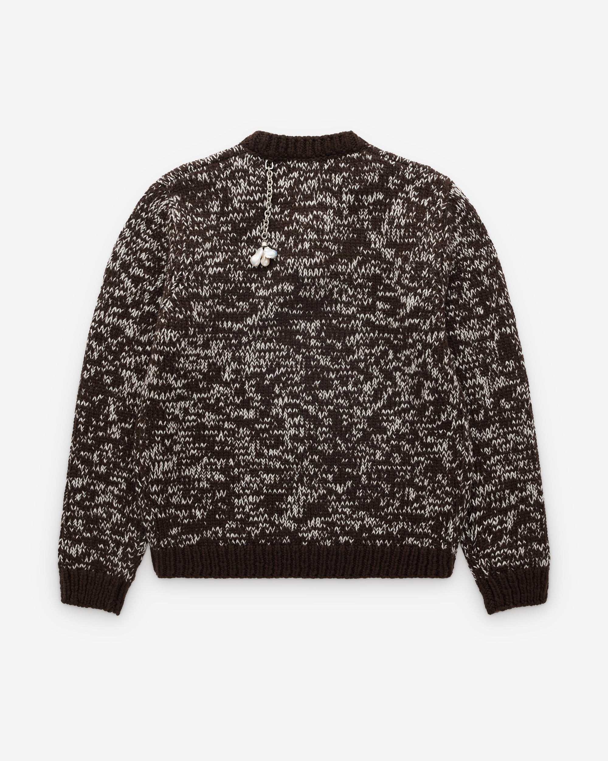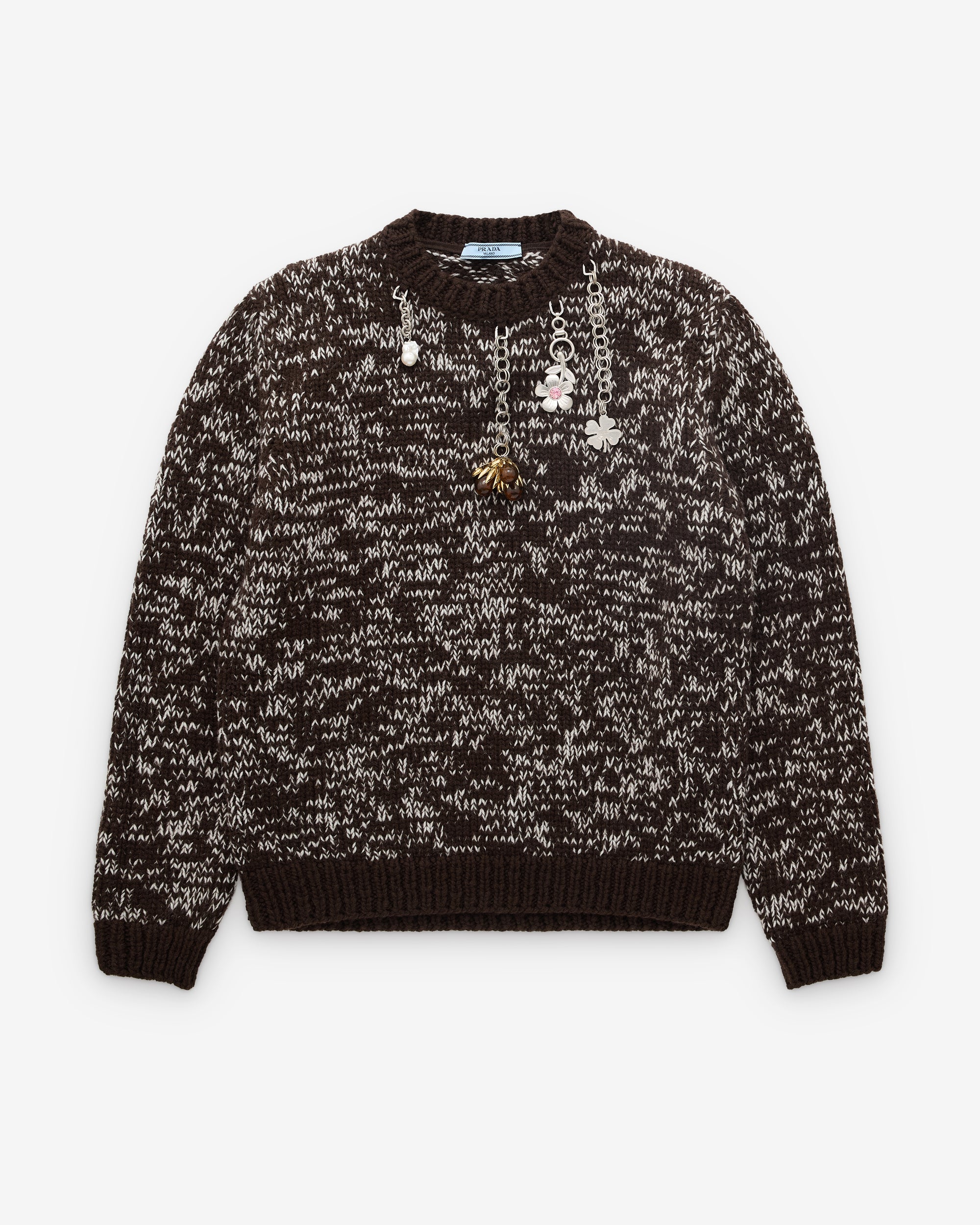 Rib knit trimsPendant detail at necklineContrast rib knit trimsMelange knitLong sleeves