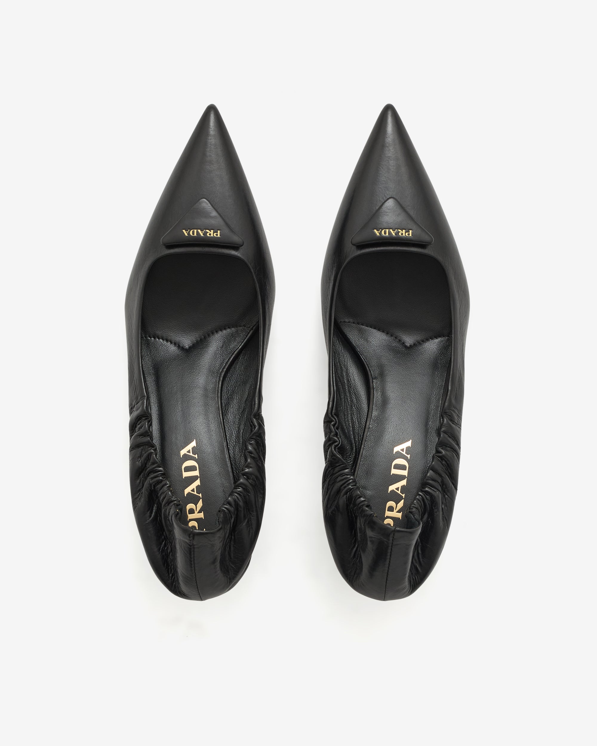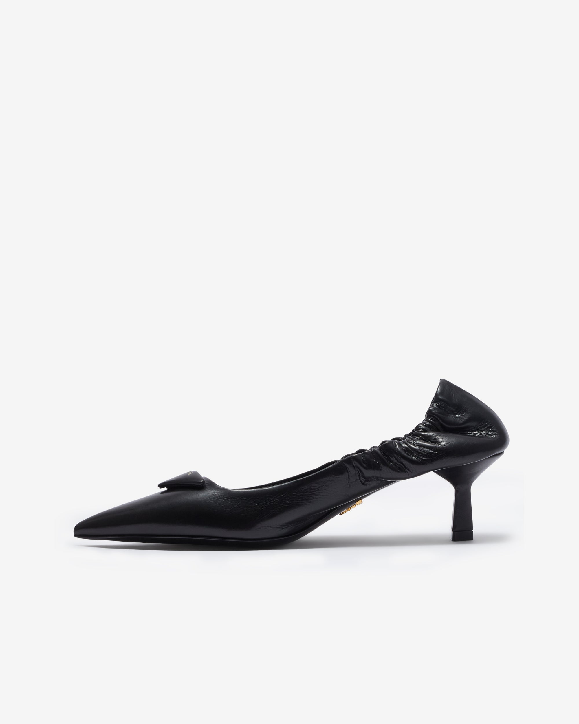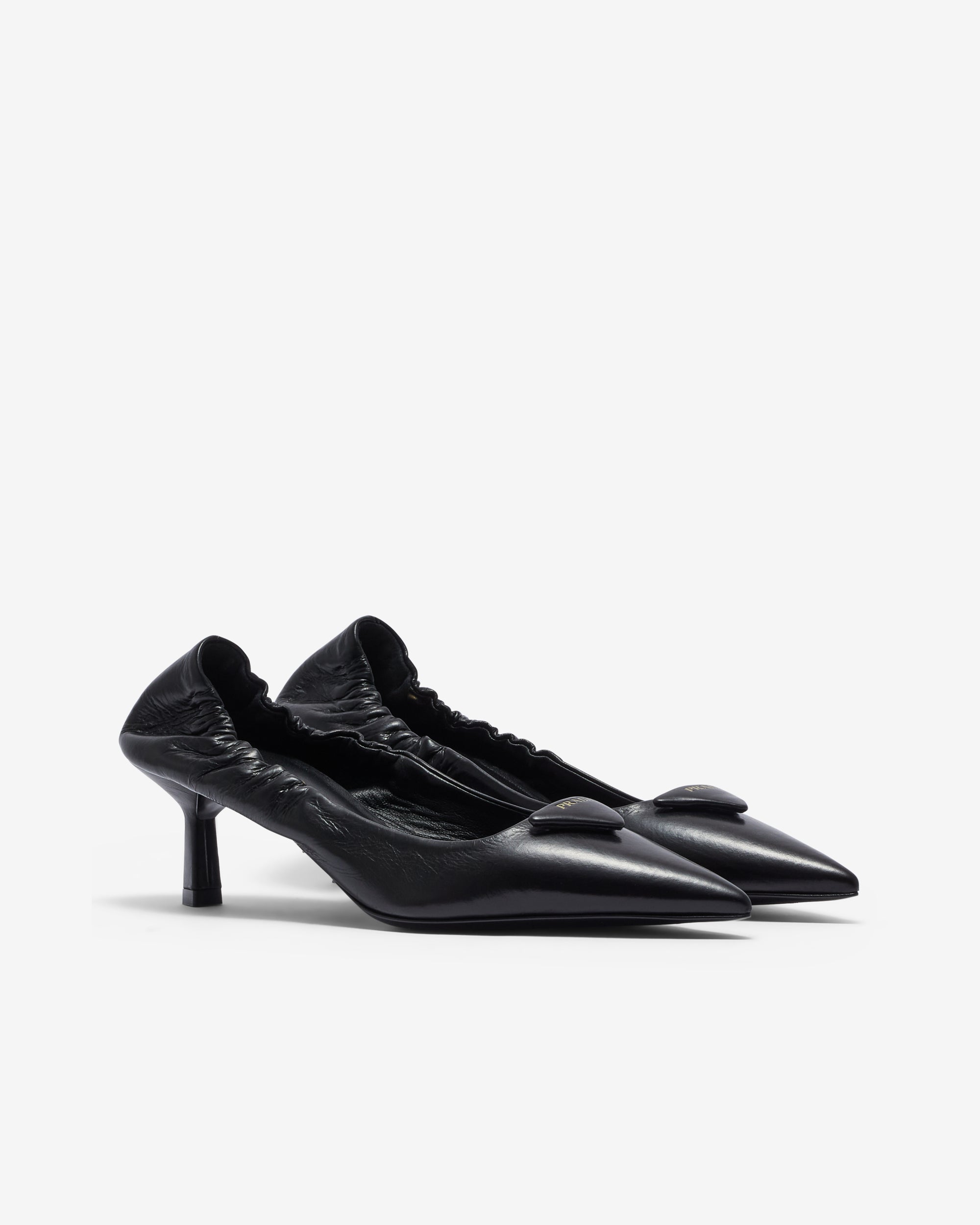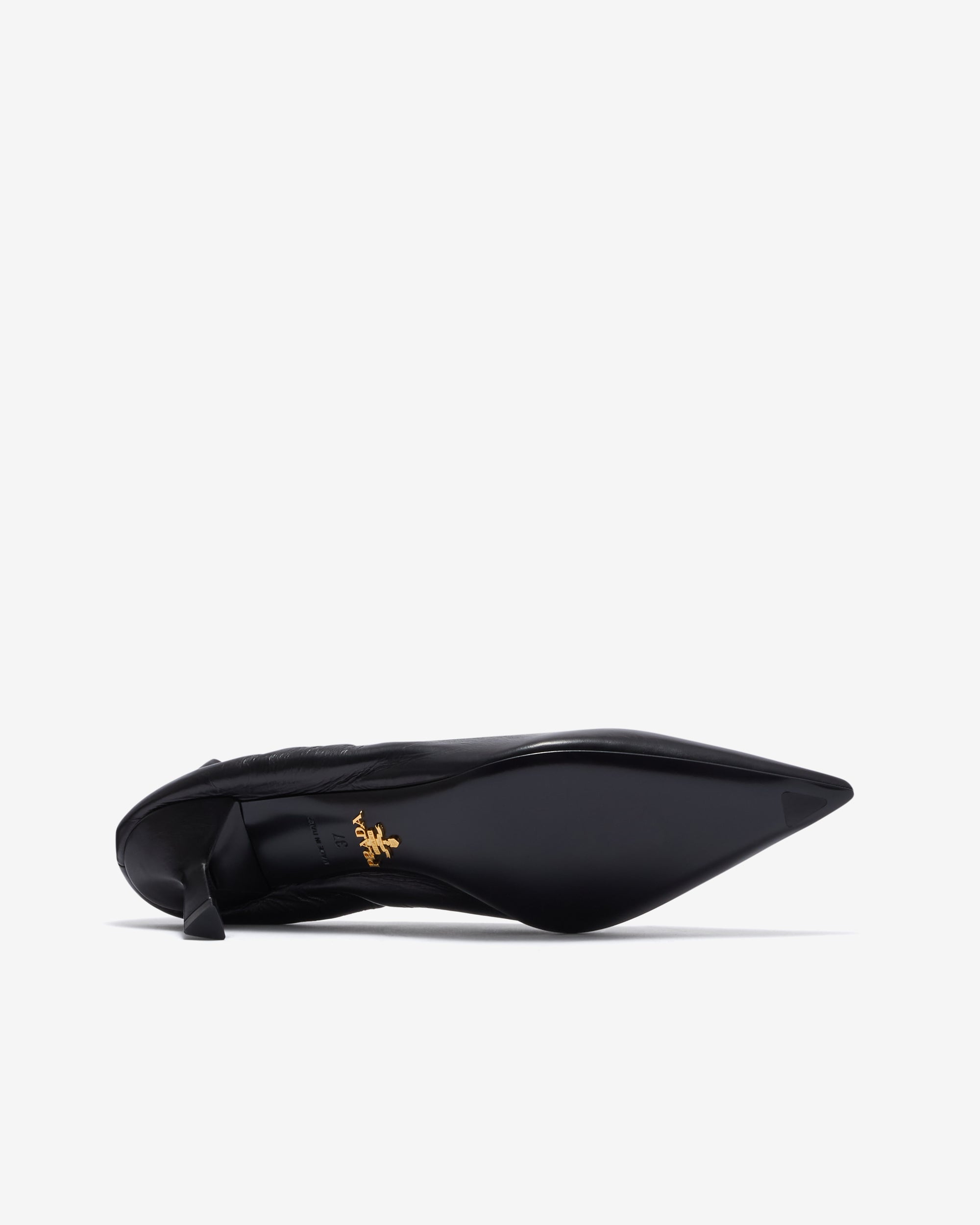 Screen-printed logoLeather sole with rubber heel layer and metal lettering logoLeather-covered heel, height 55 mmPointed toe
