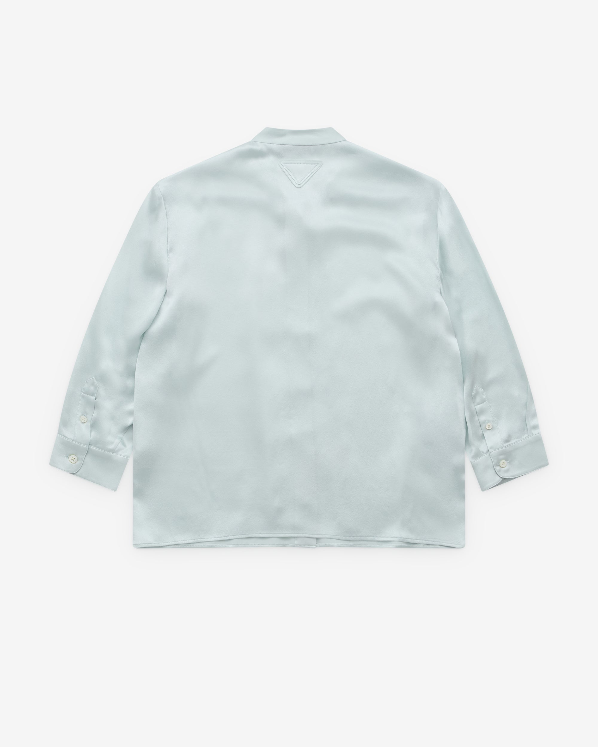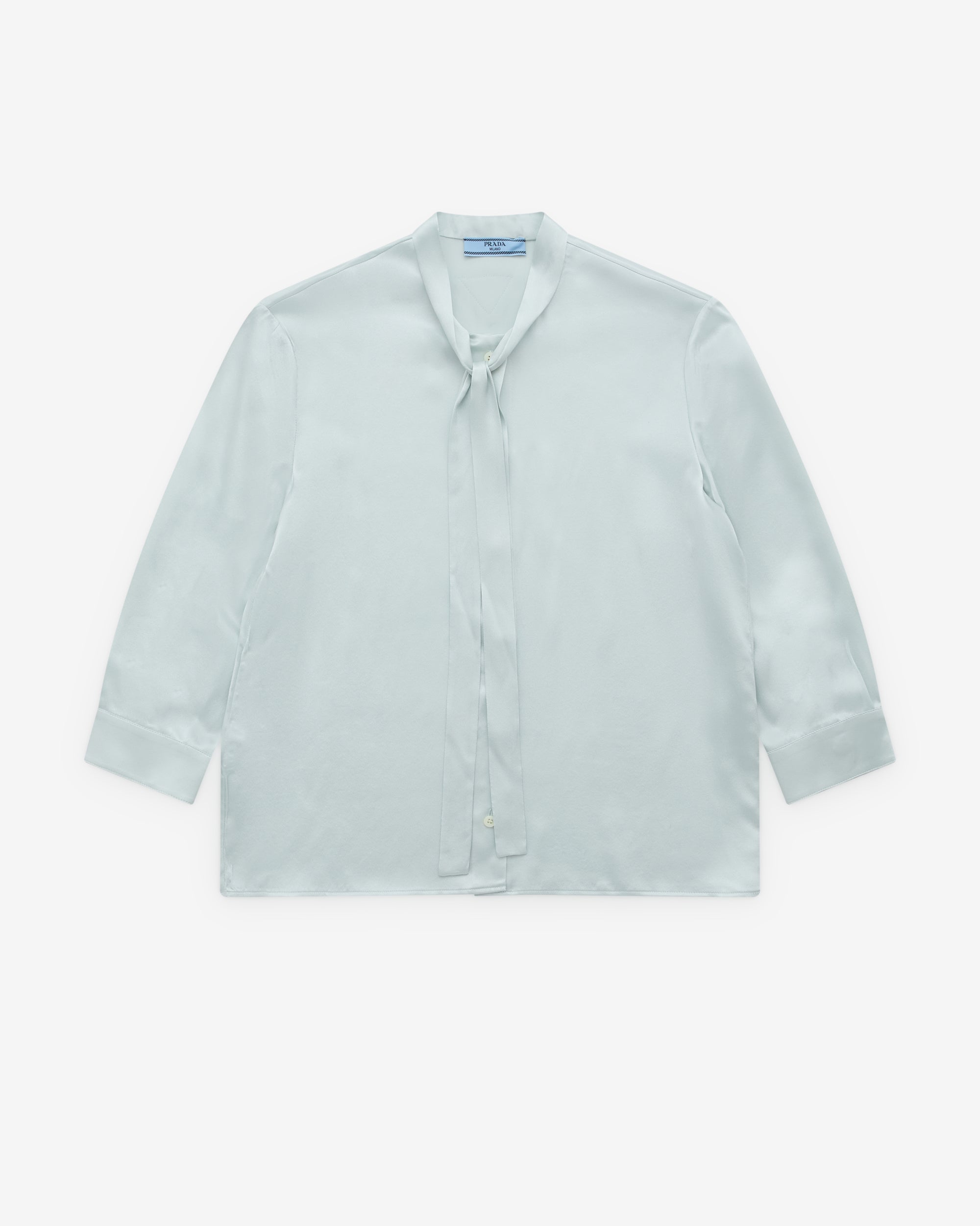 Neck tie detailsBand collarFull length button closureLong sleevesStraight hemFabric triangle logo at rear neck