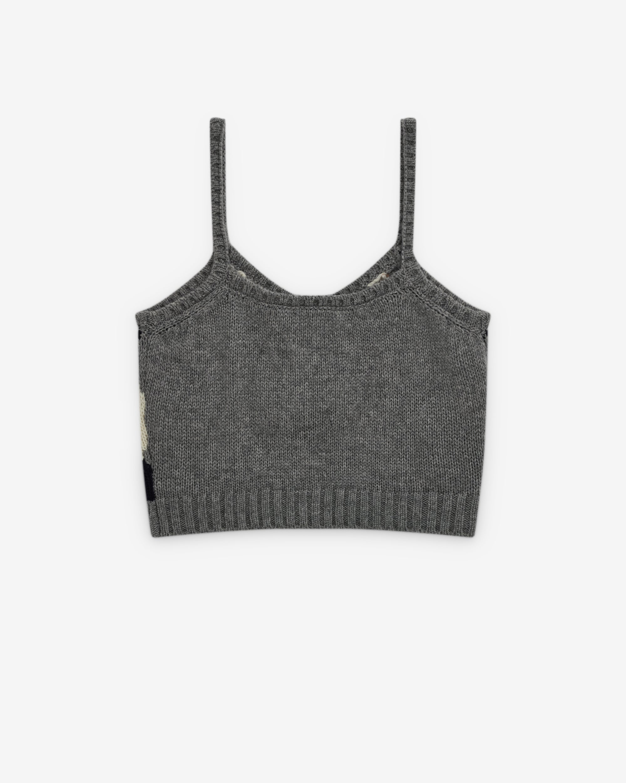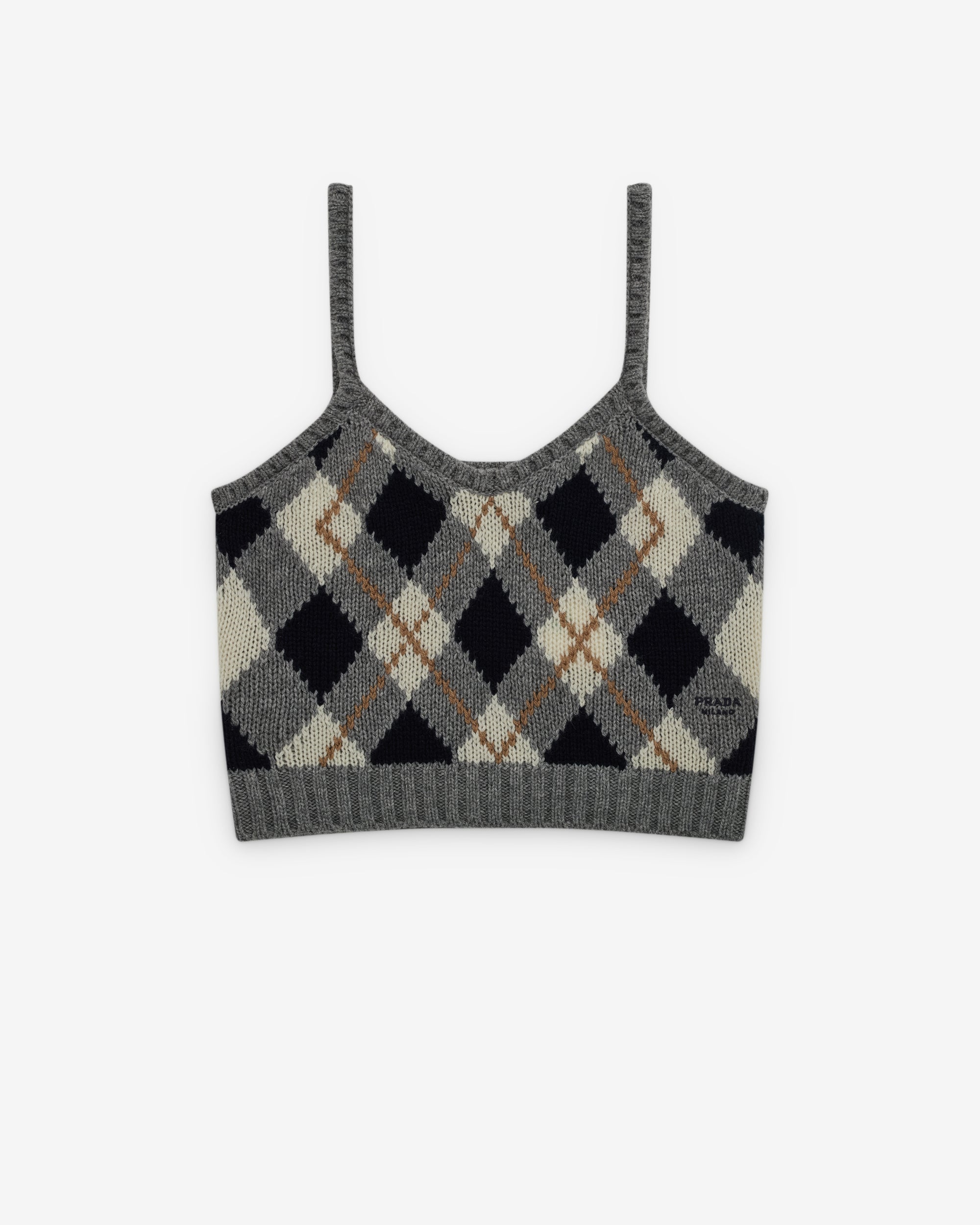 Knit argyle fabricShoulder strapsEmbroidered logoRibbed hem