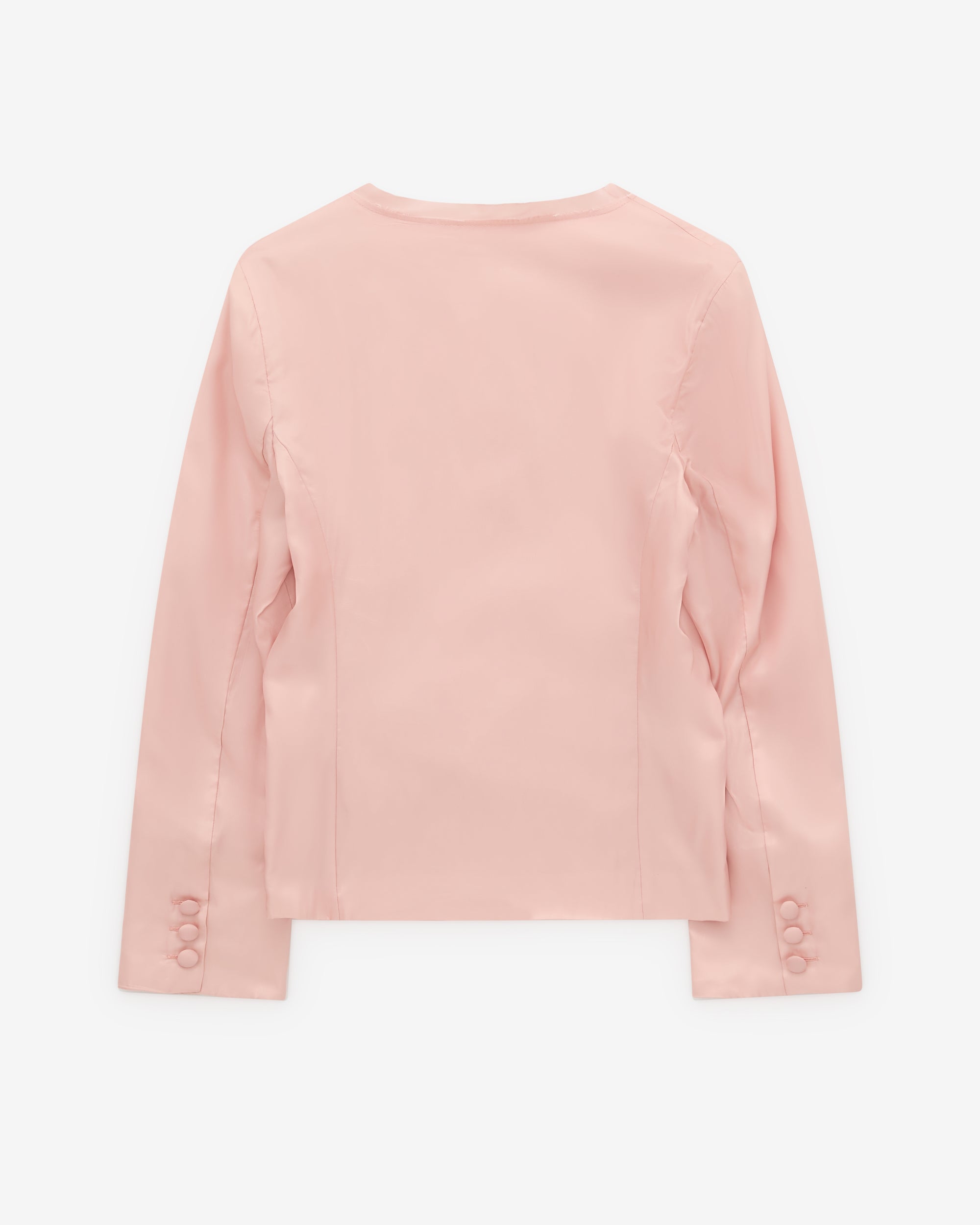 Round neckButton placket and cuffsFront flap pocketsBoxy fitLined