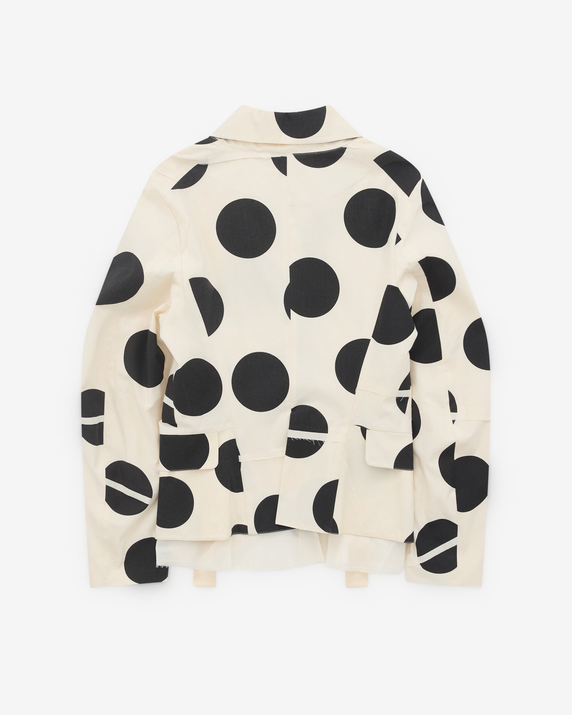 Notched lapelsPintucked, asymmetric constructionLong sleeves Exposed, raw hemi liningCinched waistFront flap pockets
