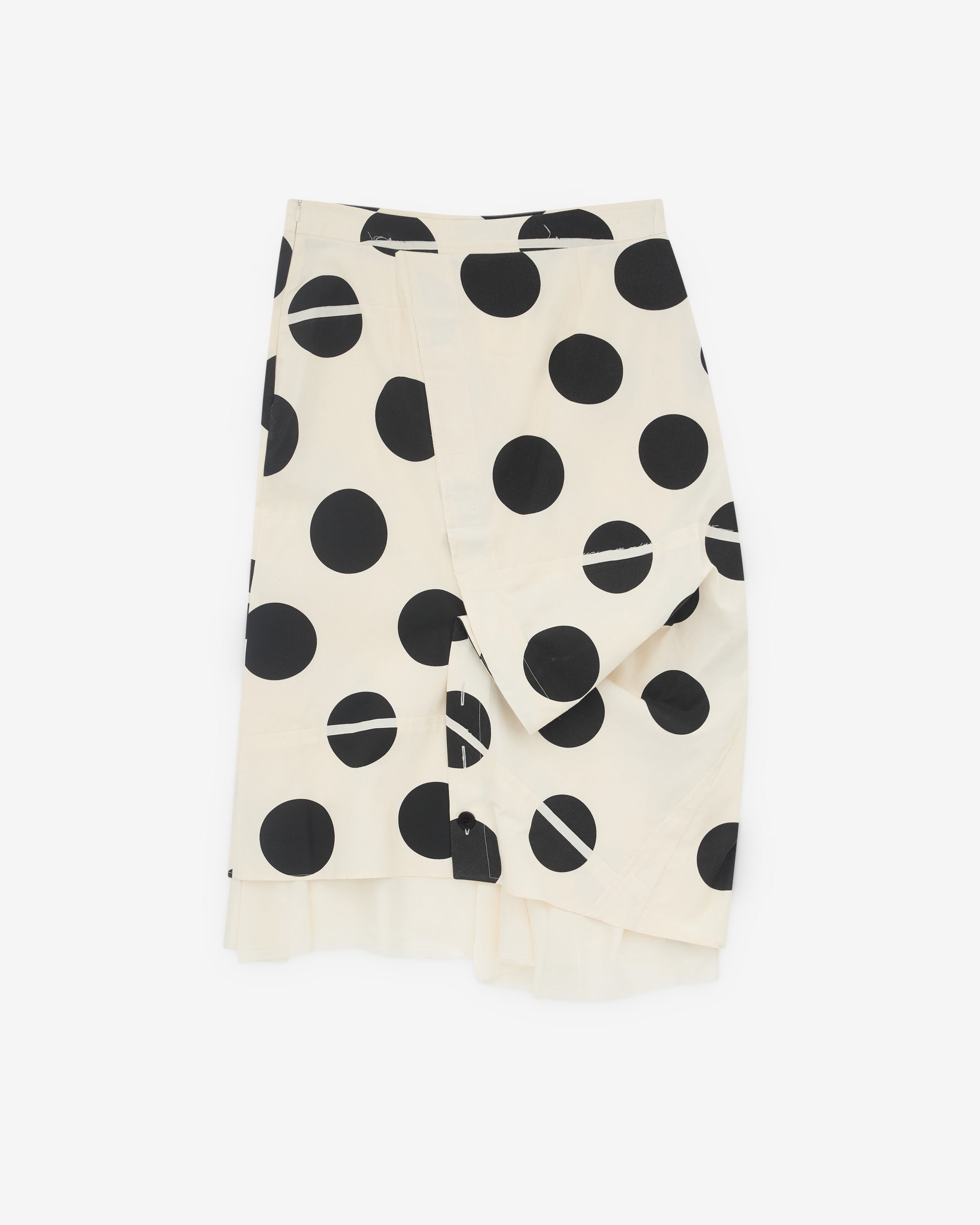 Asymmetric cut fabricAdjustable button and bottom hemSide zip closureMidi skirt skirt lengthPencil skirt cut