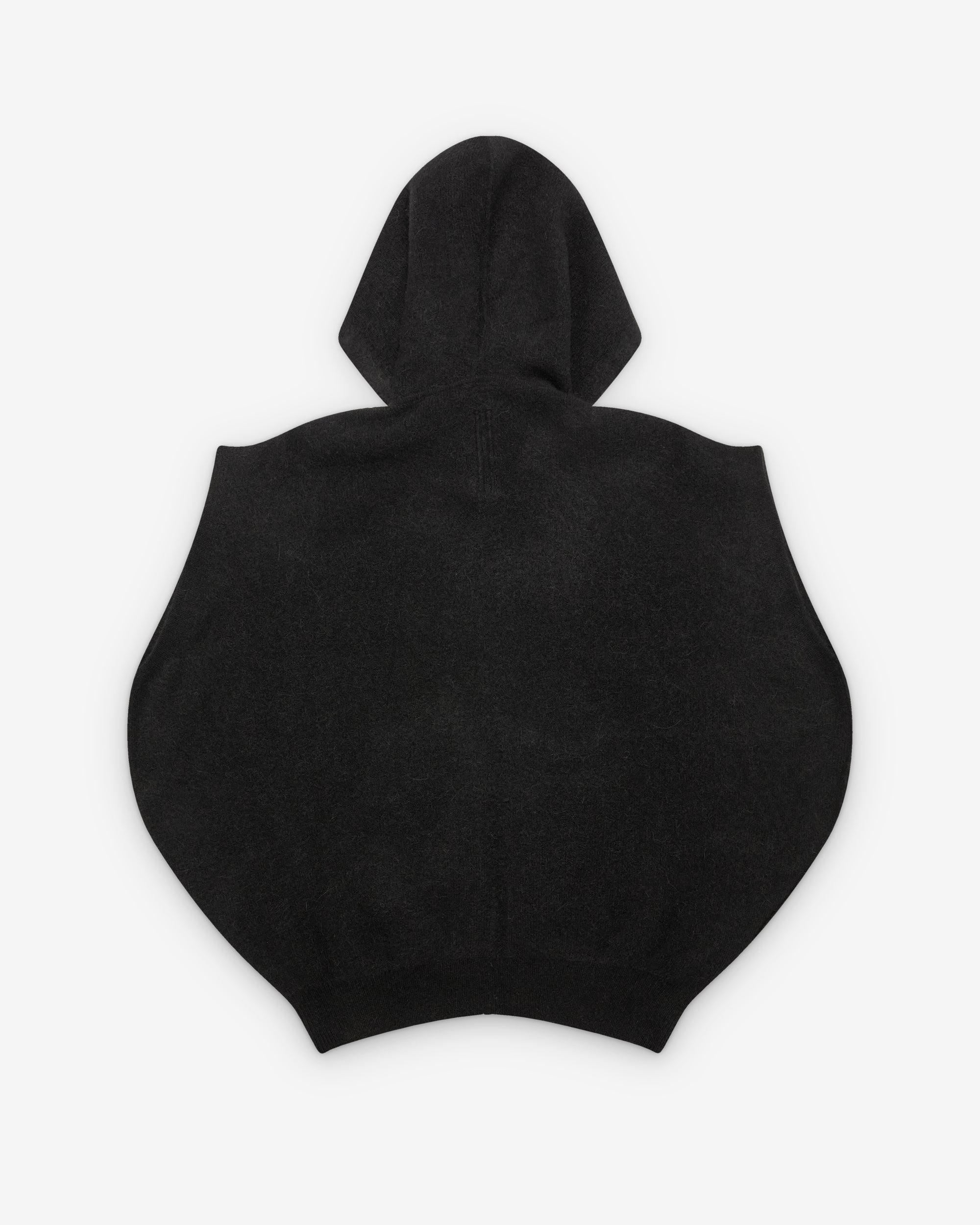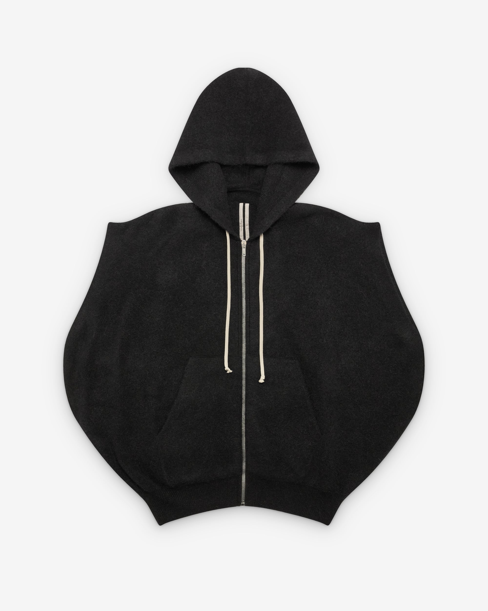 Hooded styleSleevelessExposed stitch line at backAdjustable drawstring hoodRibbed waist