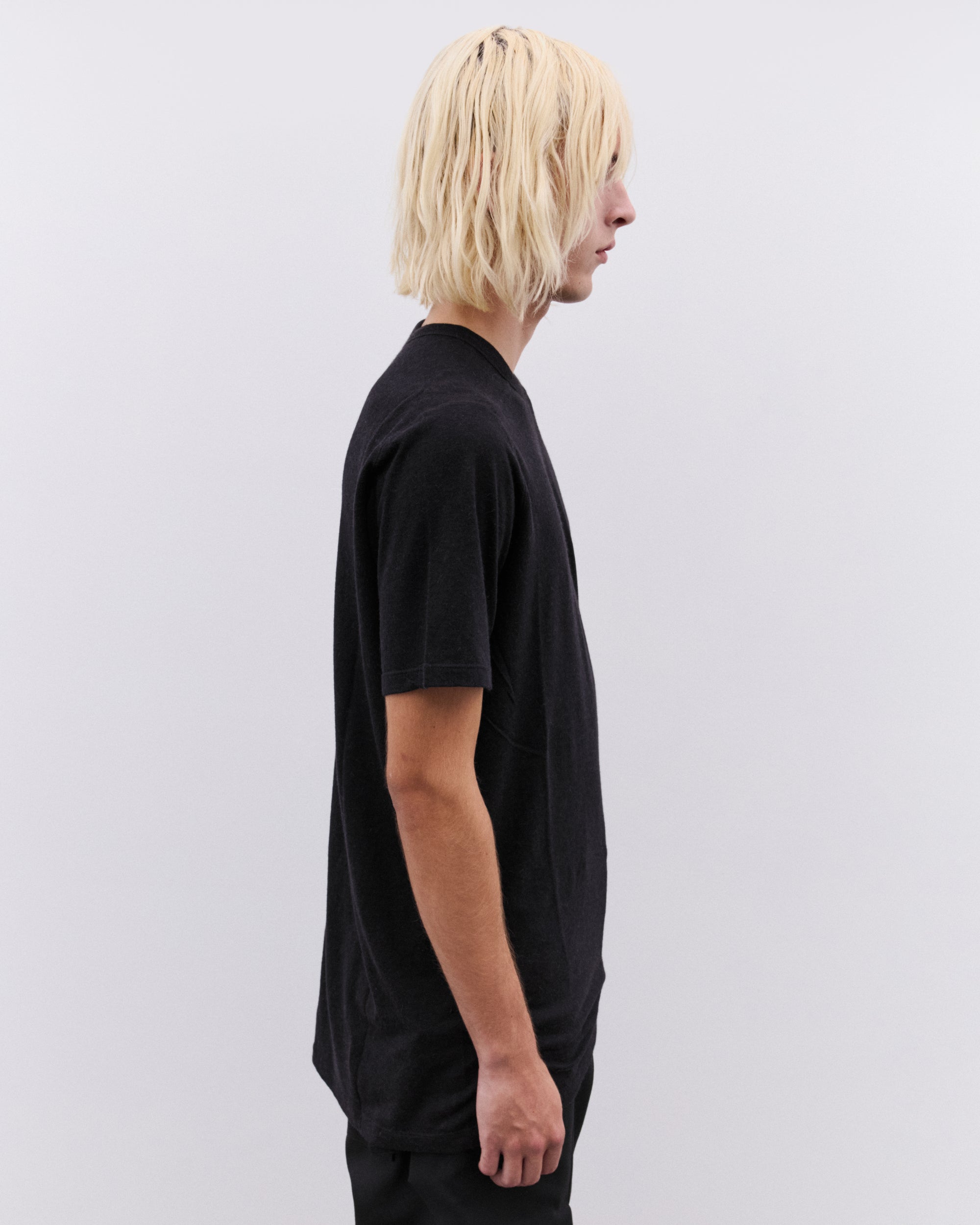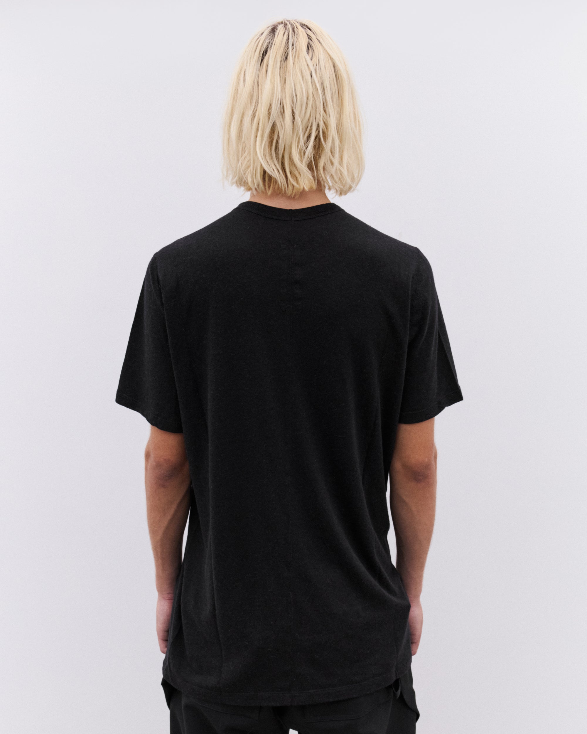 Short sleevesRib knit crew neckRear central single seamMedium weight fabrication with soft handfeel