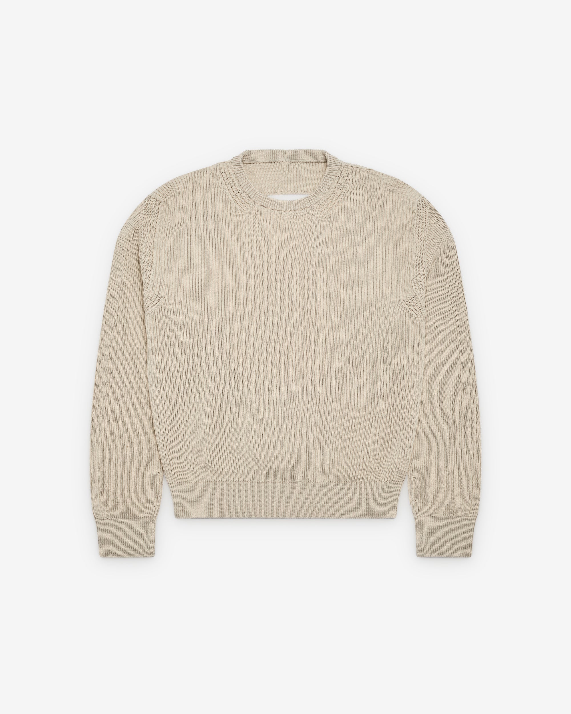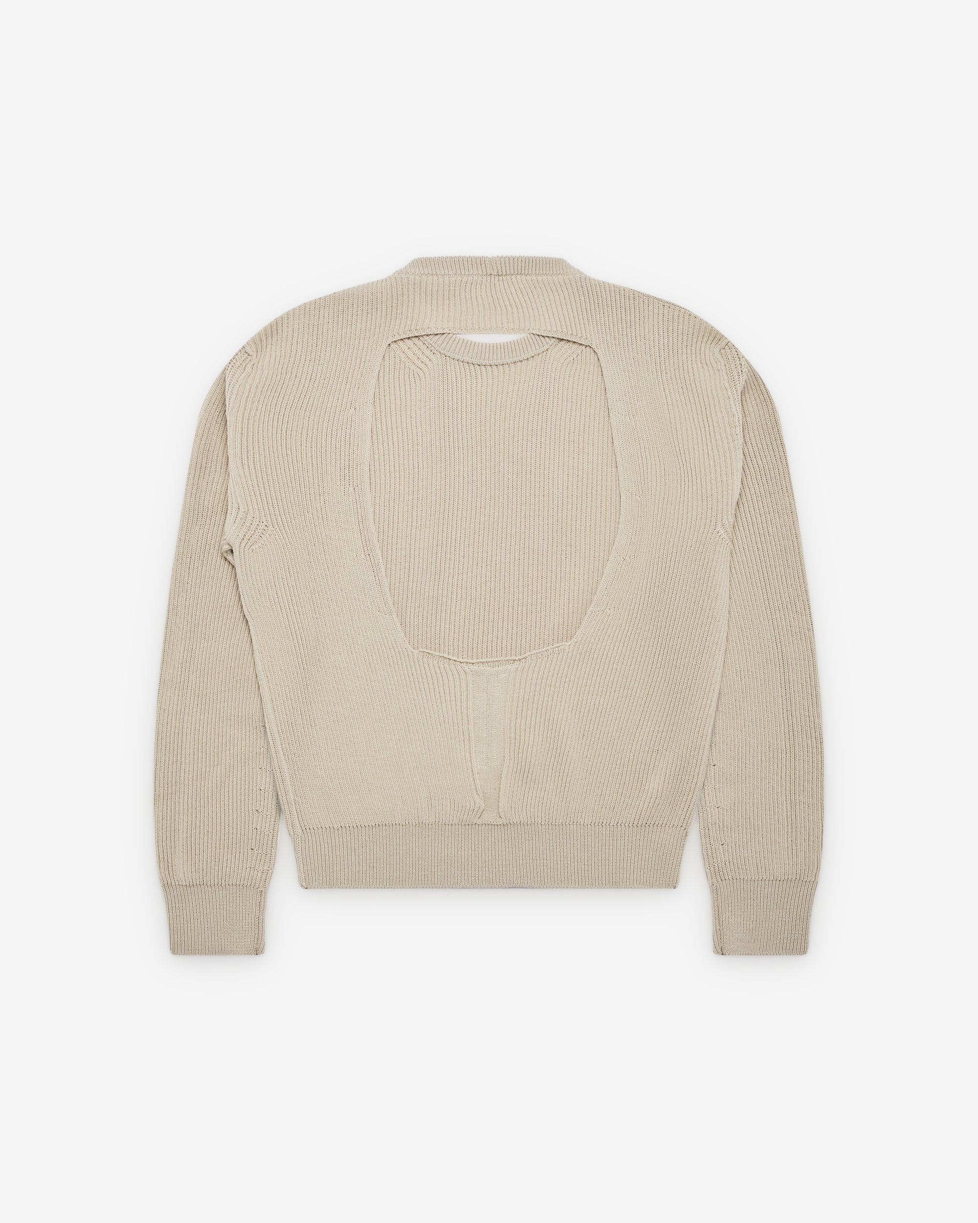 Ribbed knit fabricRounded necklineRibbed knit cuffs and hemBoxy fitCut out at back