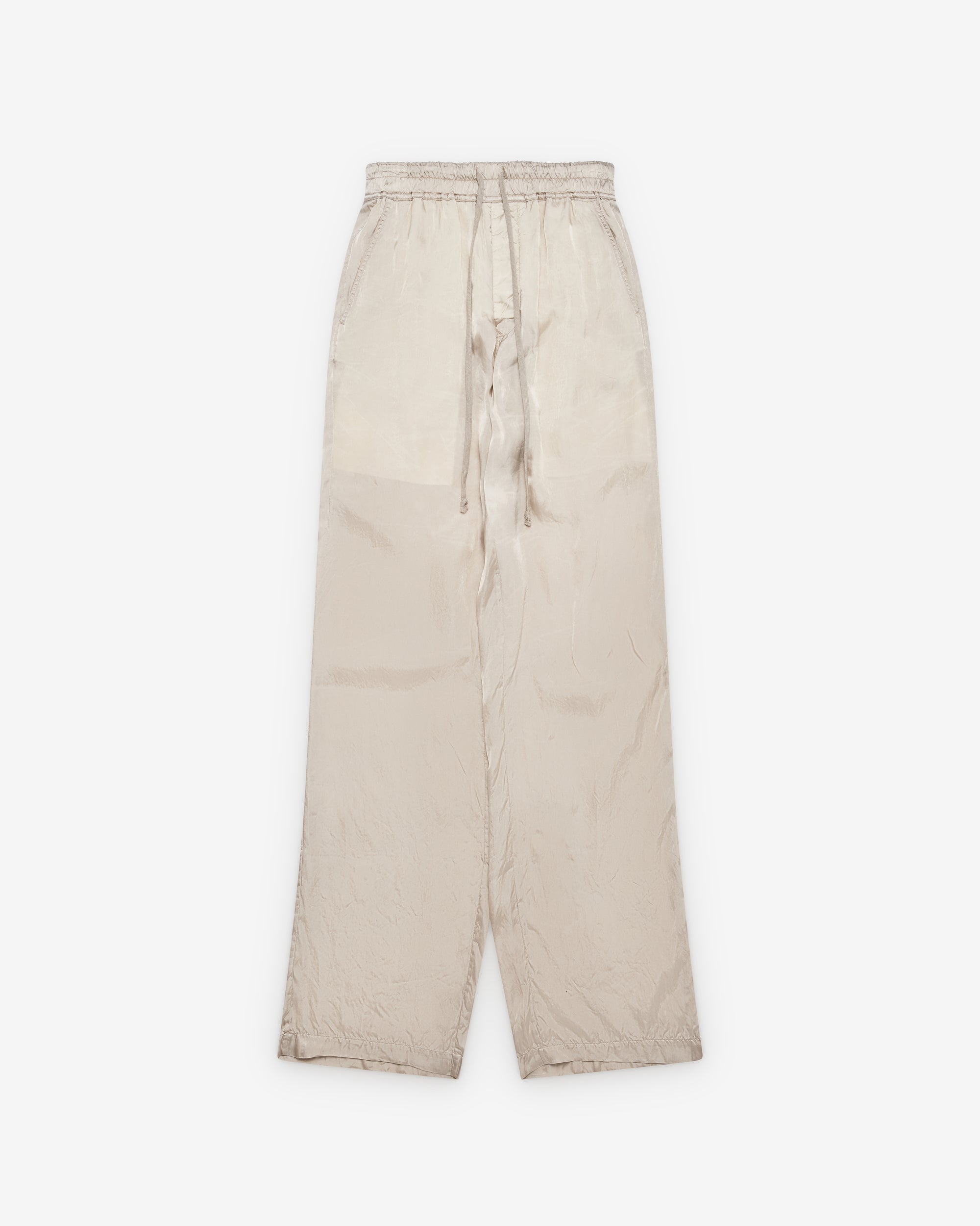 Elasticated drawstring waistSide seam pocketsPleated front Loose fitWide legTwo rear flap close pockets
