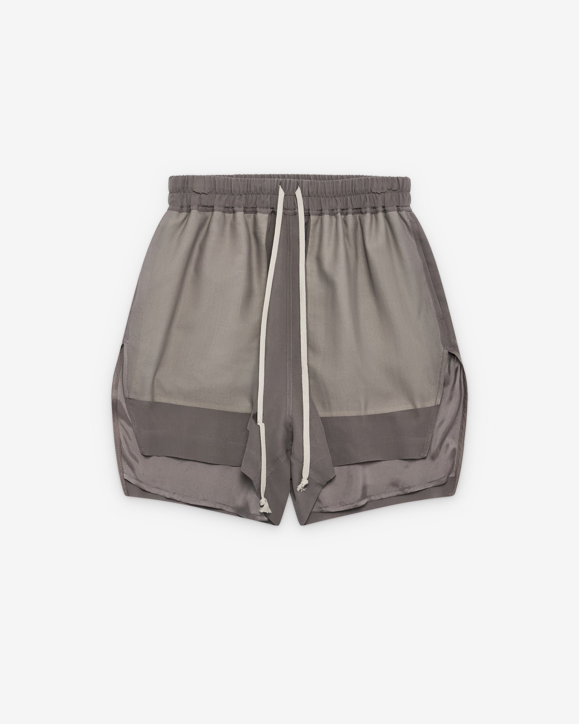 Knee length shortDrawstring elasticated waist bandSide welt pocketsCut-out side seams